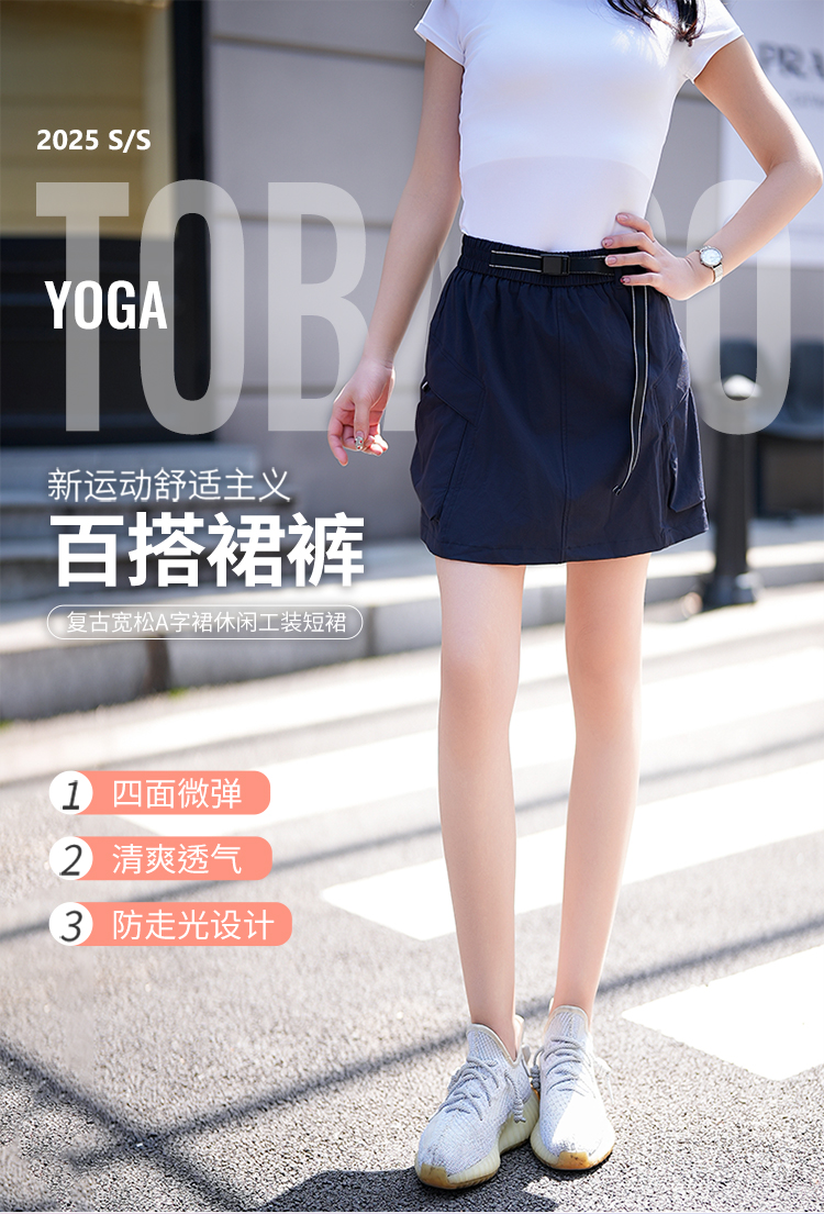 一恋•普拉提 2025春夏新款复古宽松A字裙休闲工装短裙EML7180