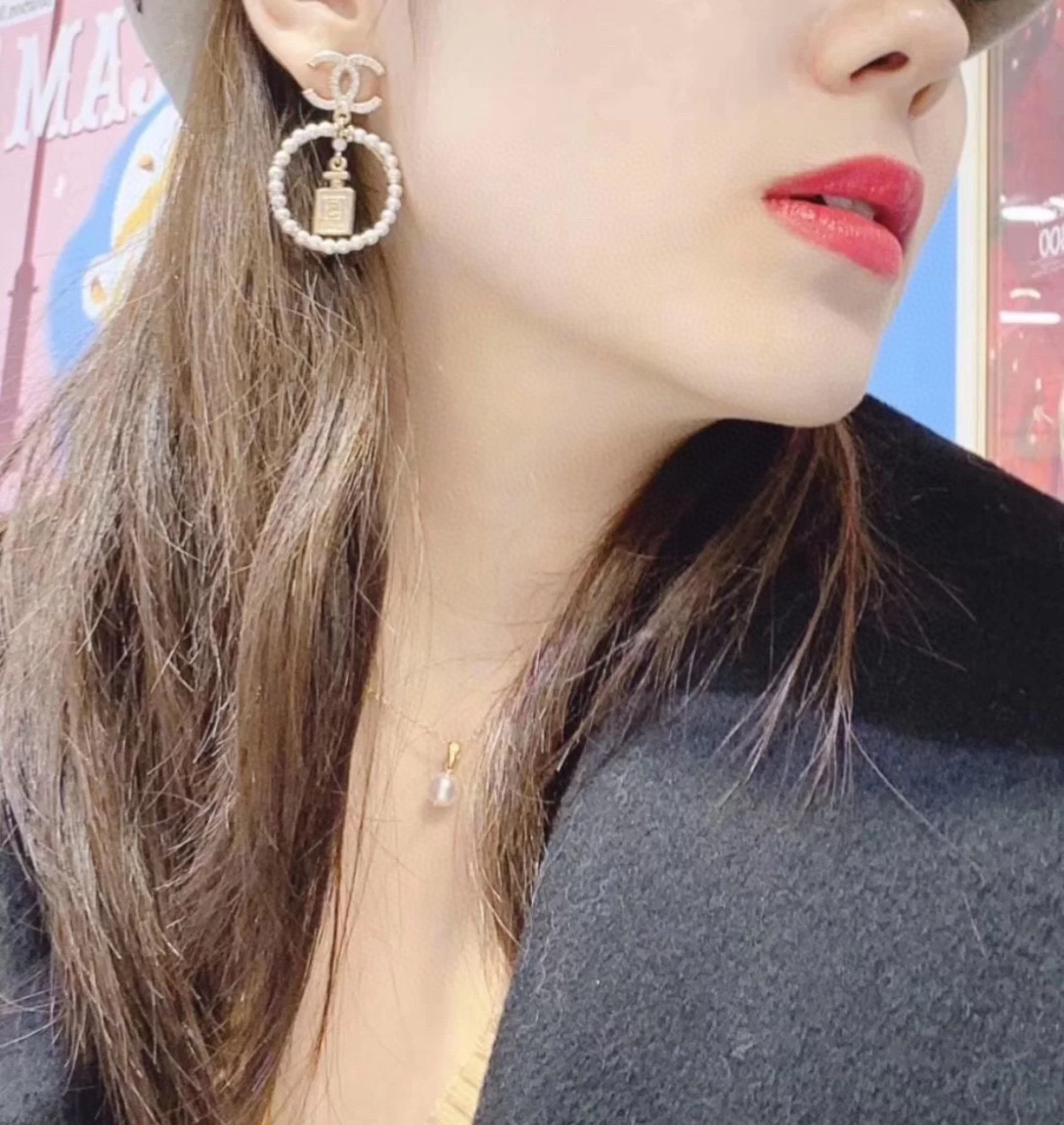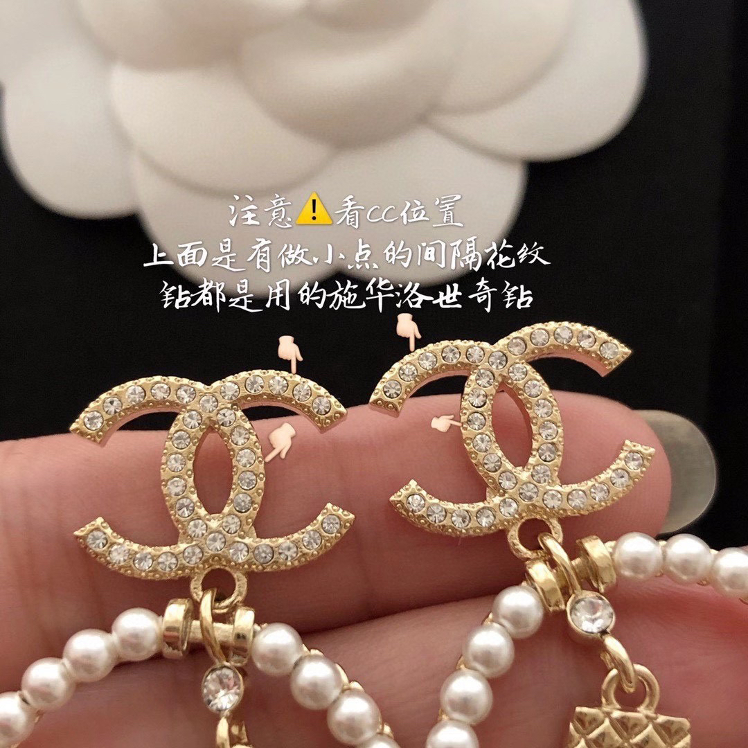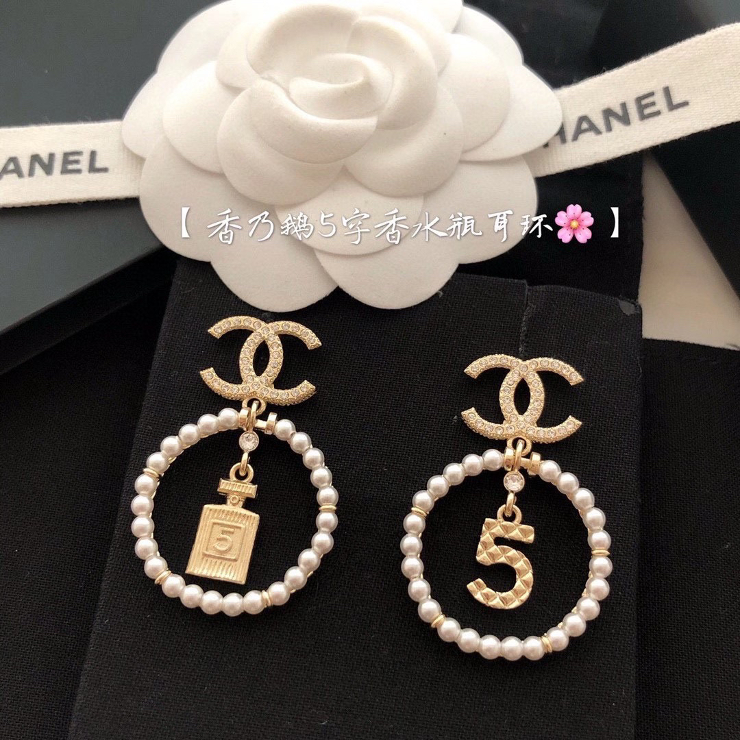 ☀CHANEL香奈儿金色圆形双c珍珠 5号香水瓶 耳钉耳环