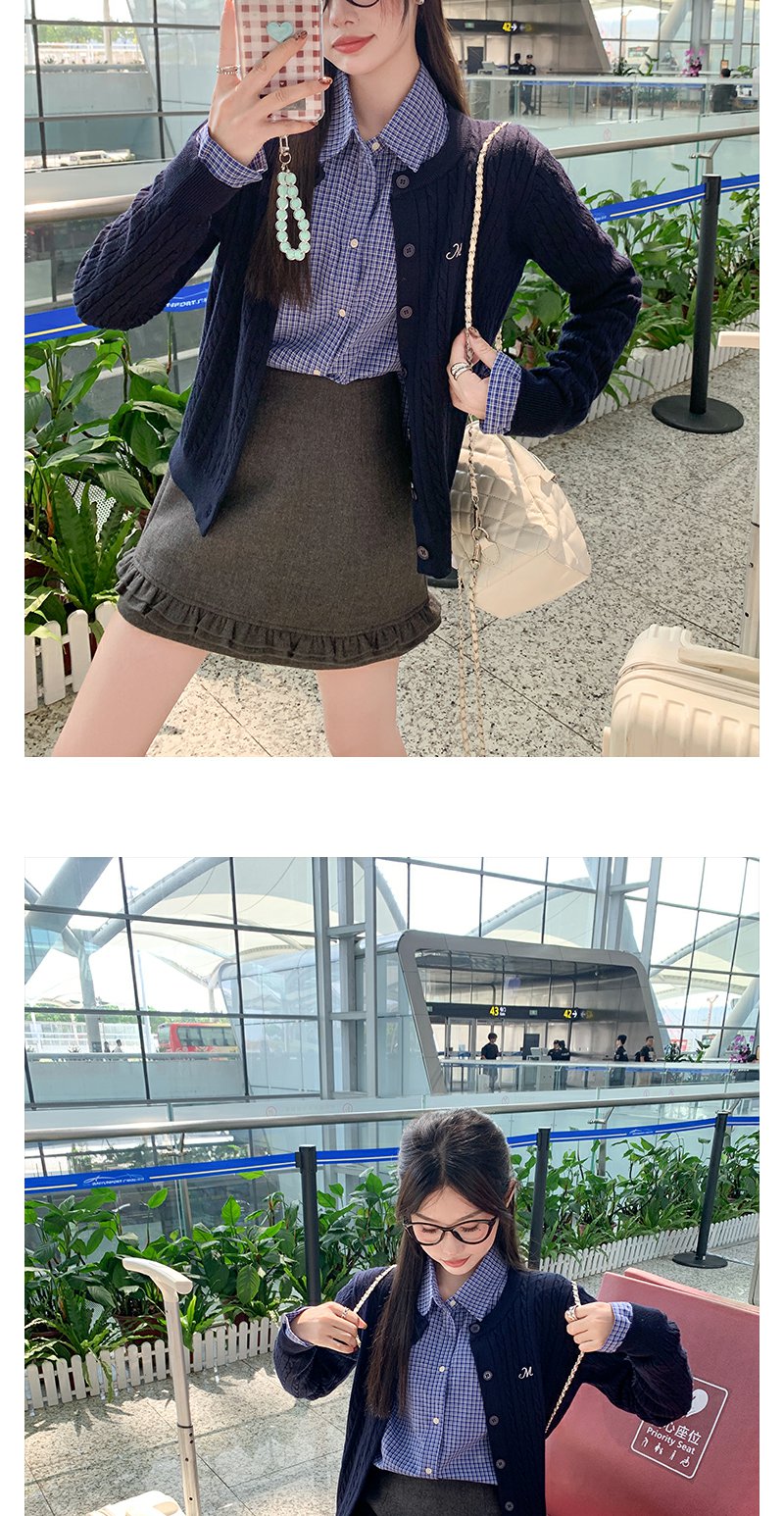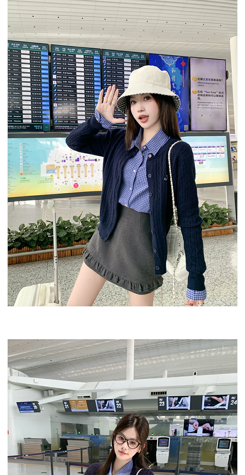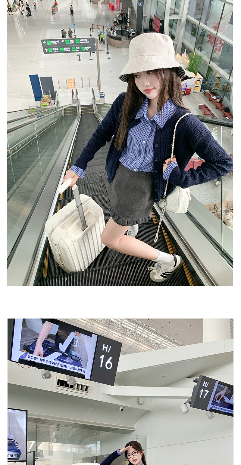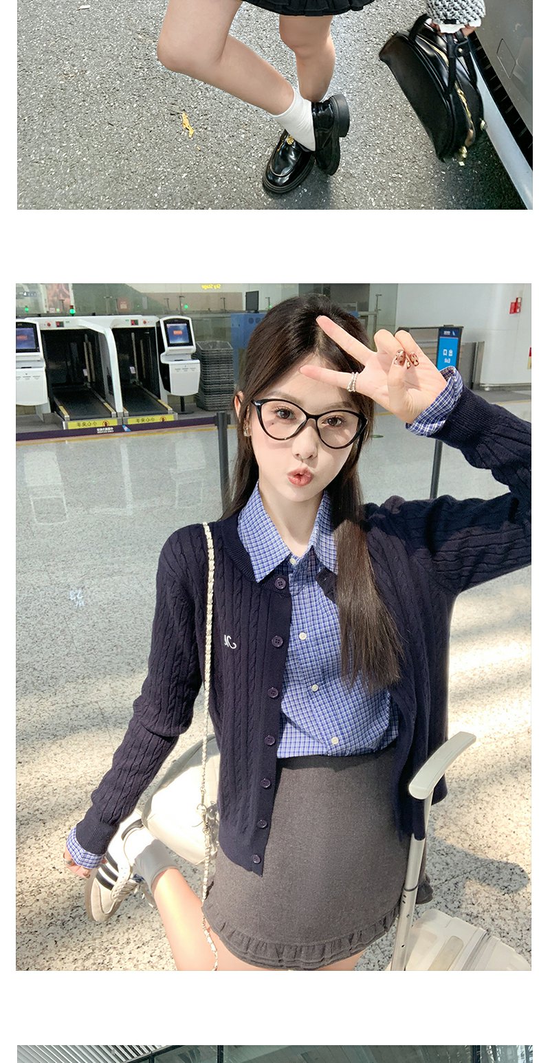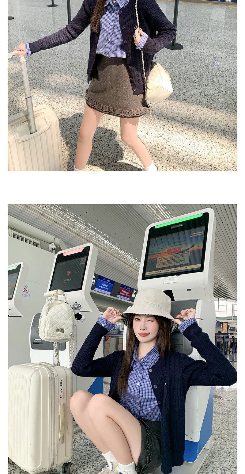 藏青色针织衫