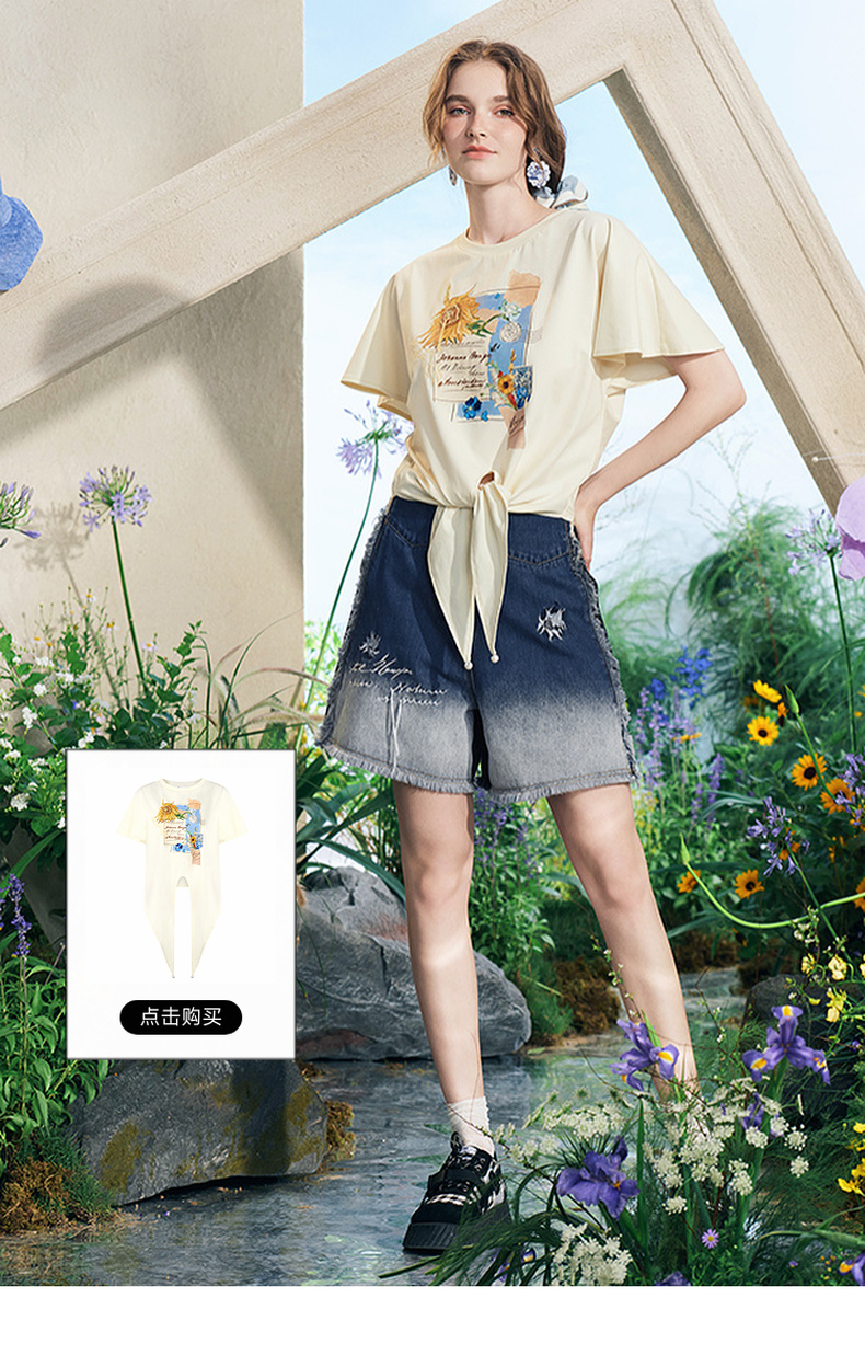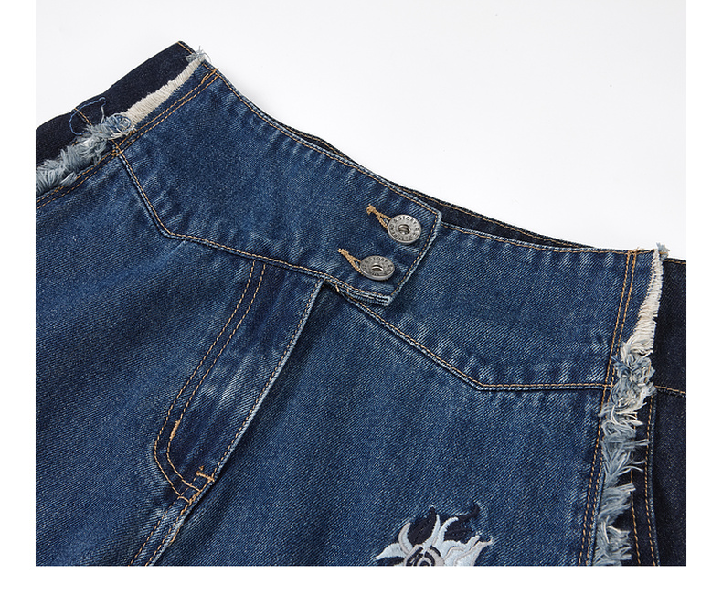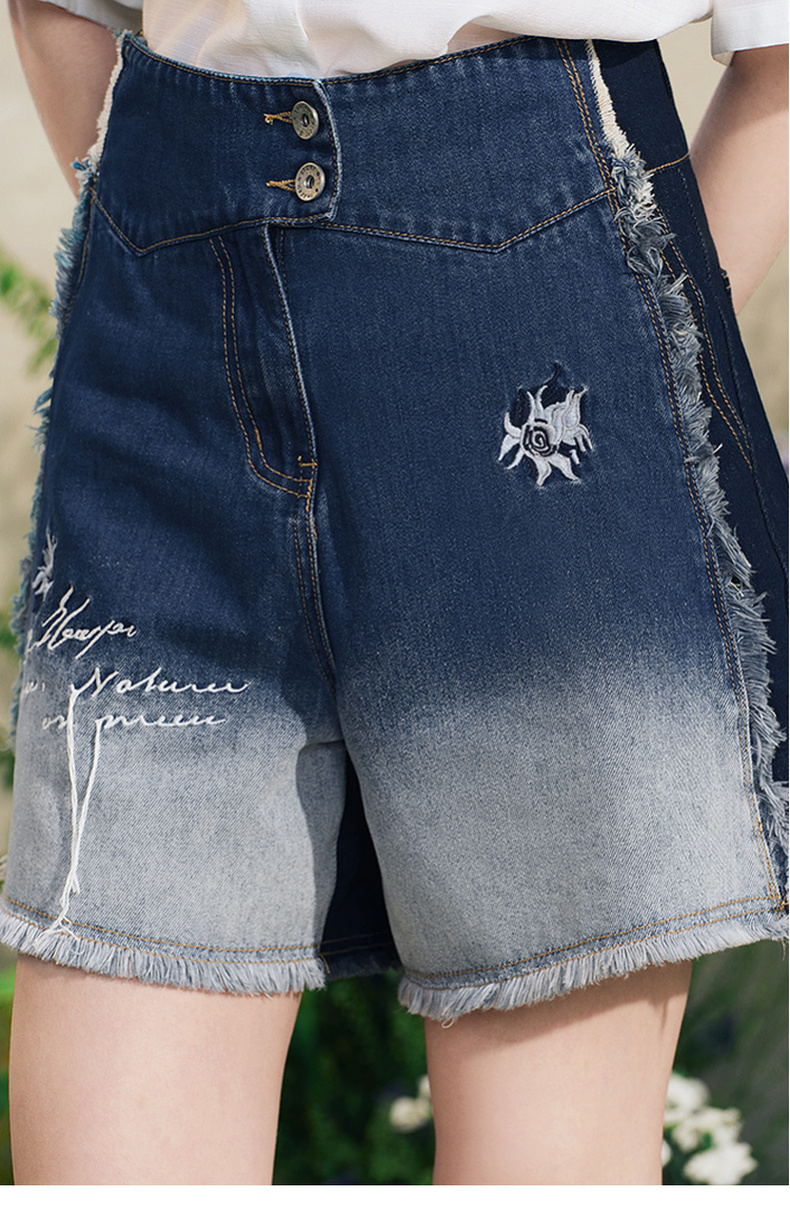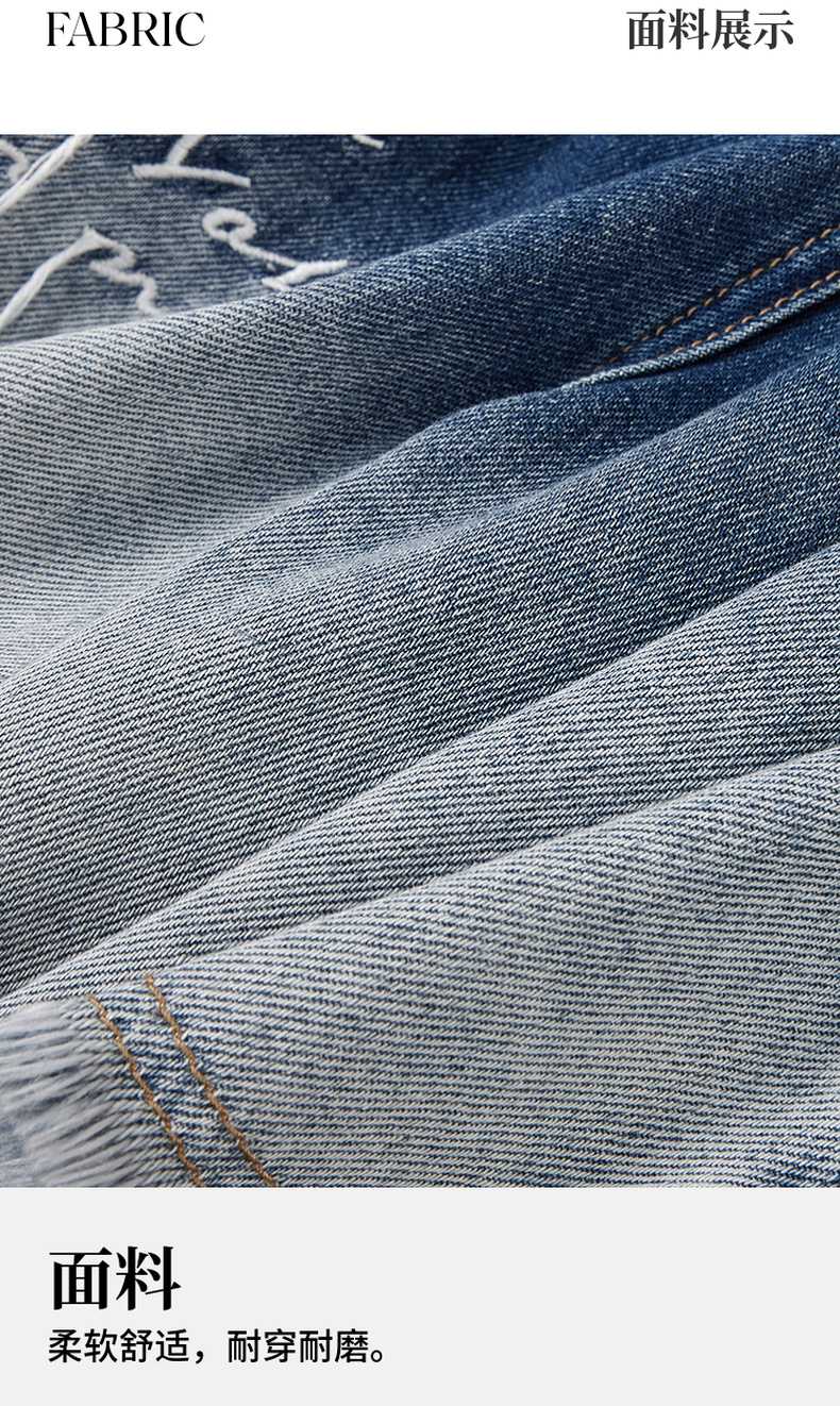两三事梵高文艺星辰密语2025夏新款毛边裤脚口渐变刺绣牛仔裤女