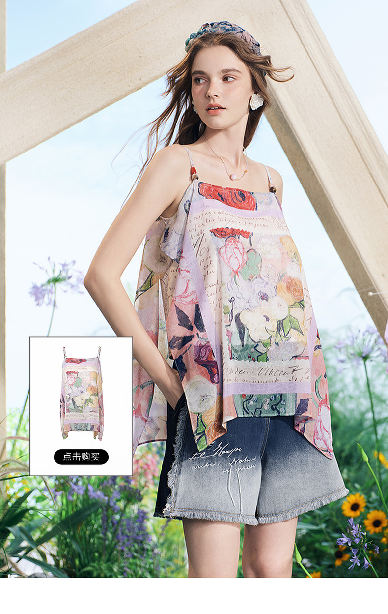 两三事行云如水国潮系列春季设计感小众气质衬衫复古印花宽松衬衣