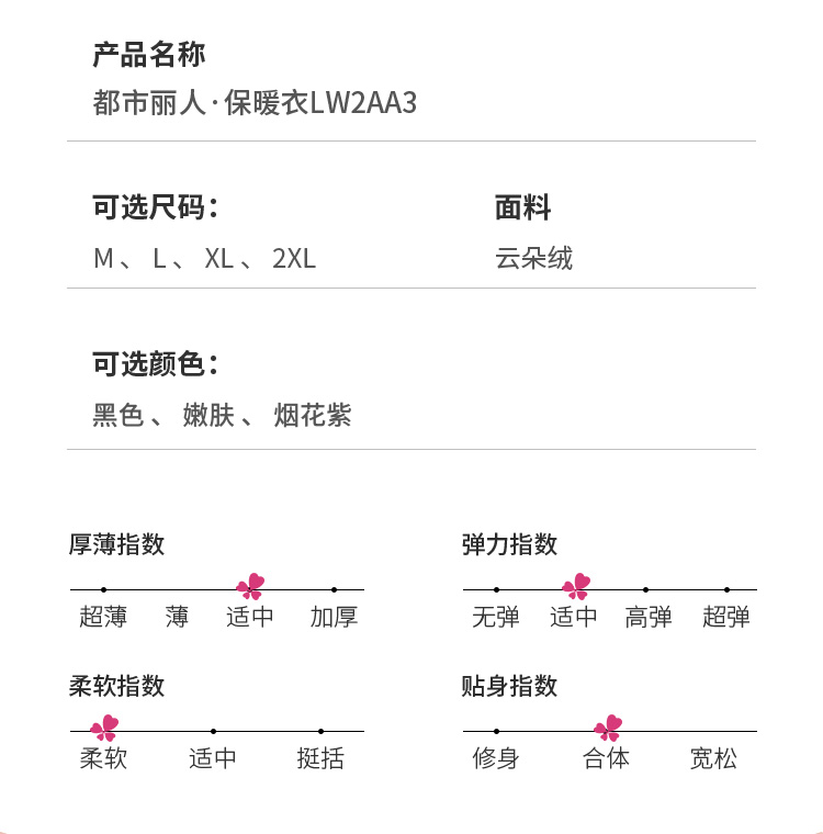 都市丽人舒暖负5度至5度女士特价套装云朵绒中套装保暖衣LW2AA3