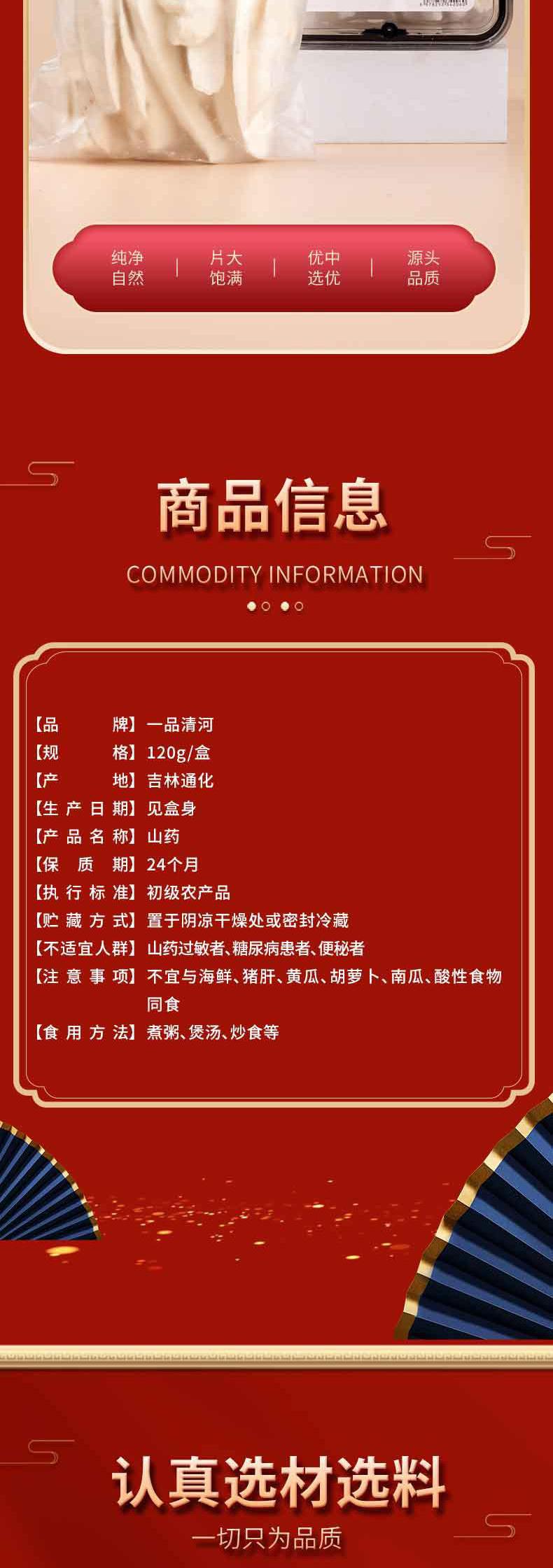【自营】一品清河 山药120g淮山药怀山药铁棍山药 YPQHSY120G