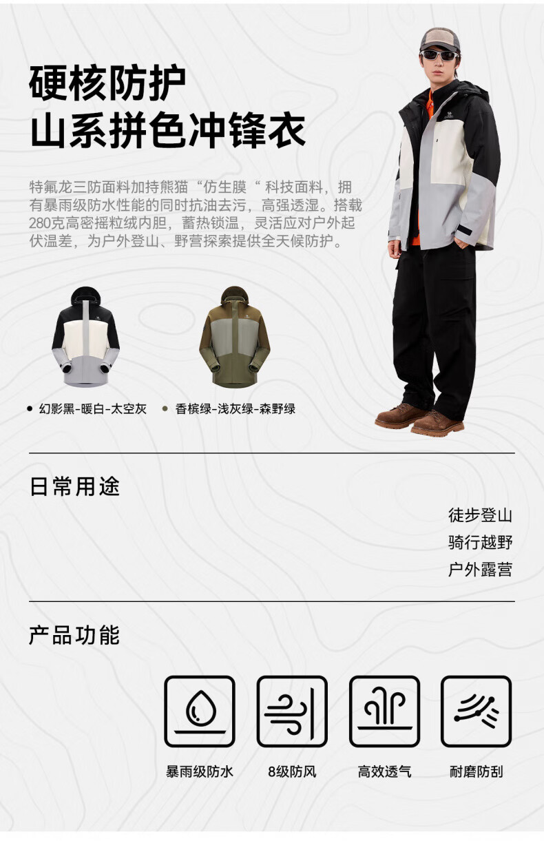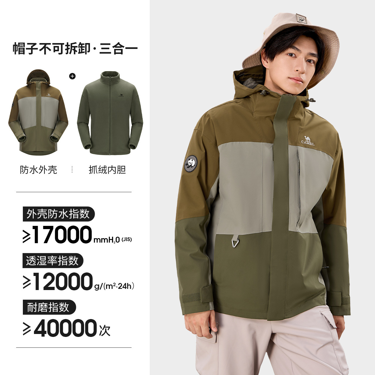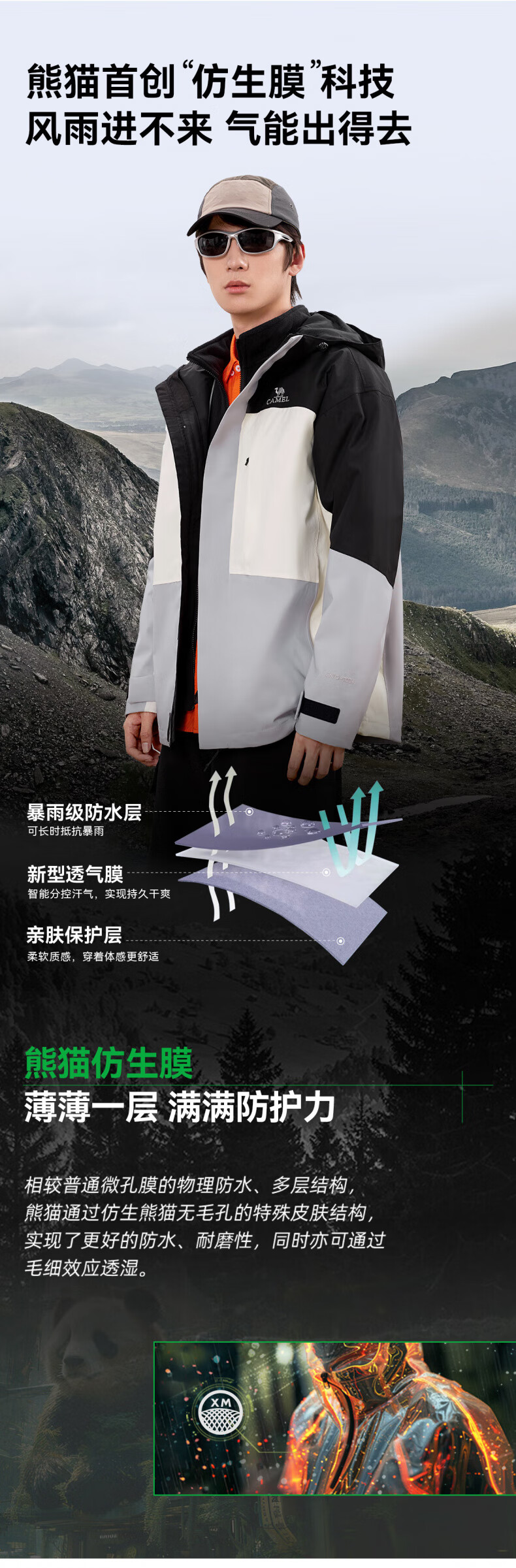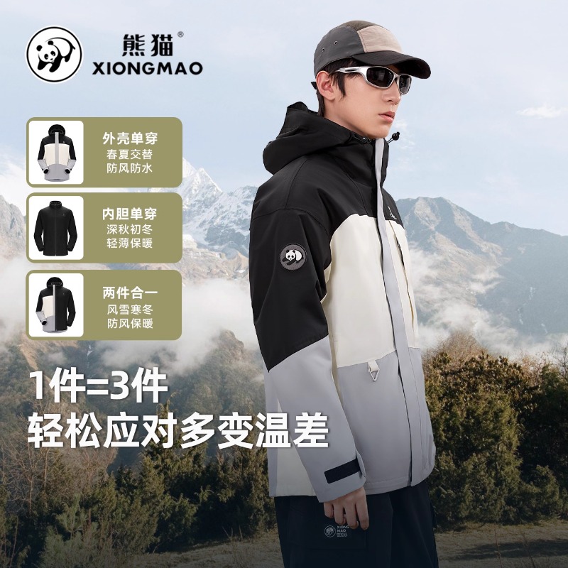 送运费险~【满599-100】熊猫系列户外冲锋衣三合一可拆卸防风防水登山服(抓绒内胆)