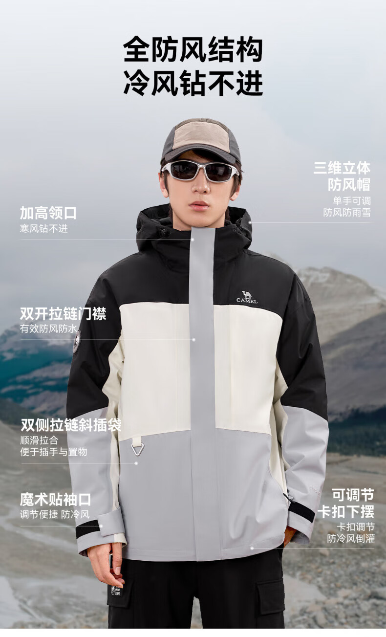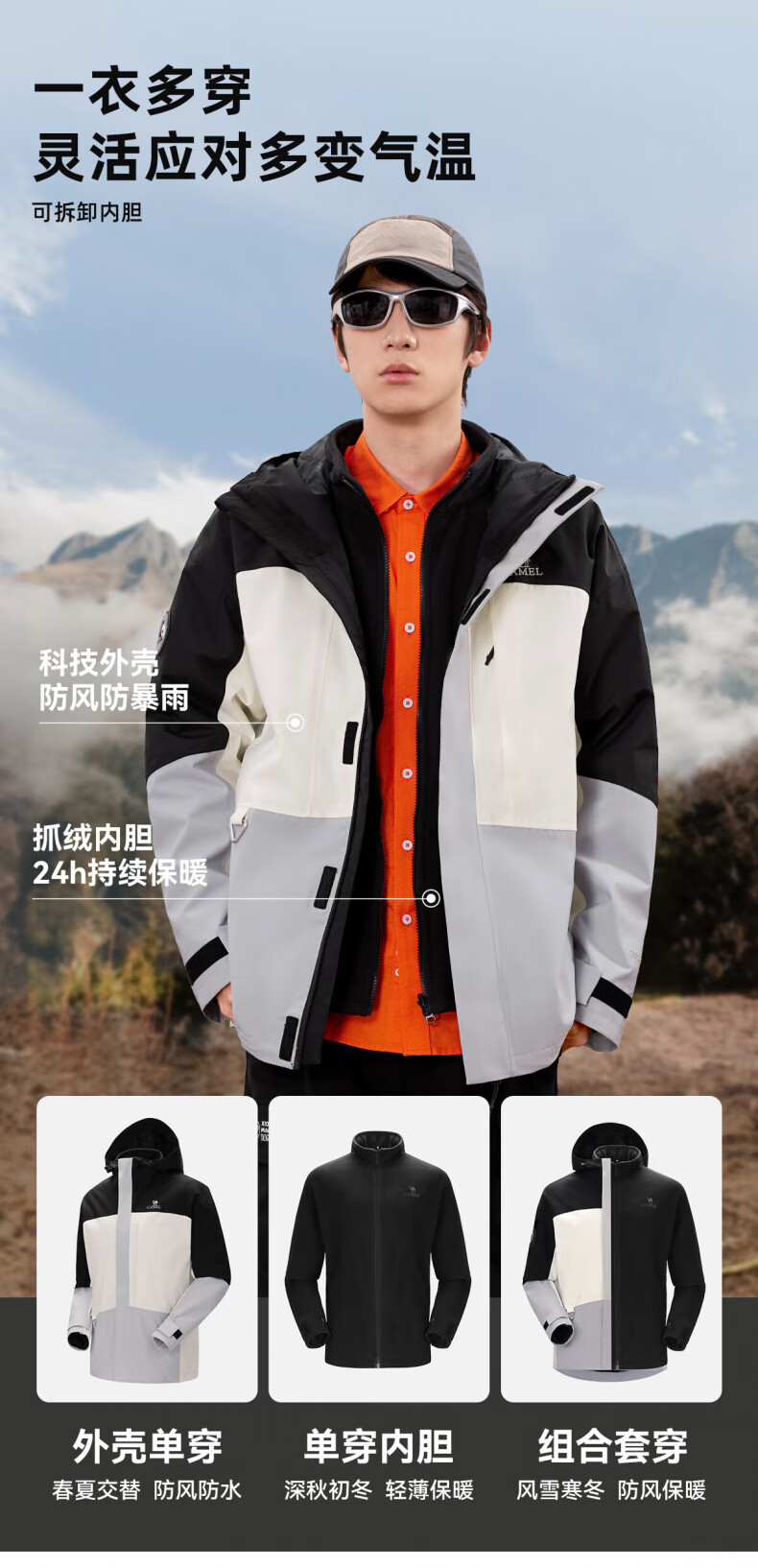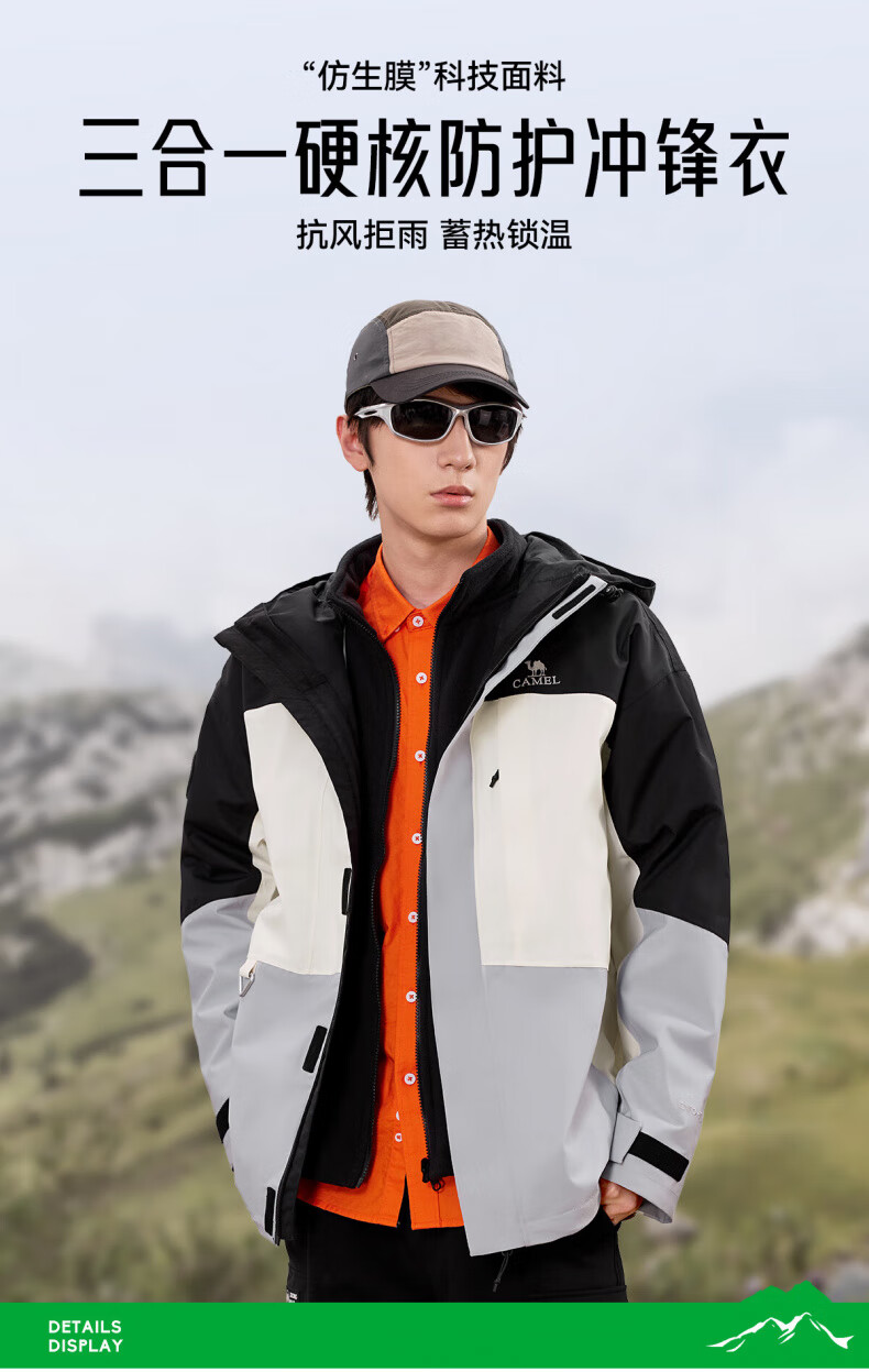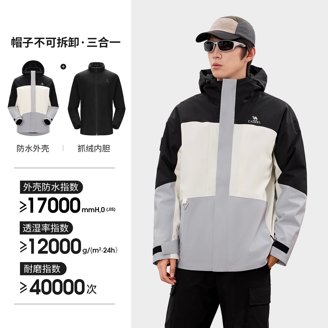送运费险~【满599-100】熊猫系列户外冲锋衣三合一可拆卸防风防水登山服(抓绒内胆)