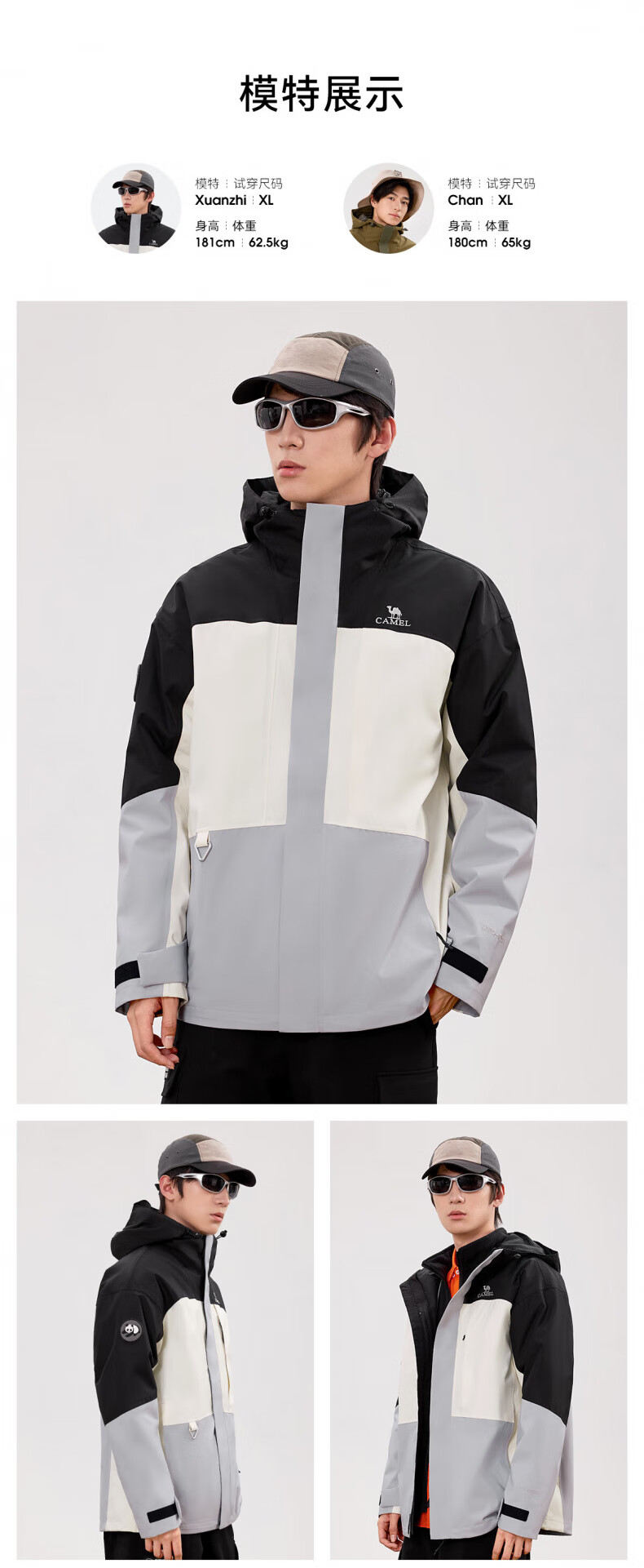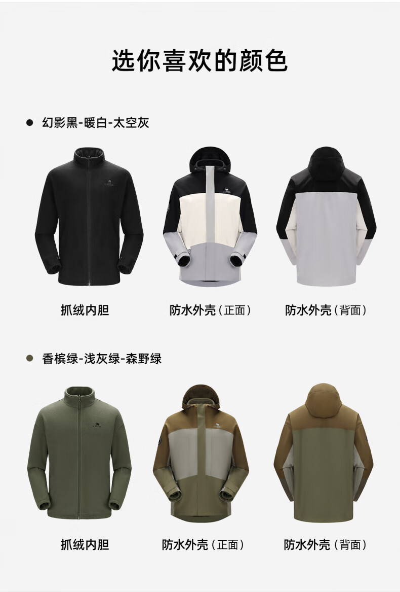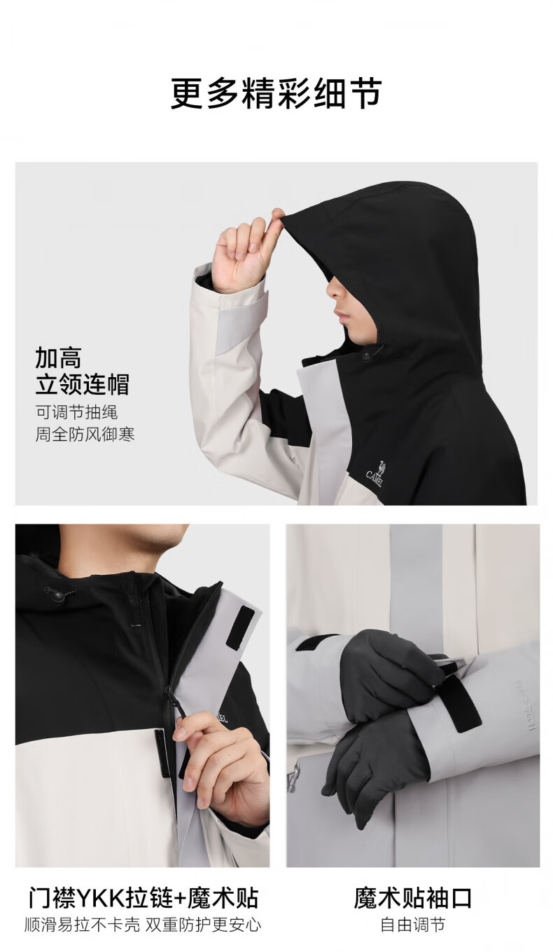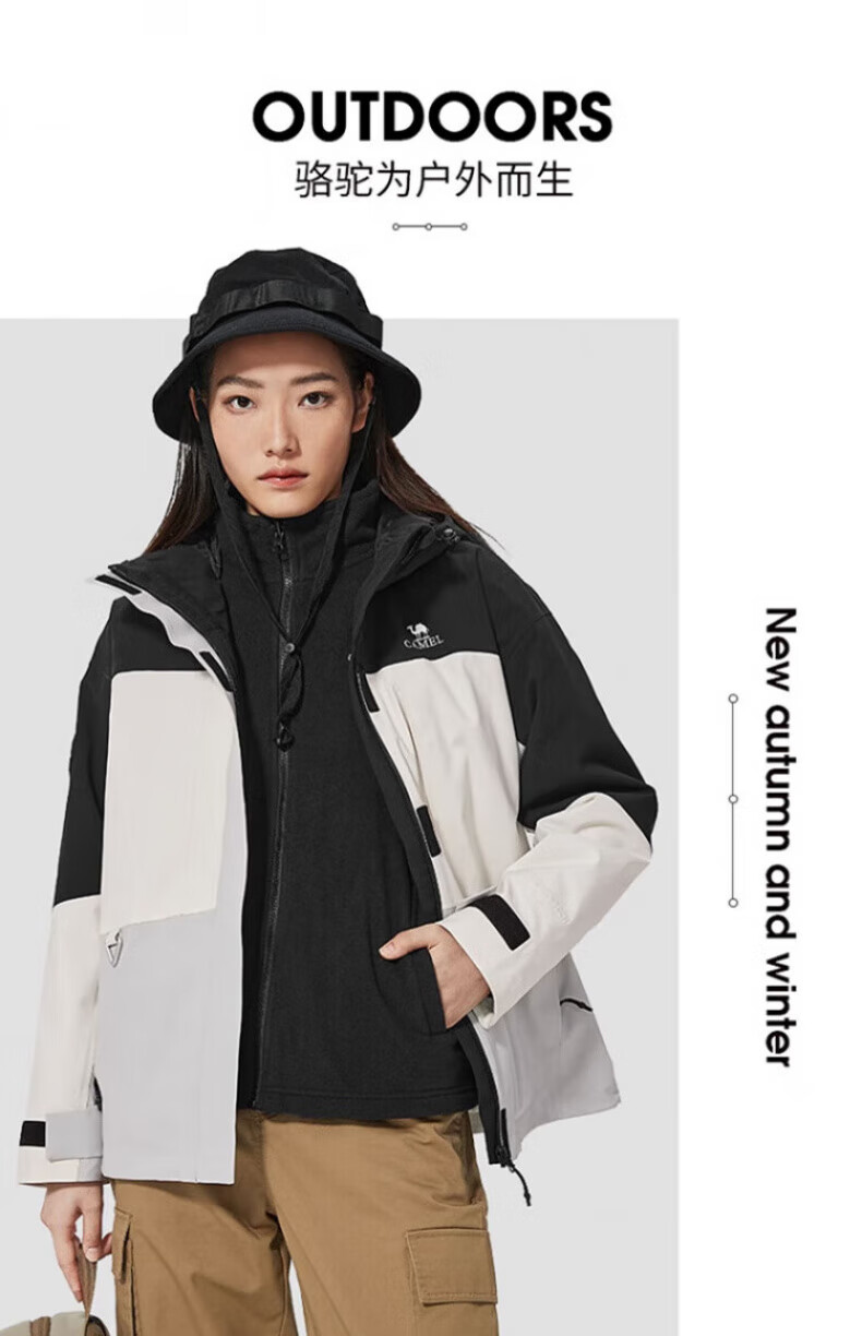 送运费险~【满599-100】熊猫系列户外冲锋衣三合一可拆卸防风防水登山服(抓绒内胆)