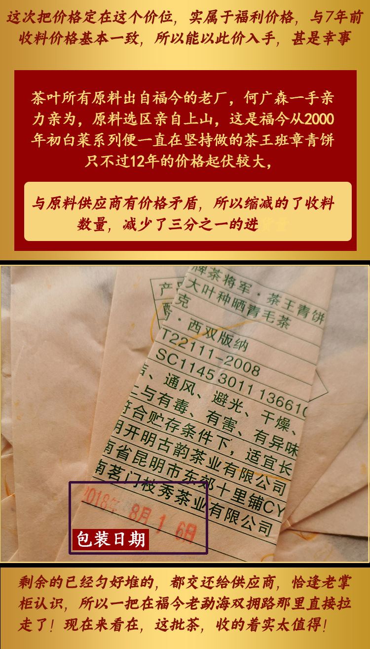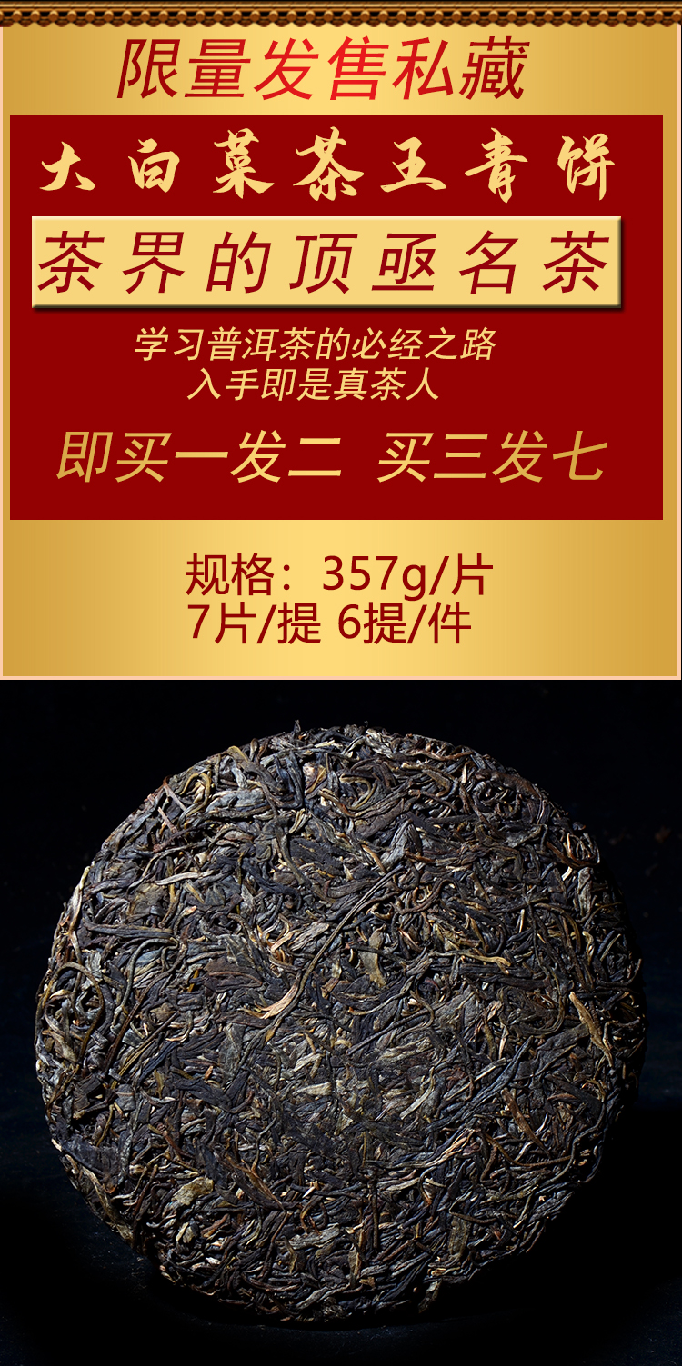 福利特惠【买一送一,买三送四】!特殊开仓茶王青饼 357克7年老生茶 汤厚回甘生津