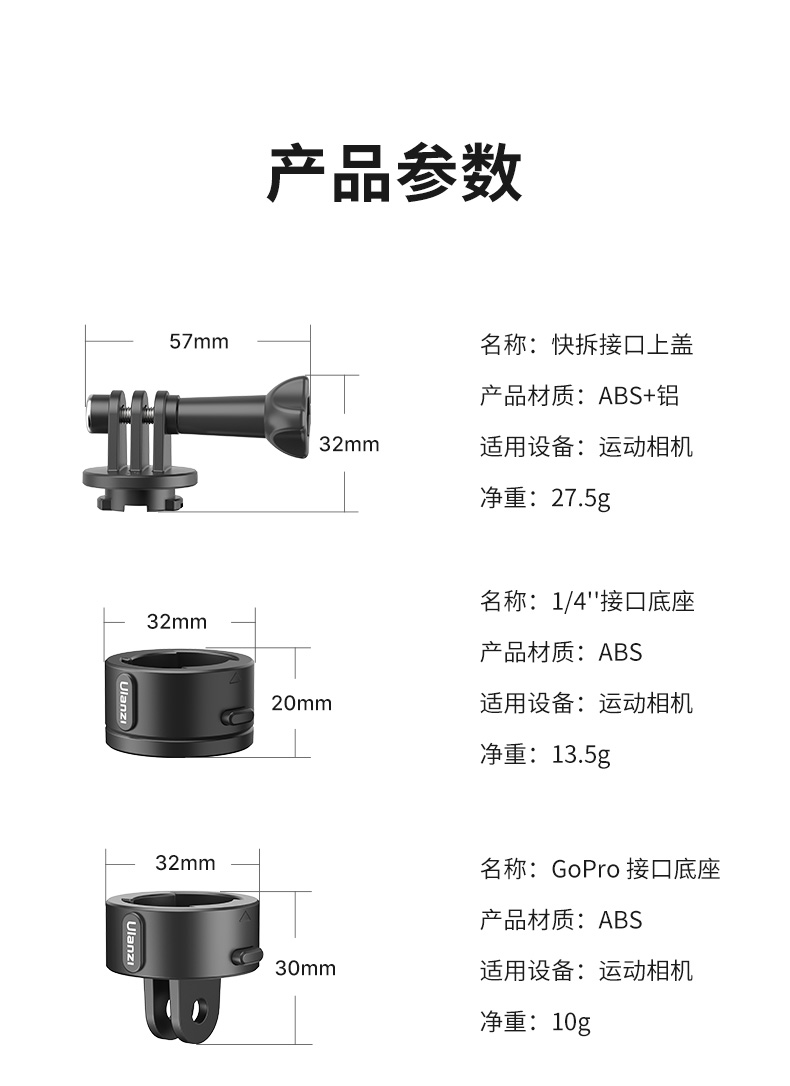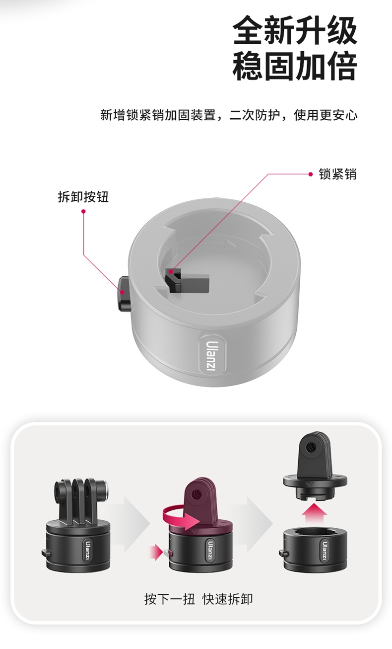 Ulanzi优篮子 Go-Quick II磁吸快拆底座Gopro11/10/9/8大疆osmo action3运动相Insta360 X3摄影支架配件