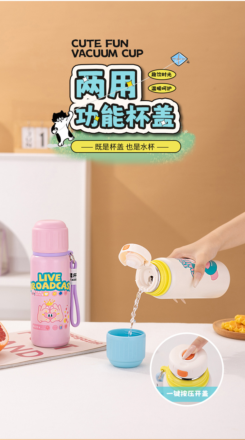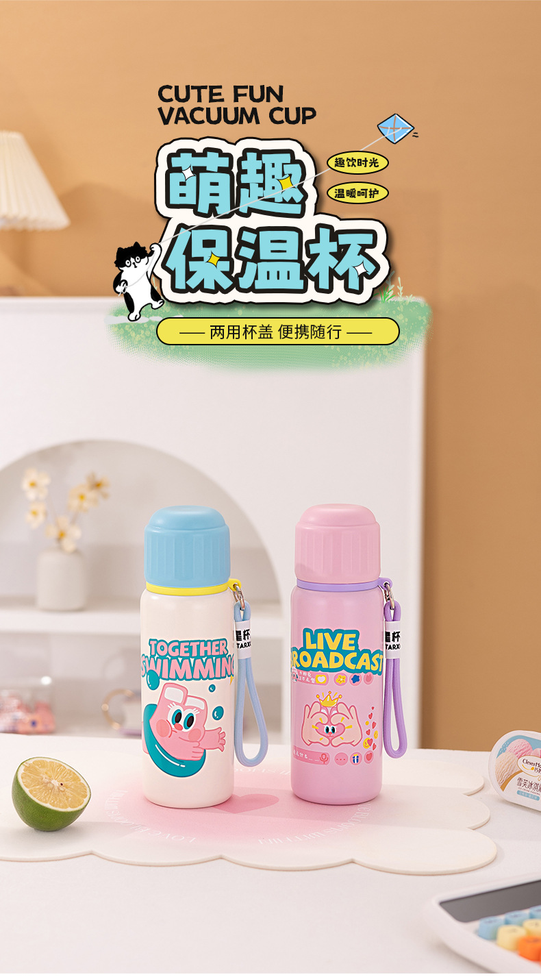 🔥【29.9秒杀】双饮趣味涂鸦保温杯 316不锈钢女颜值大容量550ml