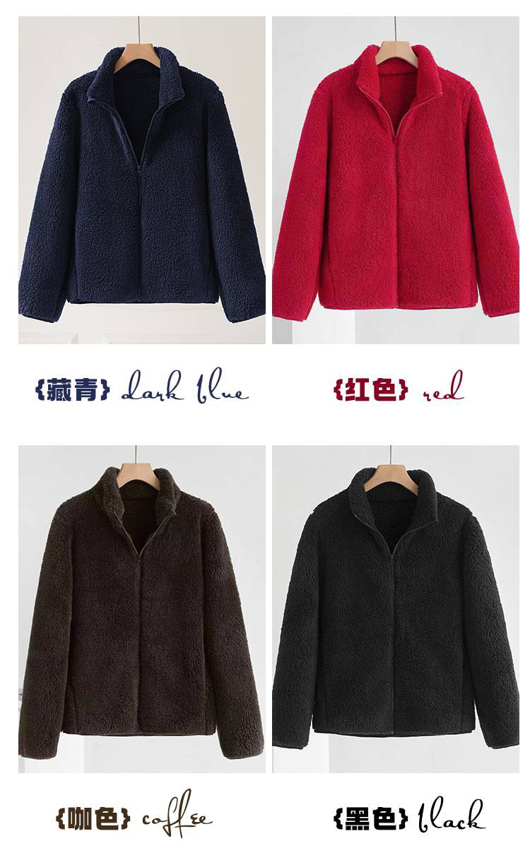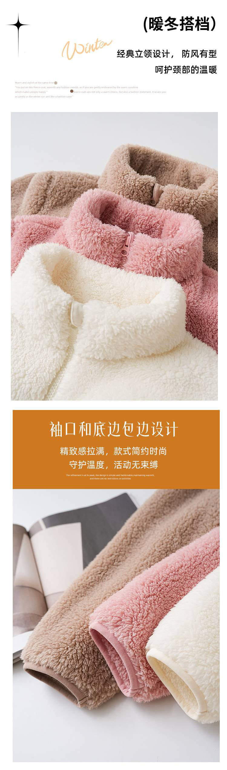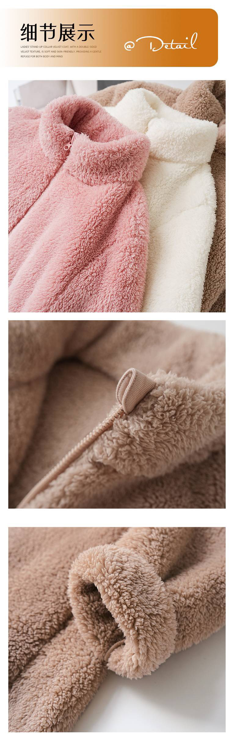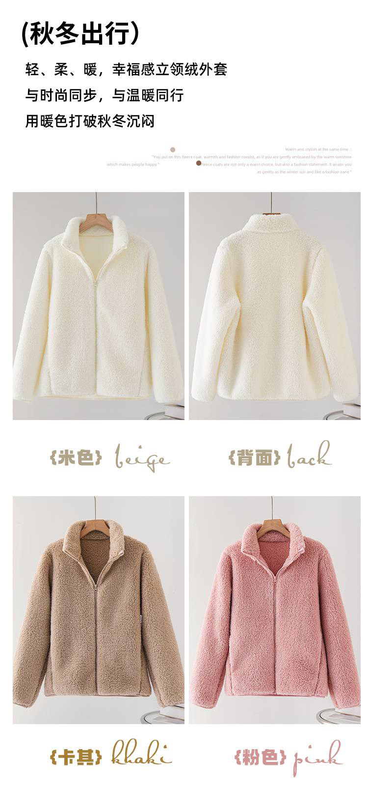 女士长绒摇粒绒保暖立领拉链夹克外套