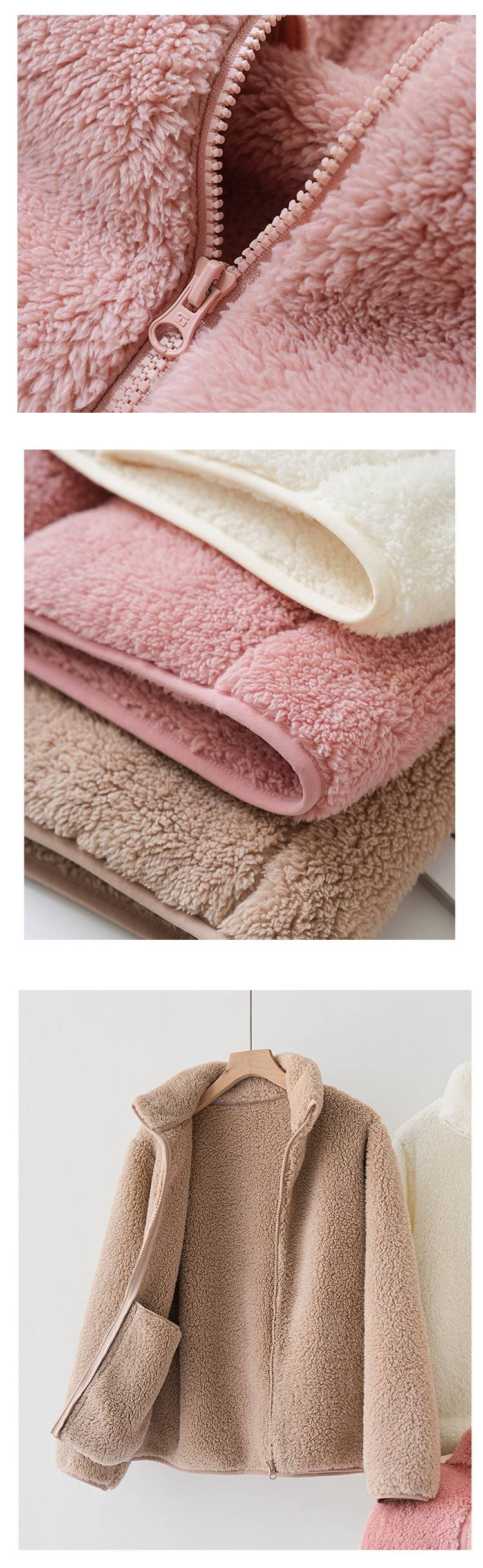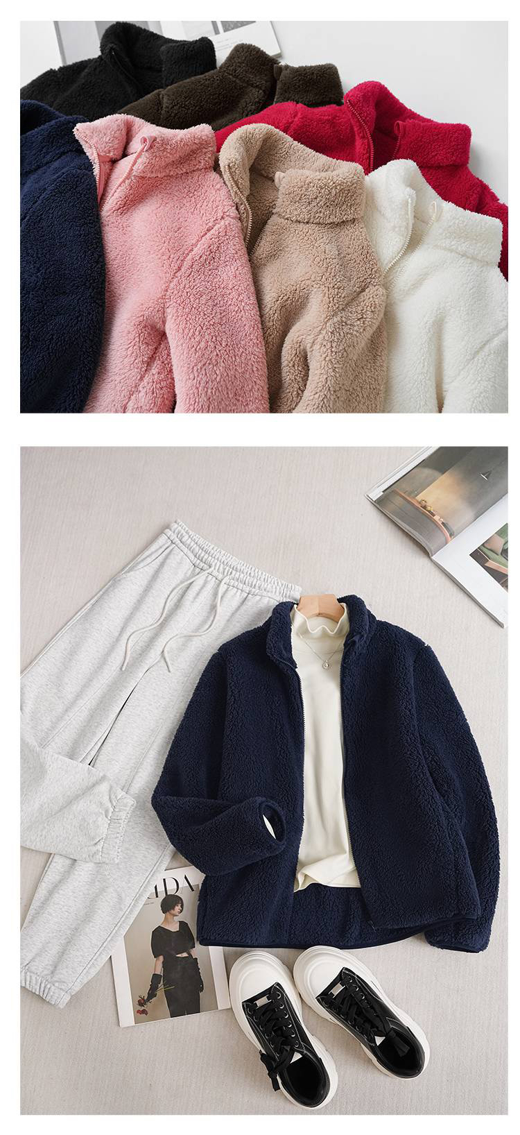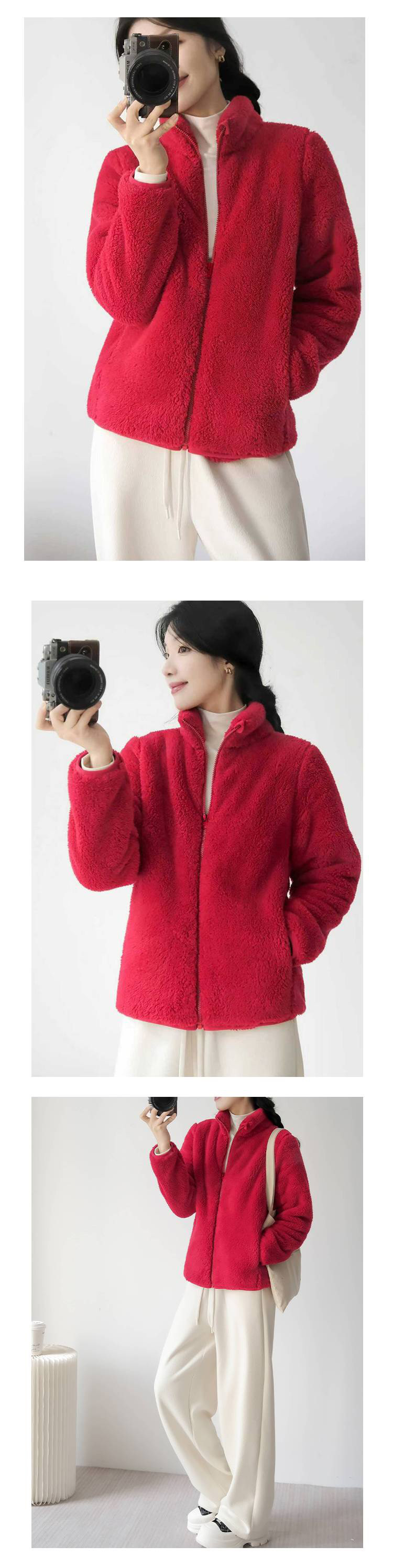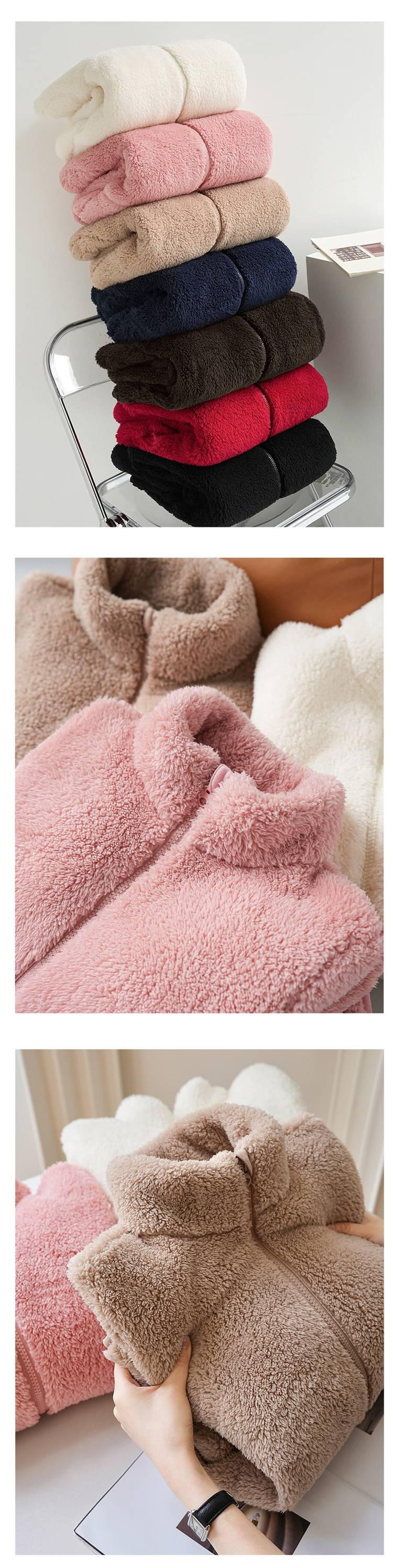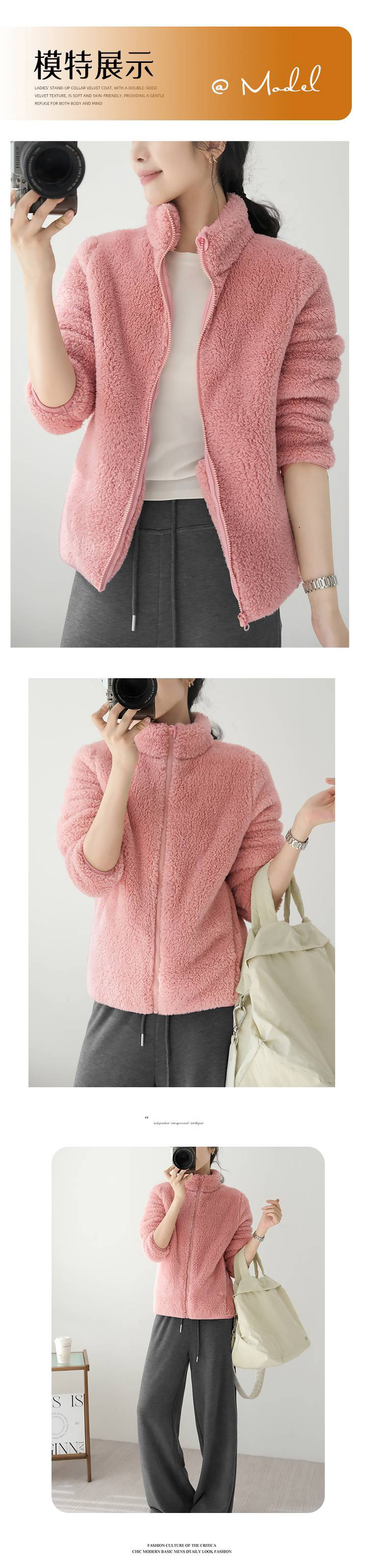 女士长绒摇粒绒保暖立领拉链夹克外套