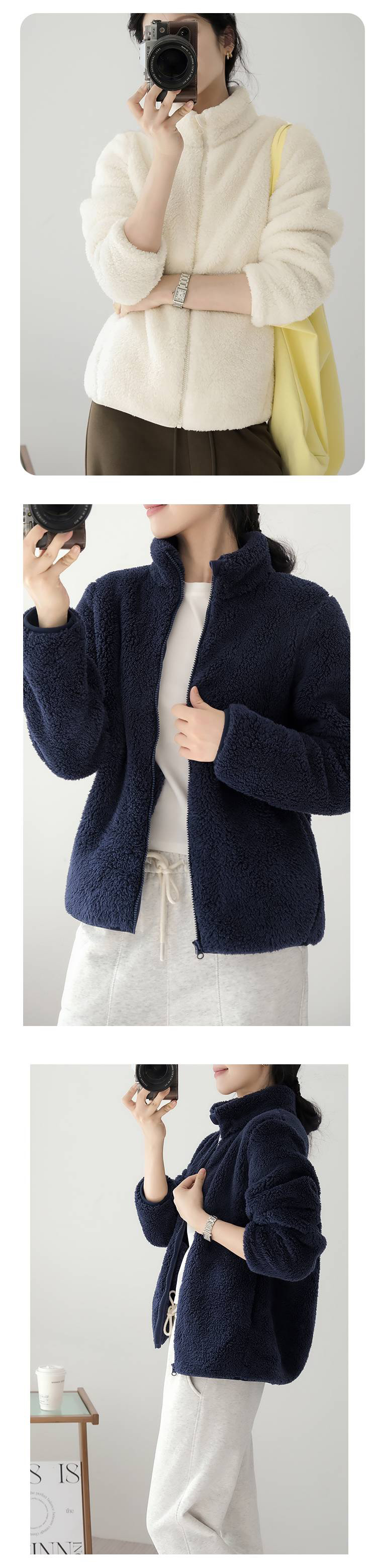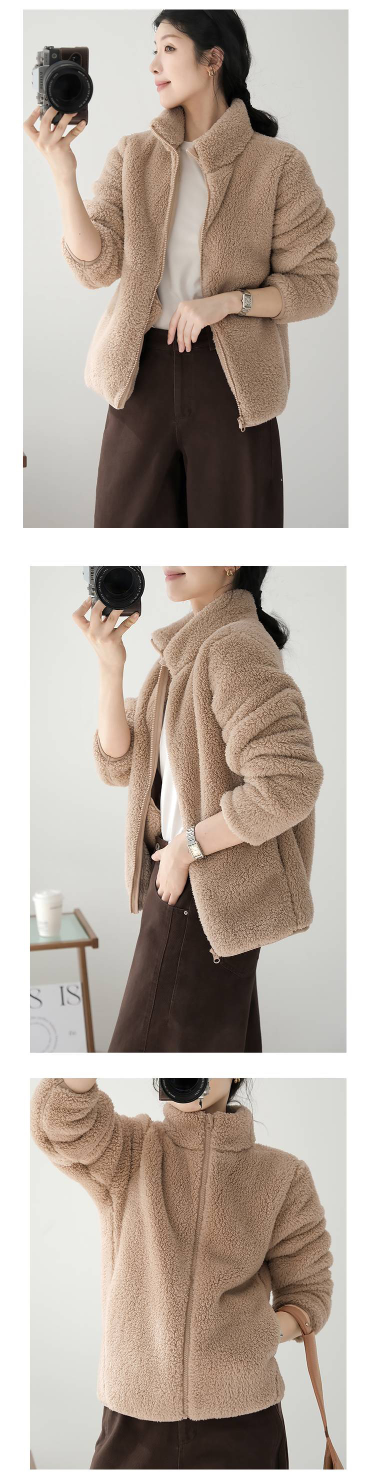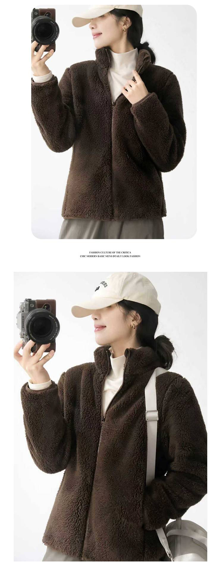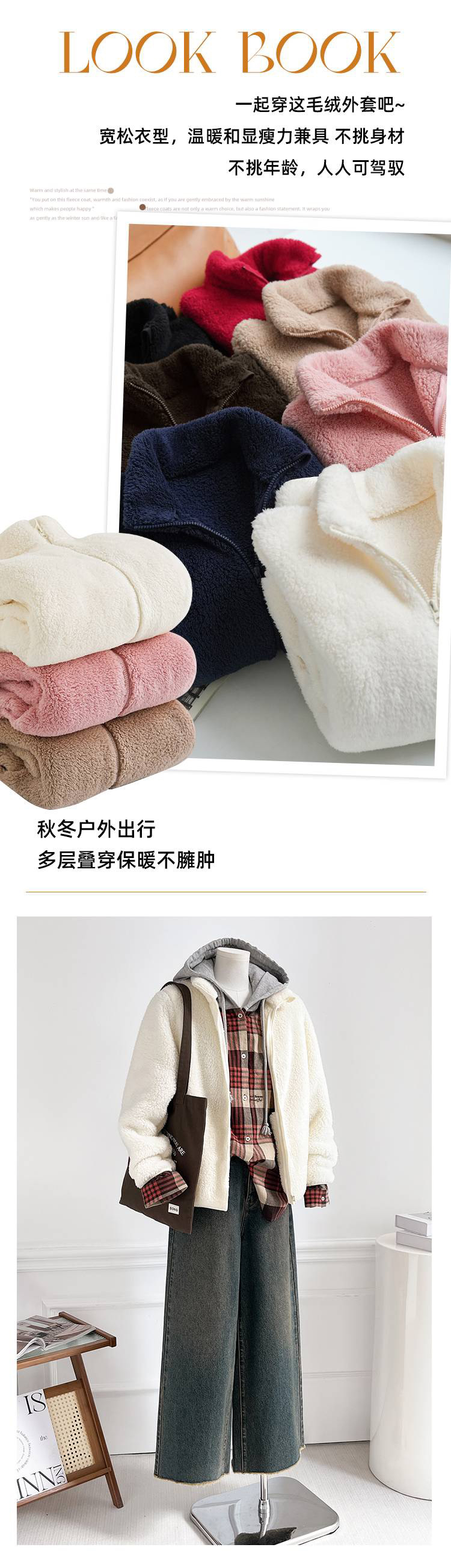 女士长绒摇粒绒保暖立领拉链夹克外套