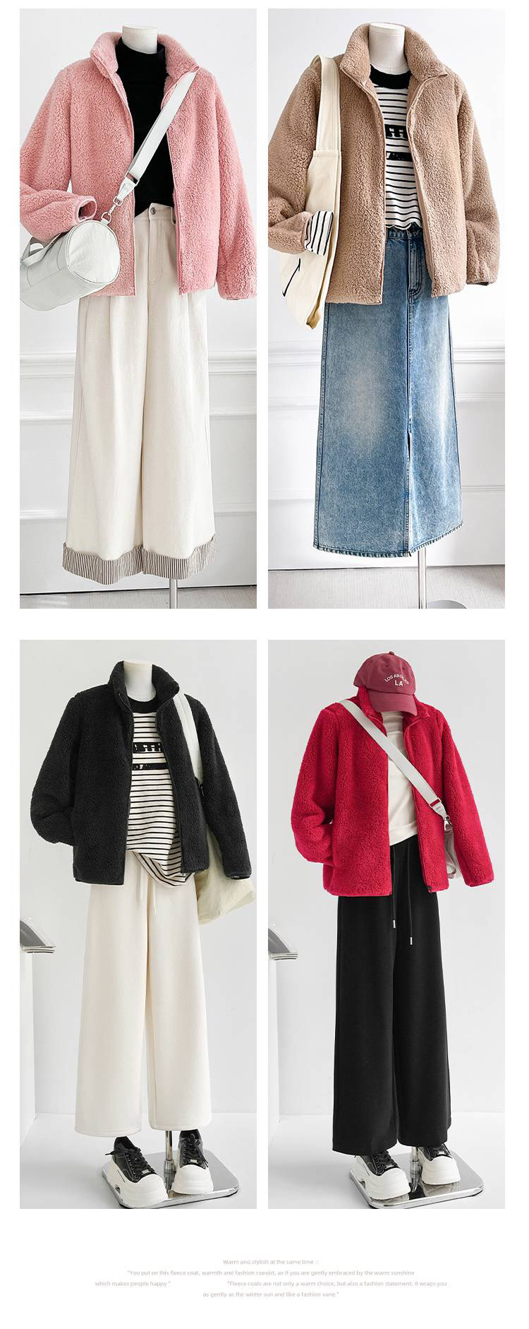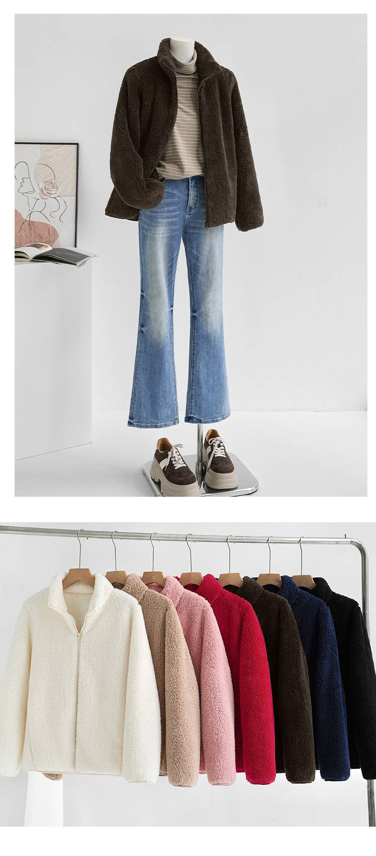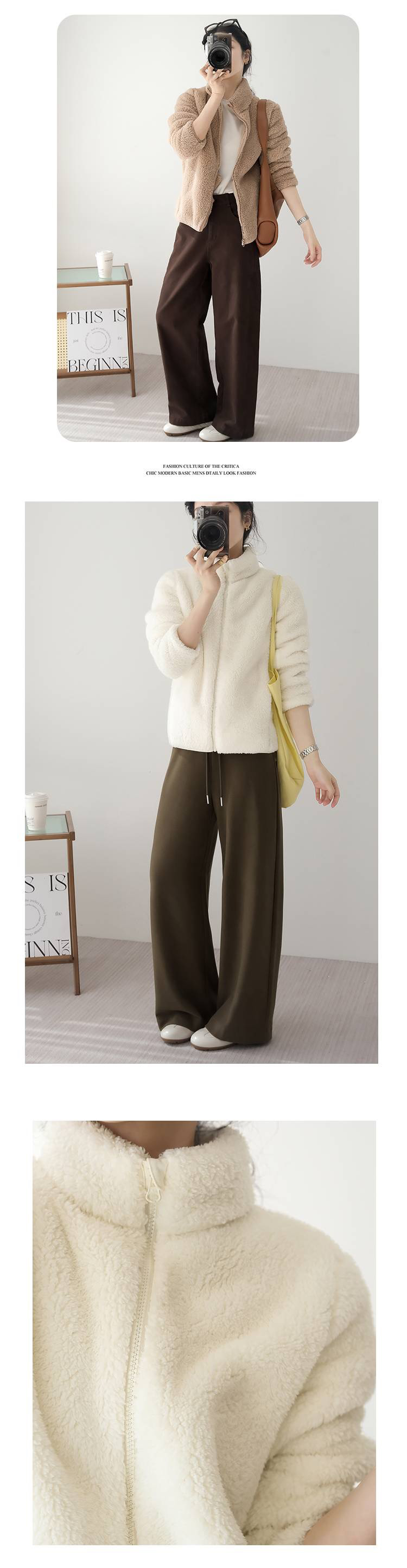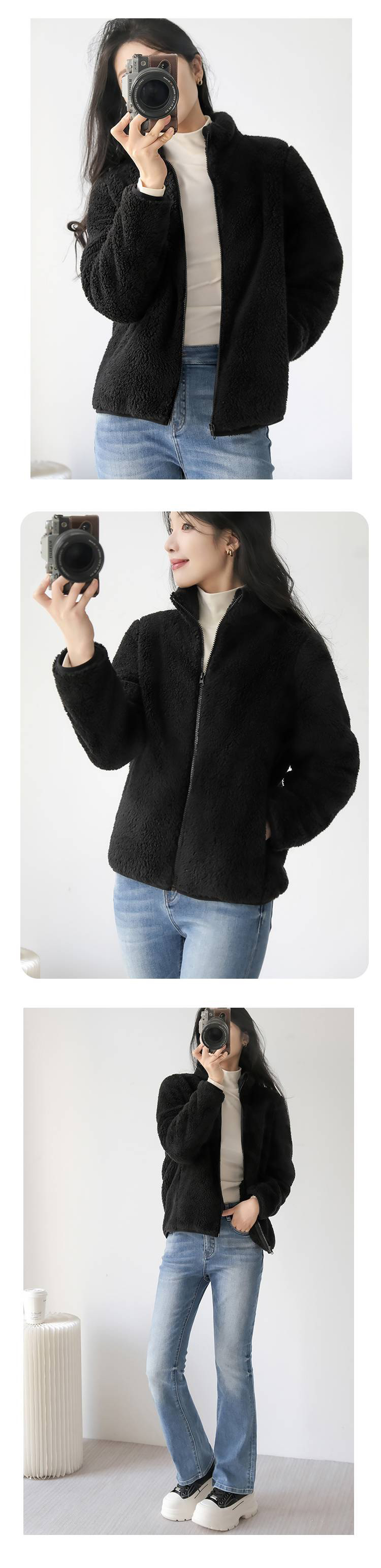 女士长绒摇粒绒保暖立领拉链夹克外套