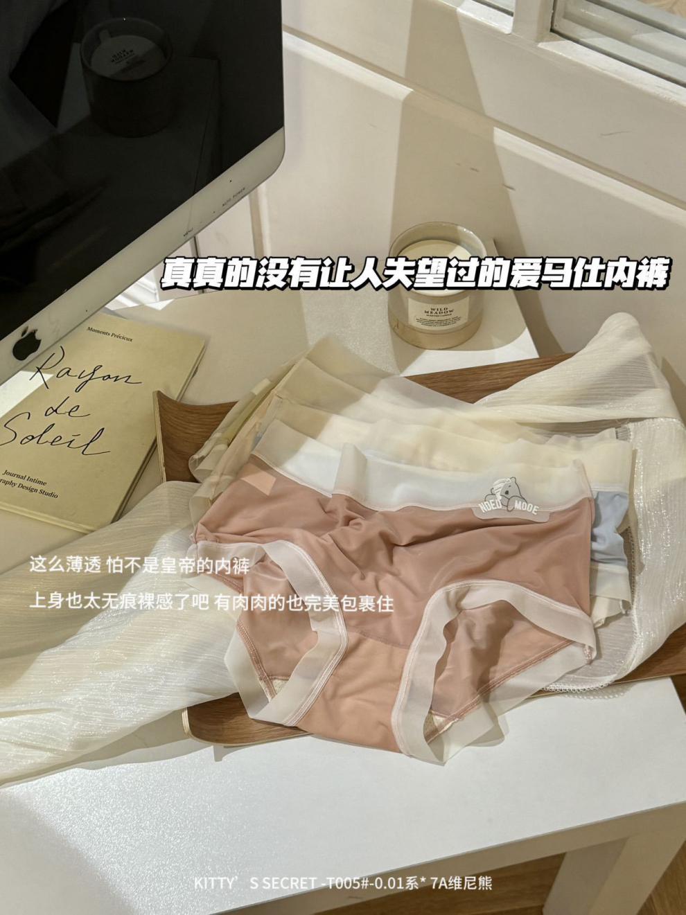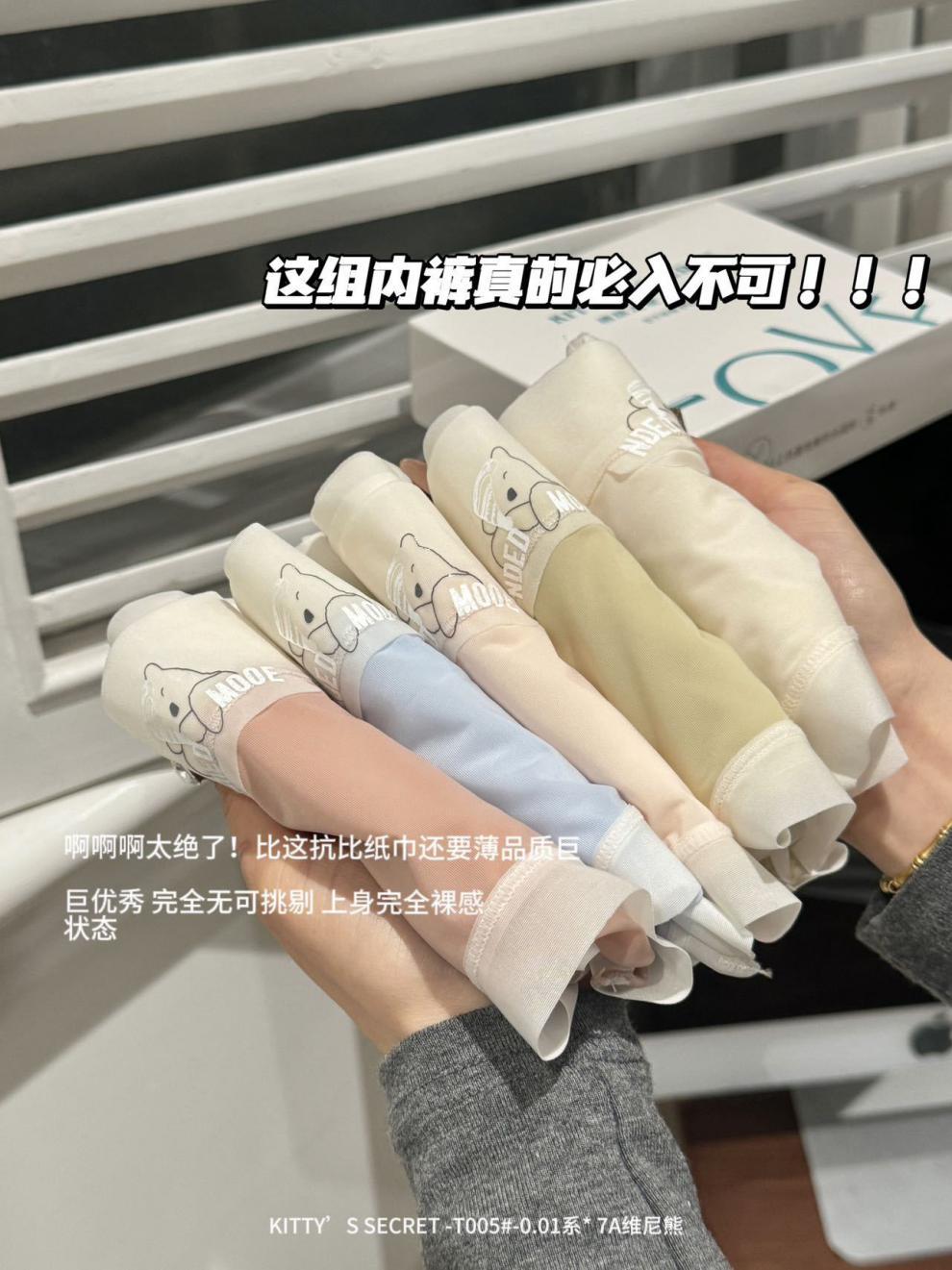 夏季0.01系超薄冰皮无痕内裤女7A紫醇抗菌裆可爱维尼熊女士内裤