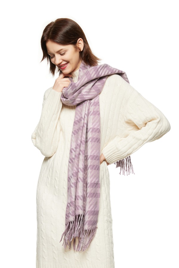 AVA 紫色格纹流苏围巾 8078