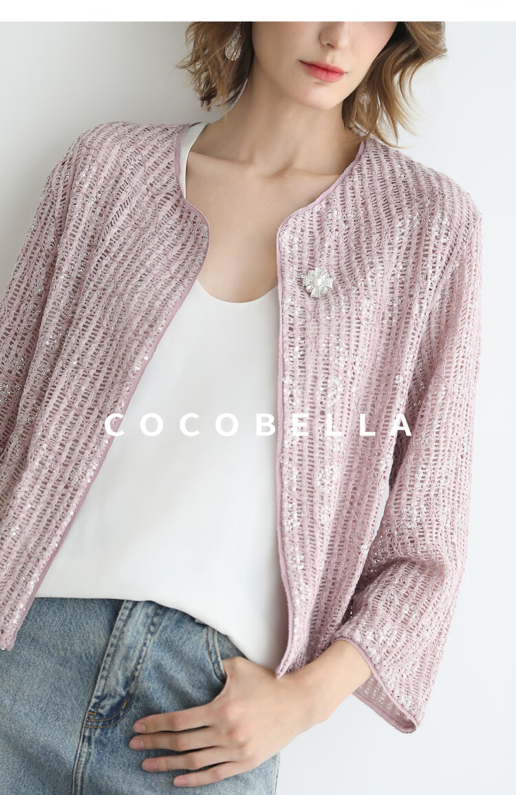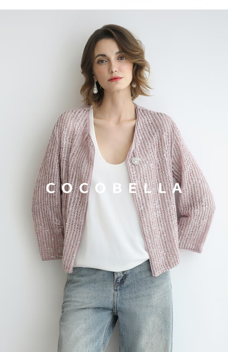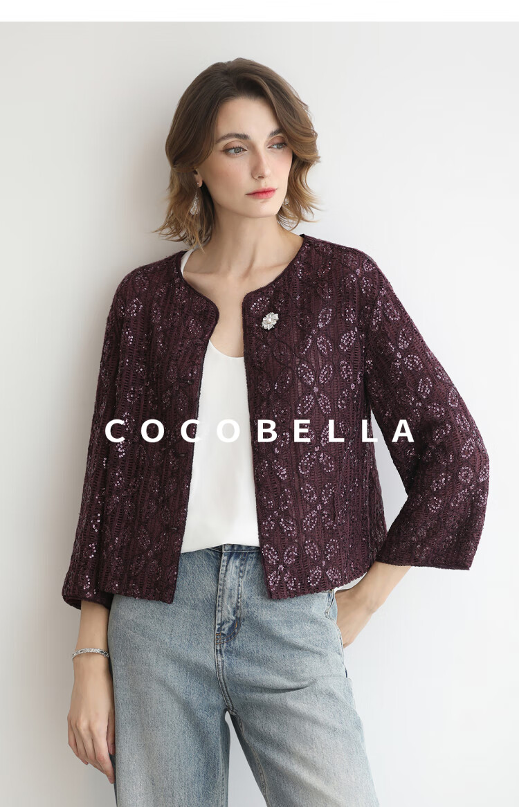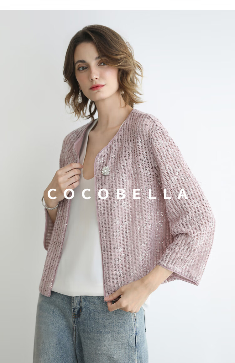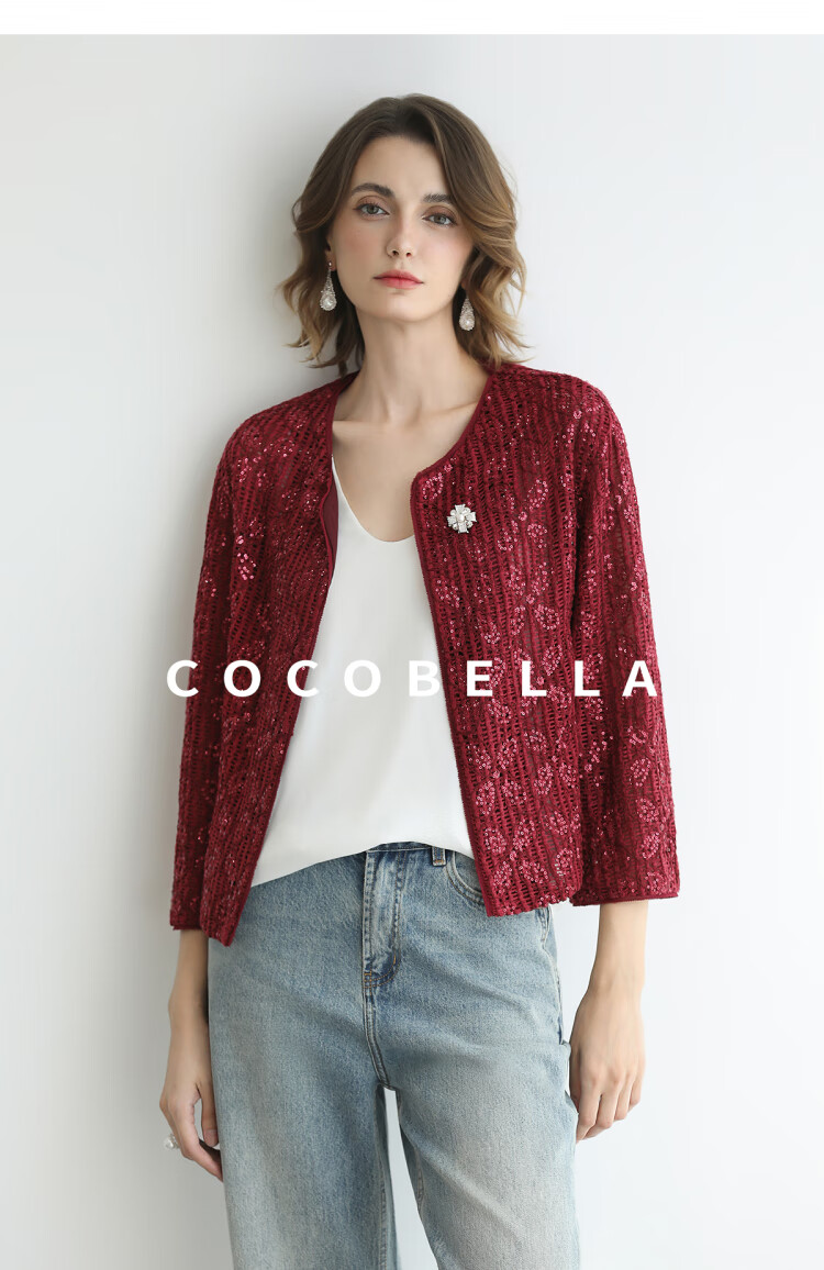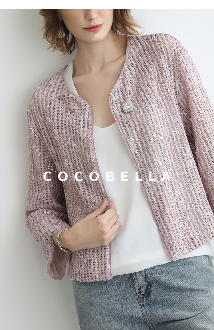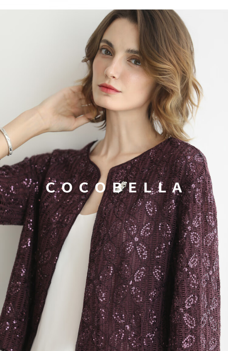 COCOBELLA设计师重工对丝亮片盘带绣花外套通勤开衫MZ3182-2