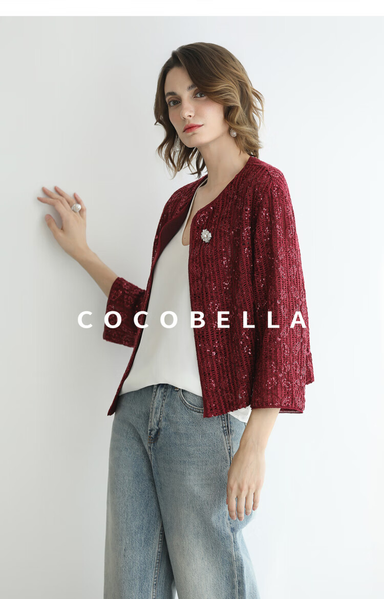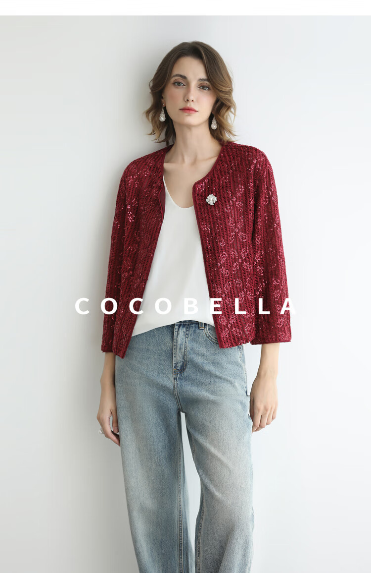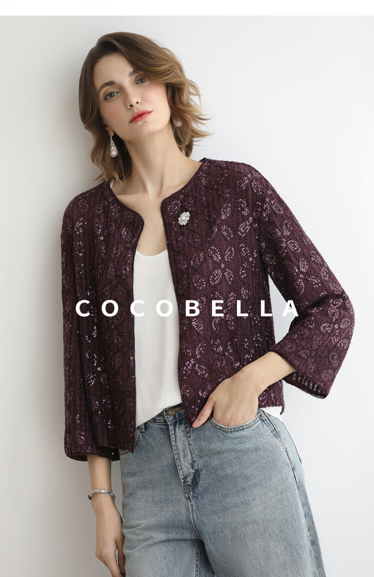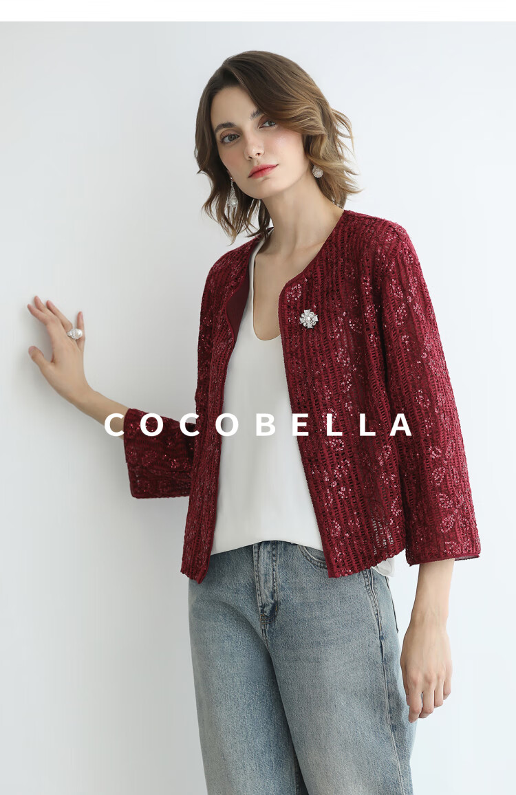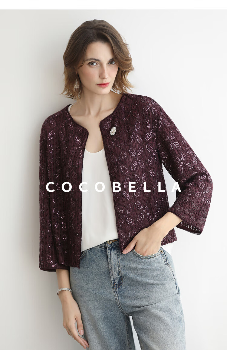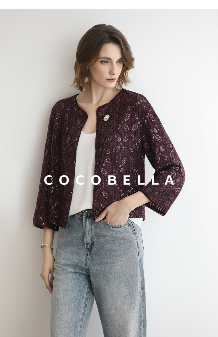 COCOBELLA设计师重工对丝亮片盘带绣花外套通勤开衫MZ3182-2