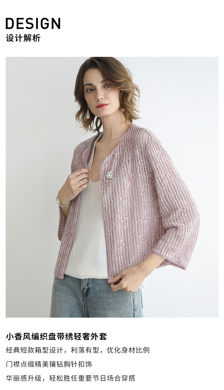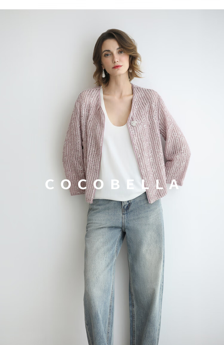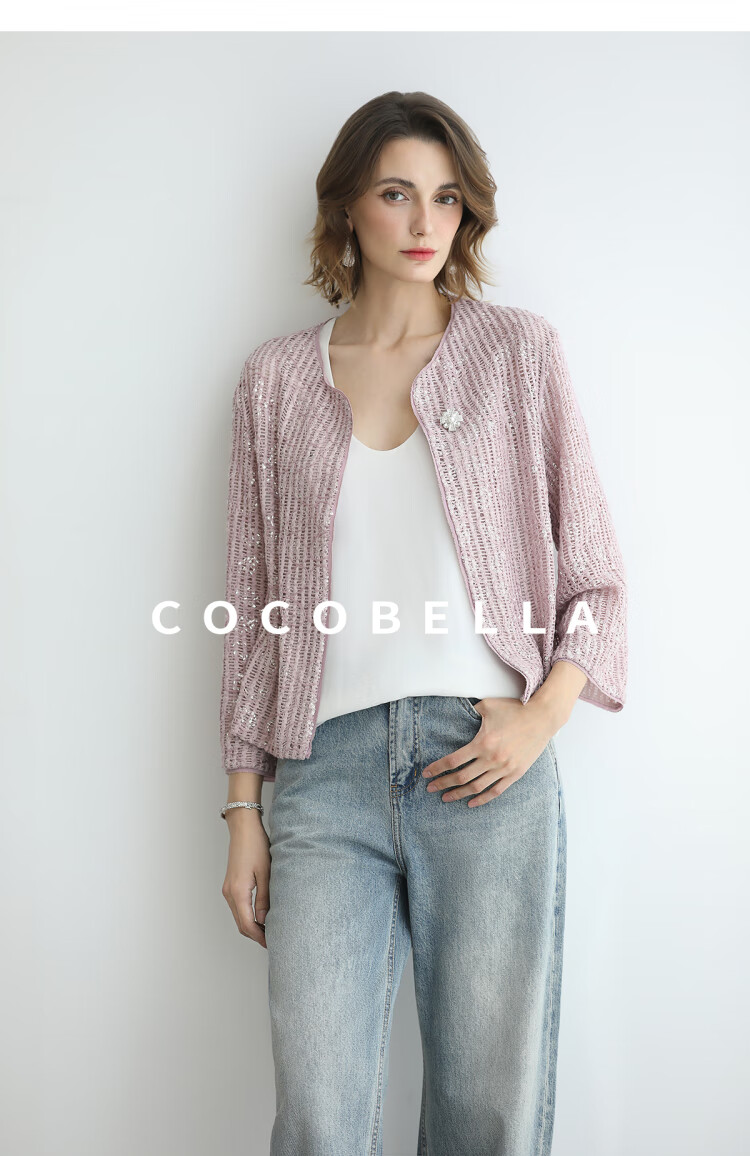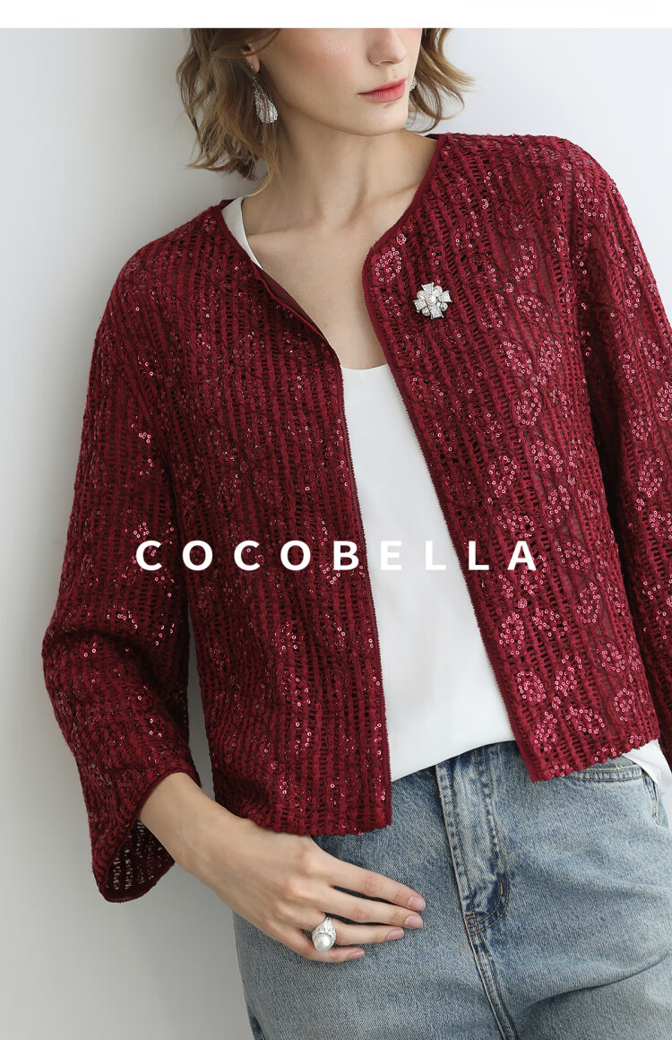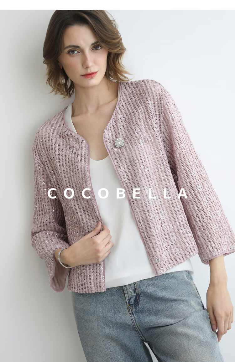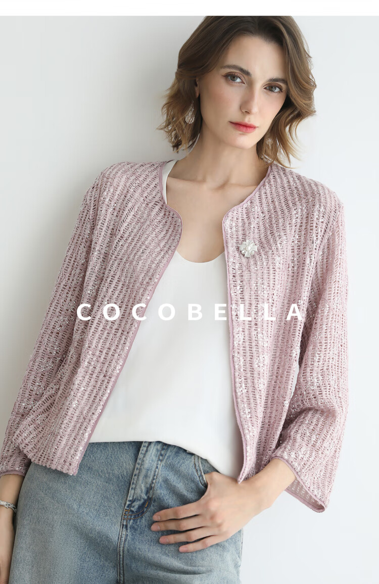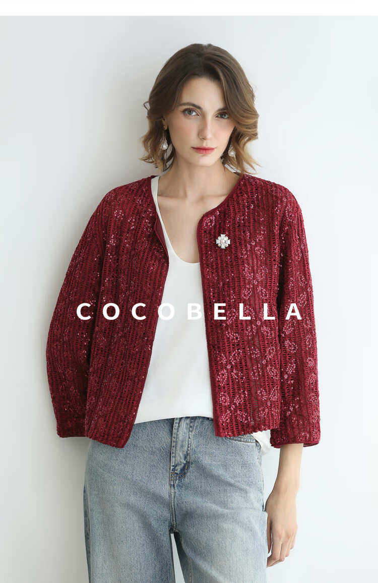 COCOBELLA设计师重工对丝亮片盘带绣花外套通勤开衫MZ3182-2
