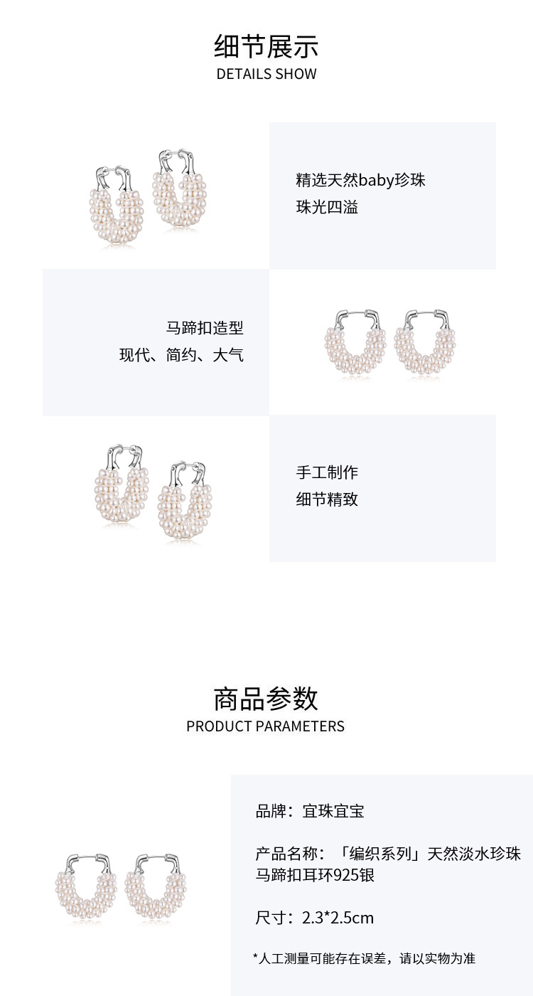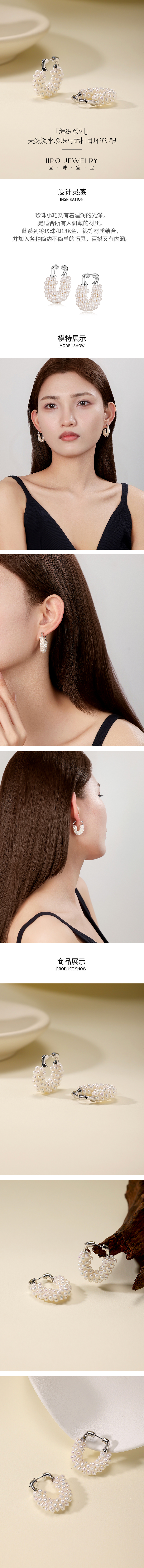 IIPO宜珠宜宝「编织系列」天然淡水珍珠马蹄扣耳环(礼盒装)