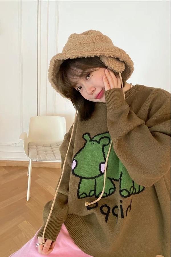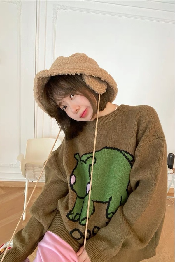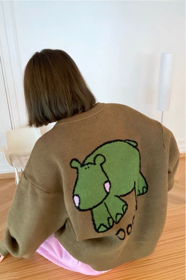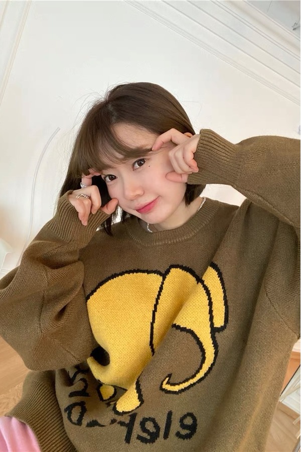 WHO KNOWS 可爱款大象河马图案针织两穿上衣 14827