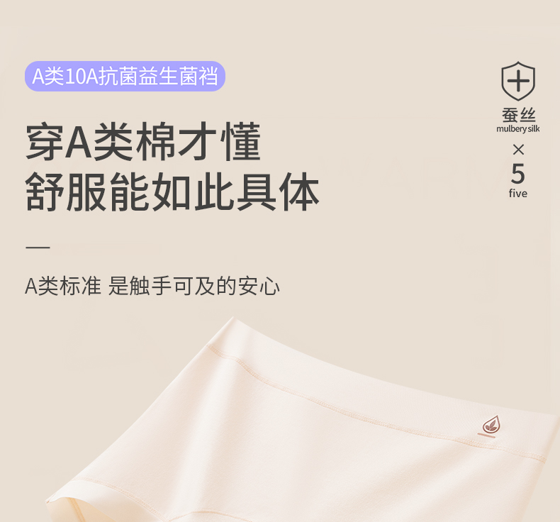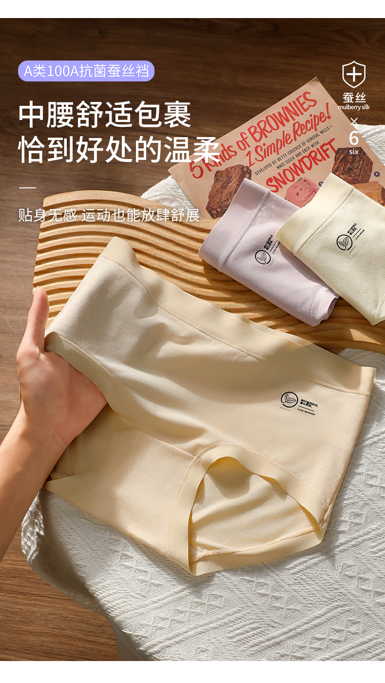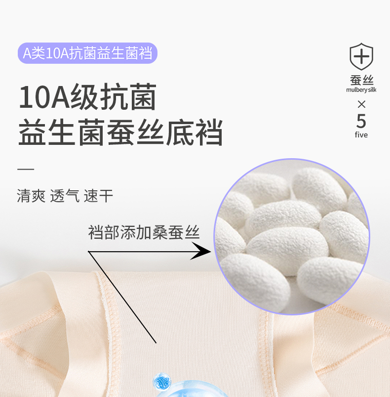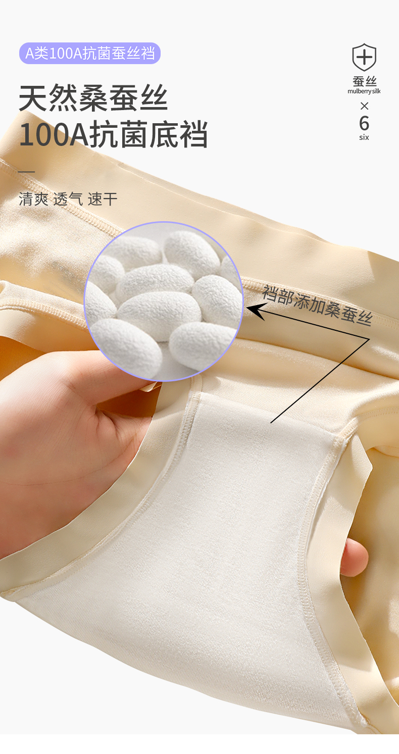 软嫩贴肤 桑蚕丝底裆 + 消臭因子