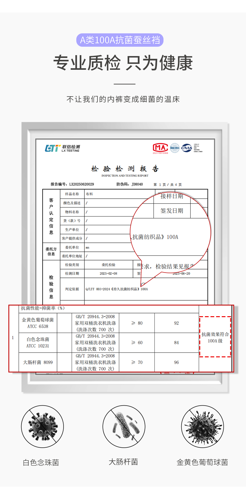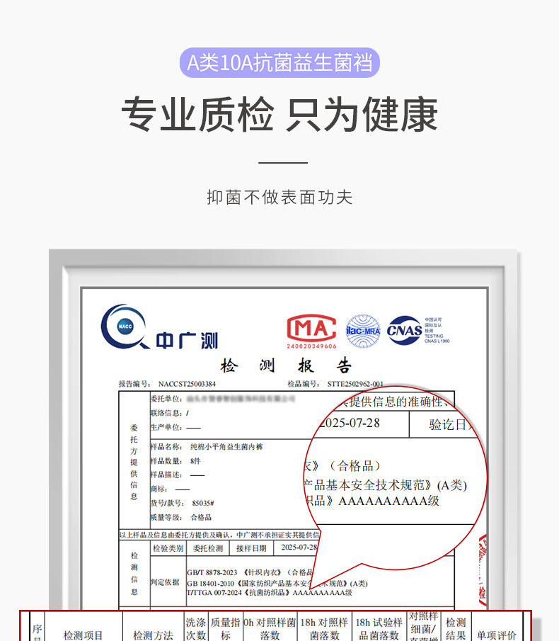 100A底裆抗菌,洗涤 700 次仍有效