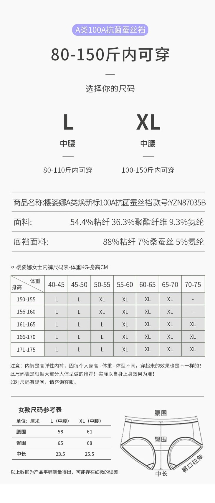 【品名】:樱姿娜蚕丝备忘录内裤