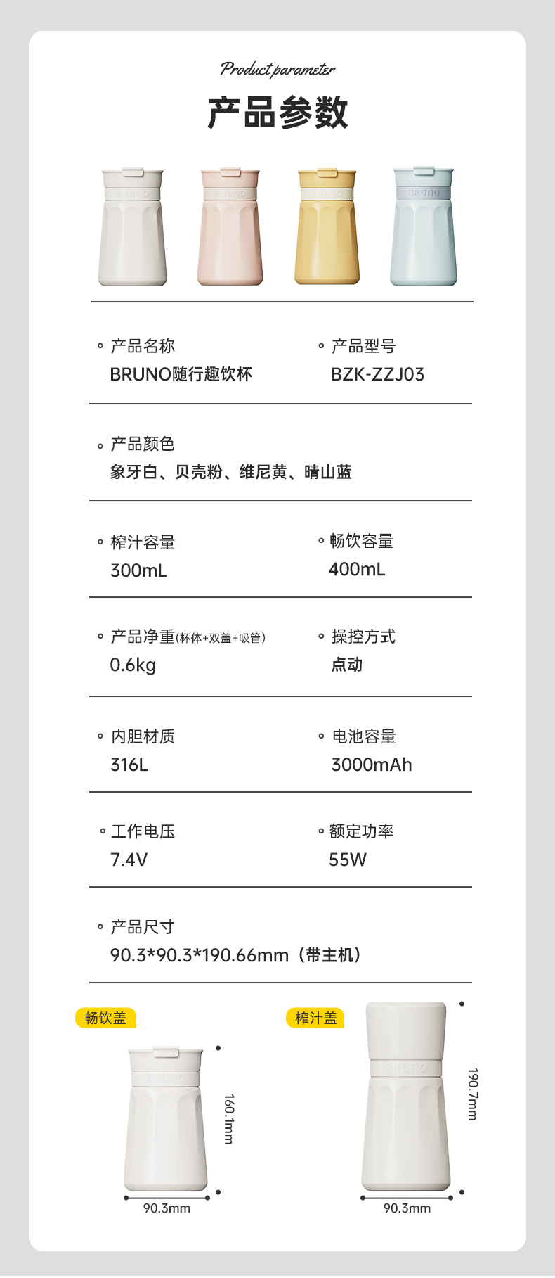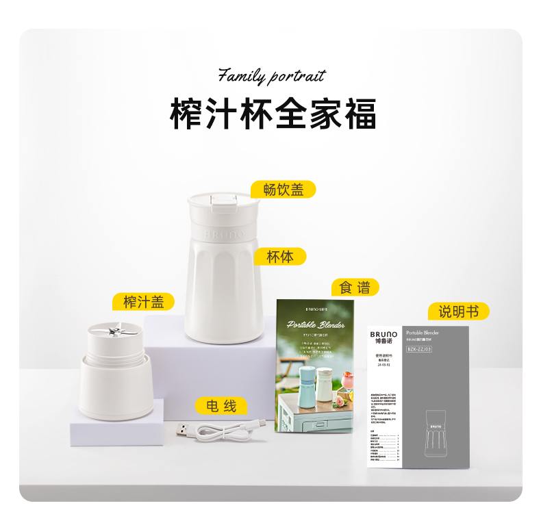 BRUNO榨汁杯便携式榨汁机电动果汁杯家用小型果汁机随行趣饮杯