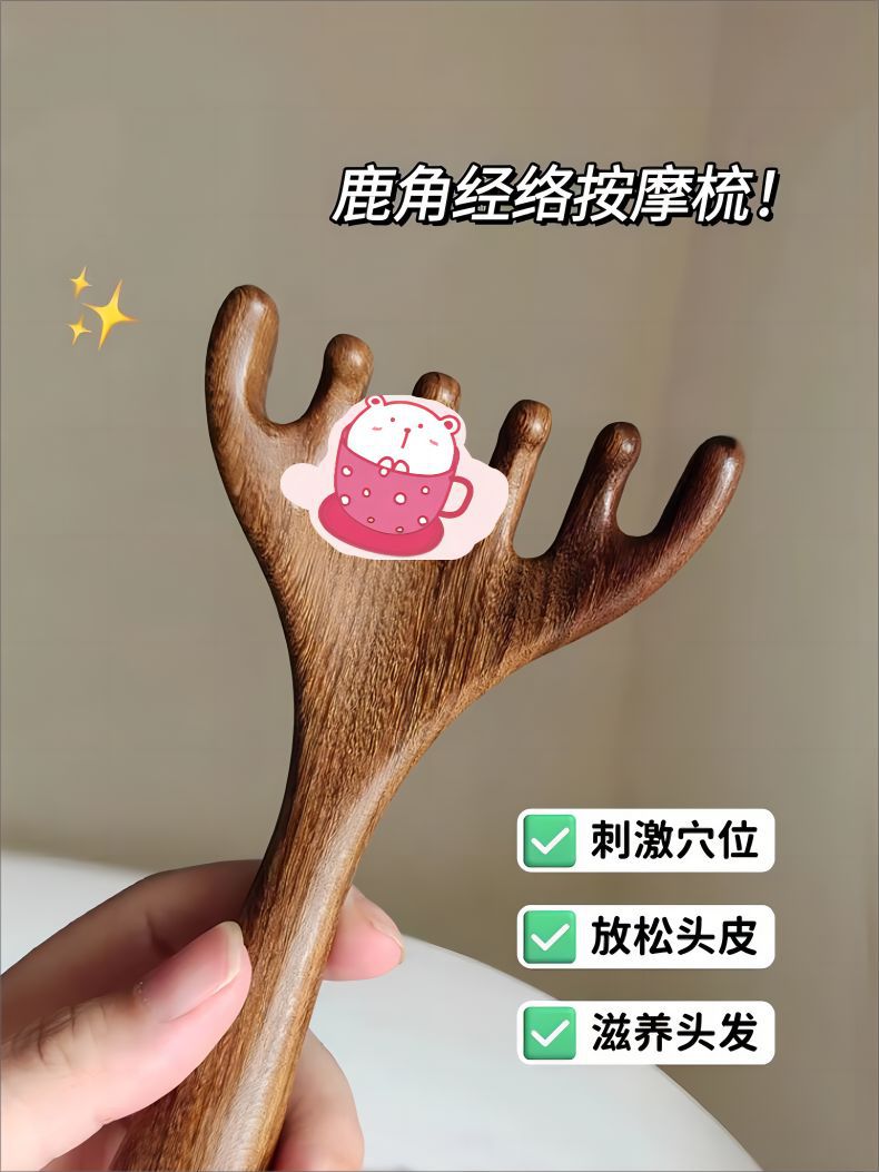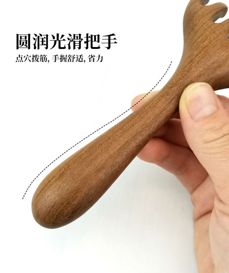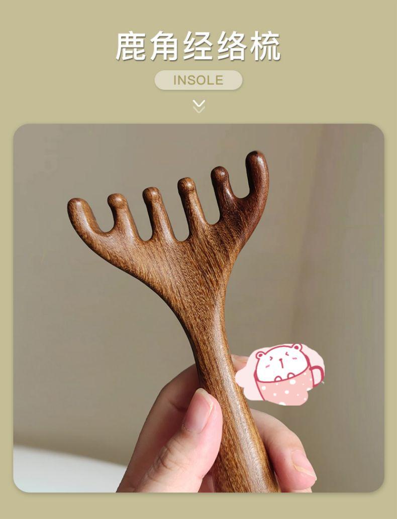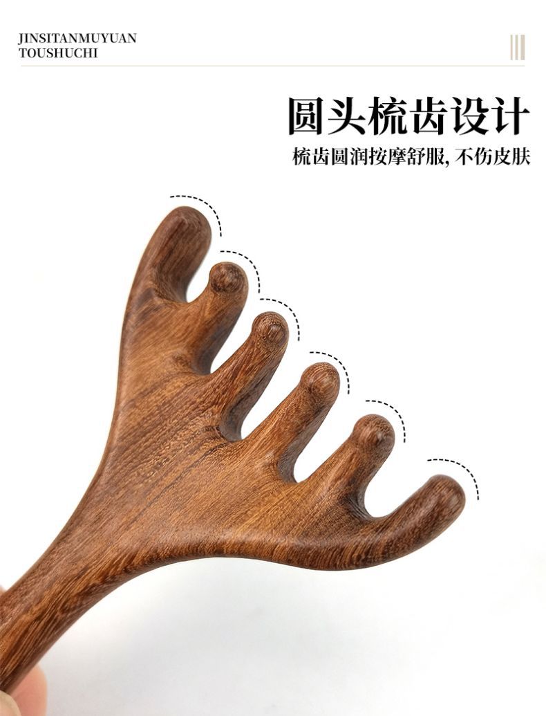 檀木头部按摩梳头疗工具头皮按摩五爪挠头点穴按摩抓头鹿角经络梳