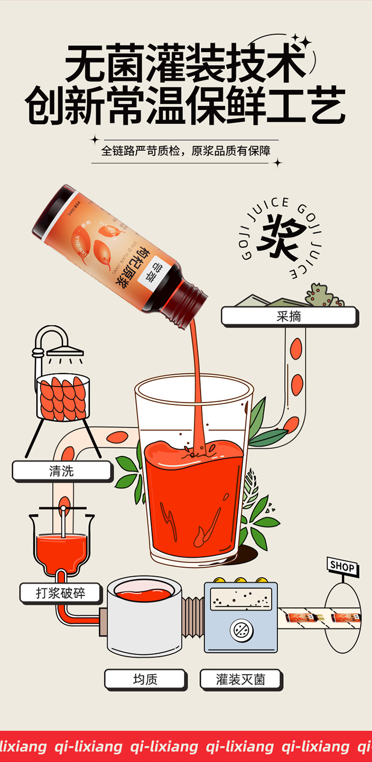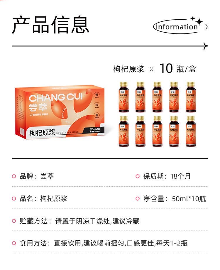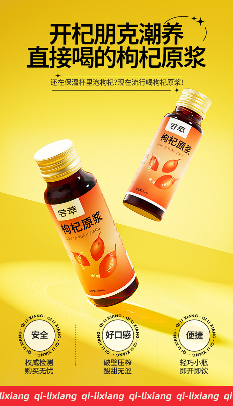 杞里香尝萃500ml盒装枸杞原浆经典瓶装宁夏红枸杞原浆原汁50ml*10瓶