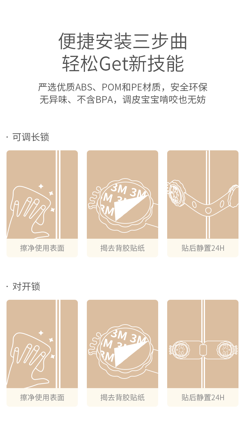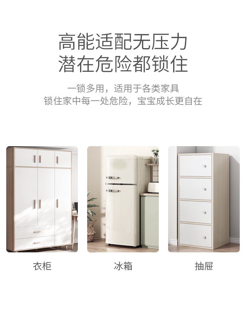 科巢儿童安全锁抽屉扣防宝宝婴儿夹手冰箱柜子推拉门对开锁