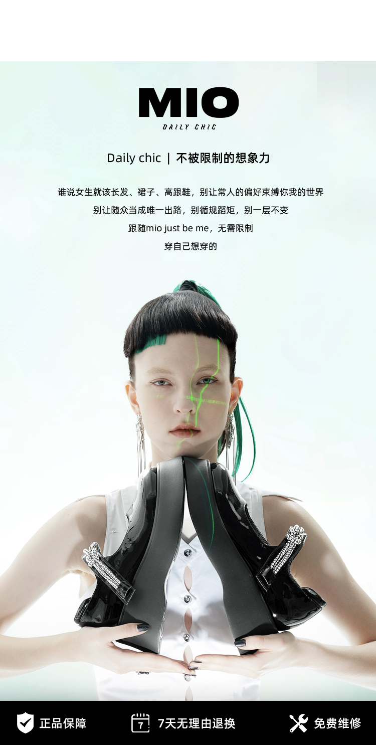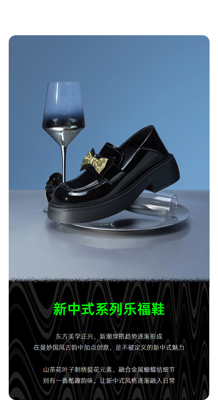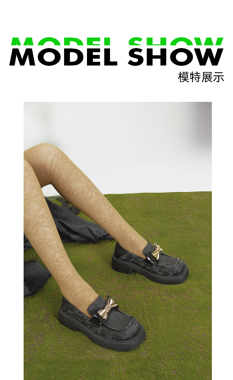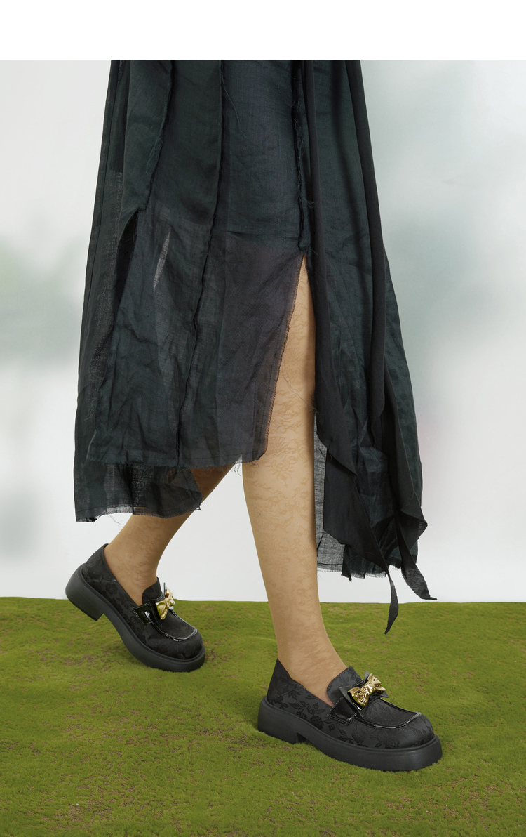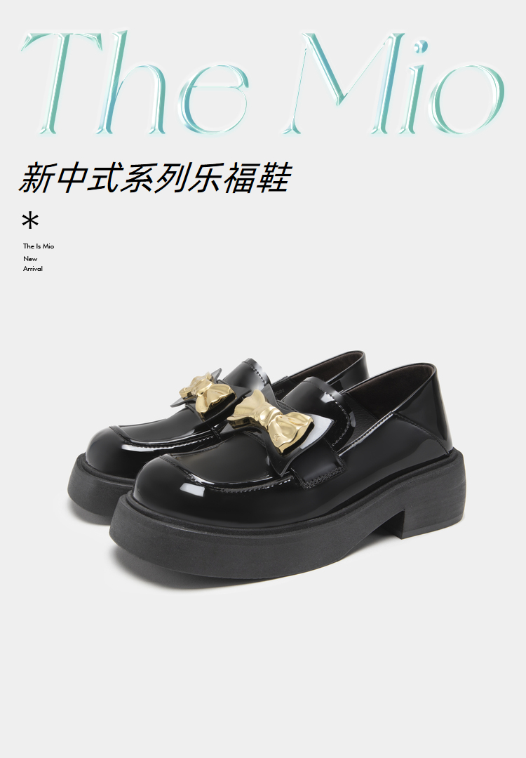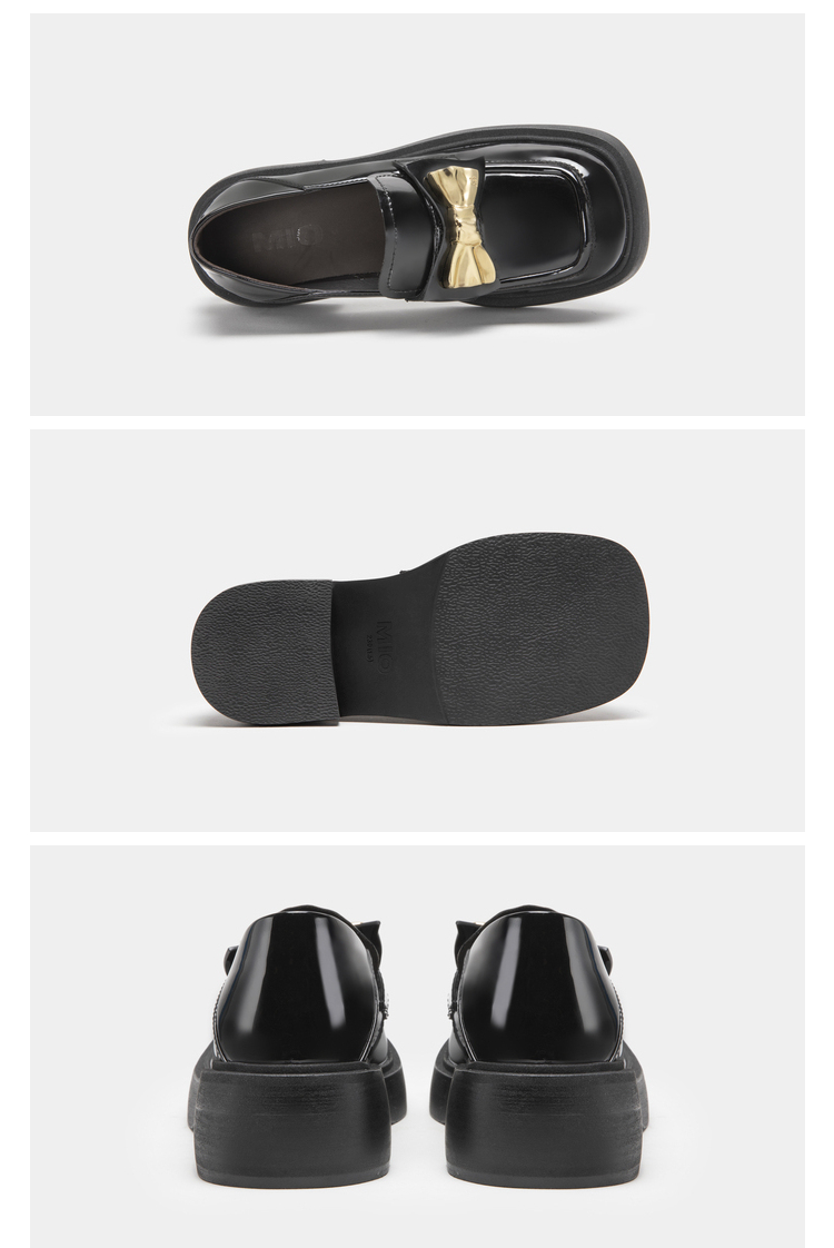 MIO米奥春季圆头粗跟单鞋复古风金属蝴蝶结饰扣一脚蹬乐福鞋女M231427309