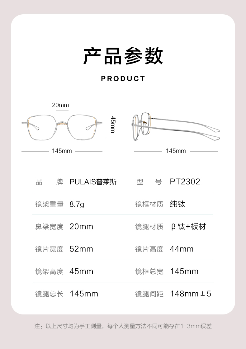普莱斯PJ5021/PT5021 合金/B钛 素颜小心机 不化妆也好看多色可选