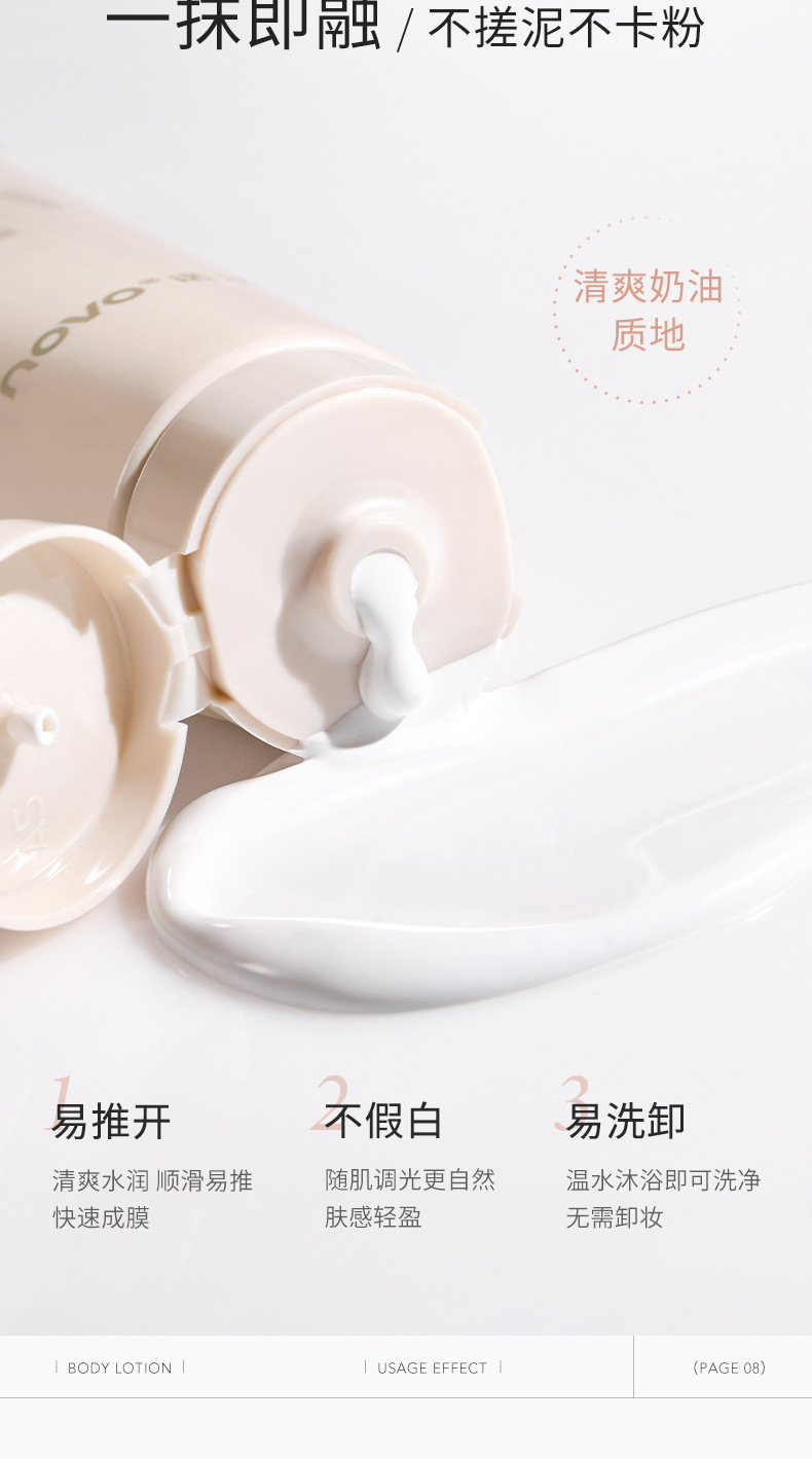 NOVO烟酰胺亮泽身体素颜霜 水润清爽保湿防水防汗不卡粉全身可用