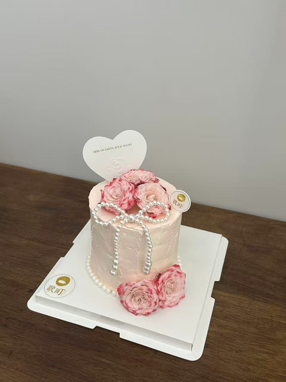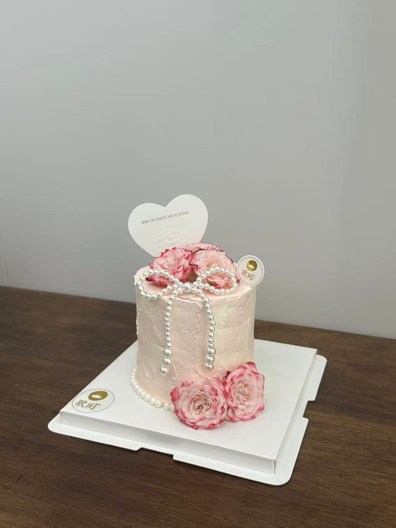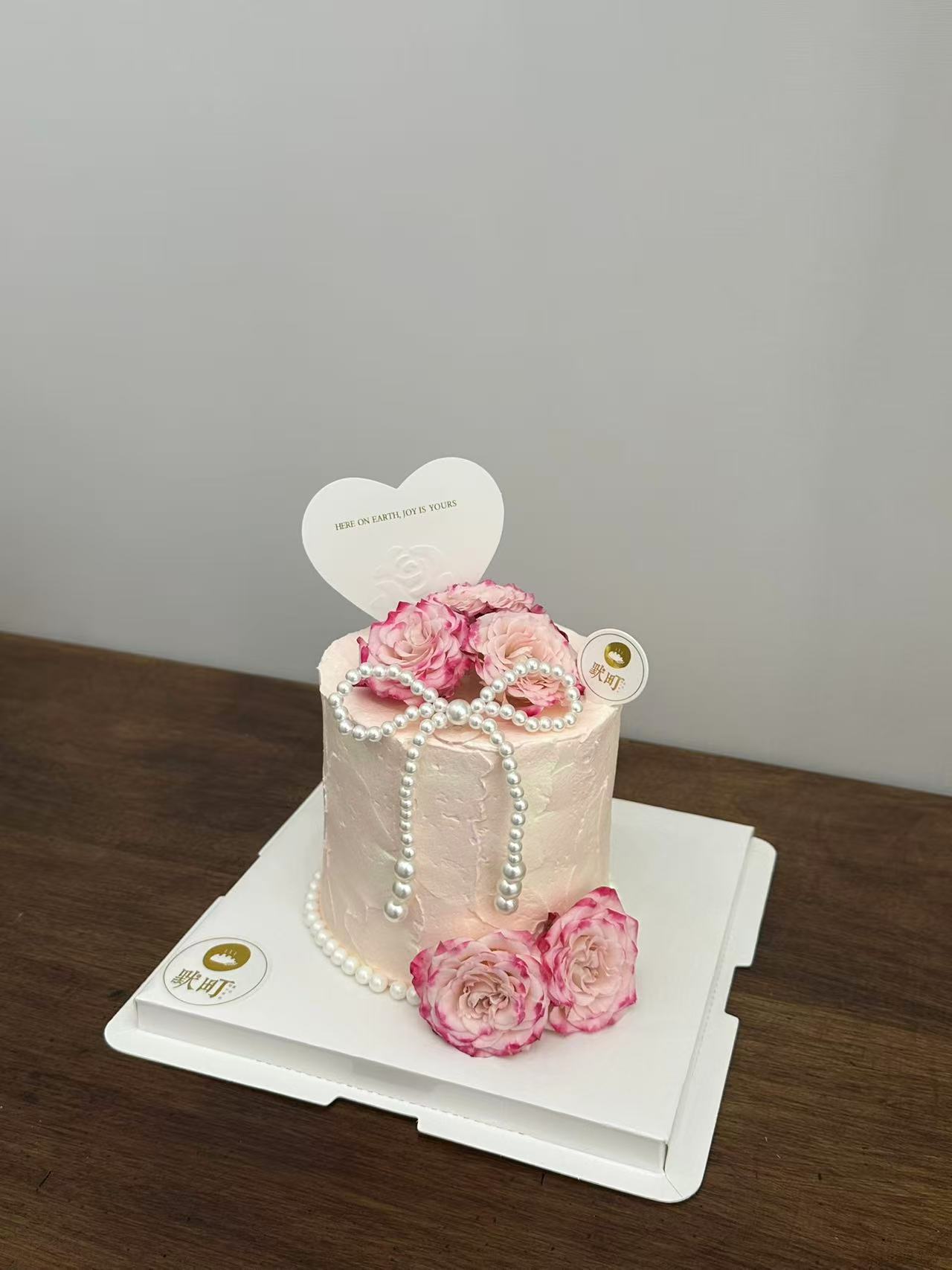 珍珠玫瑰+珍珠蝴蝶结小蛋糕