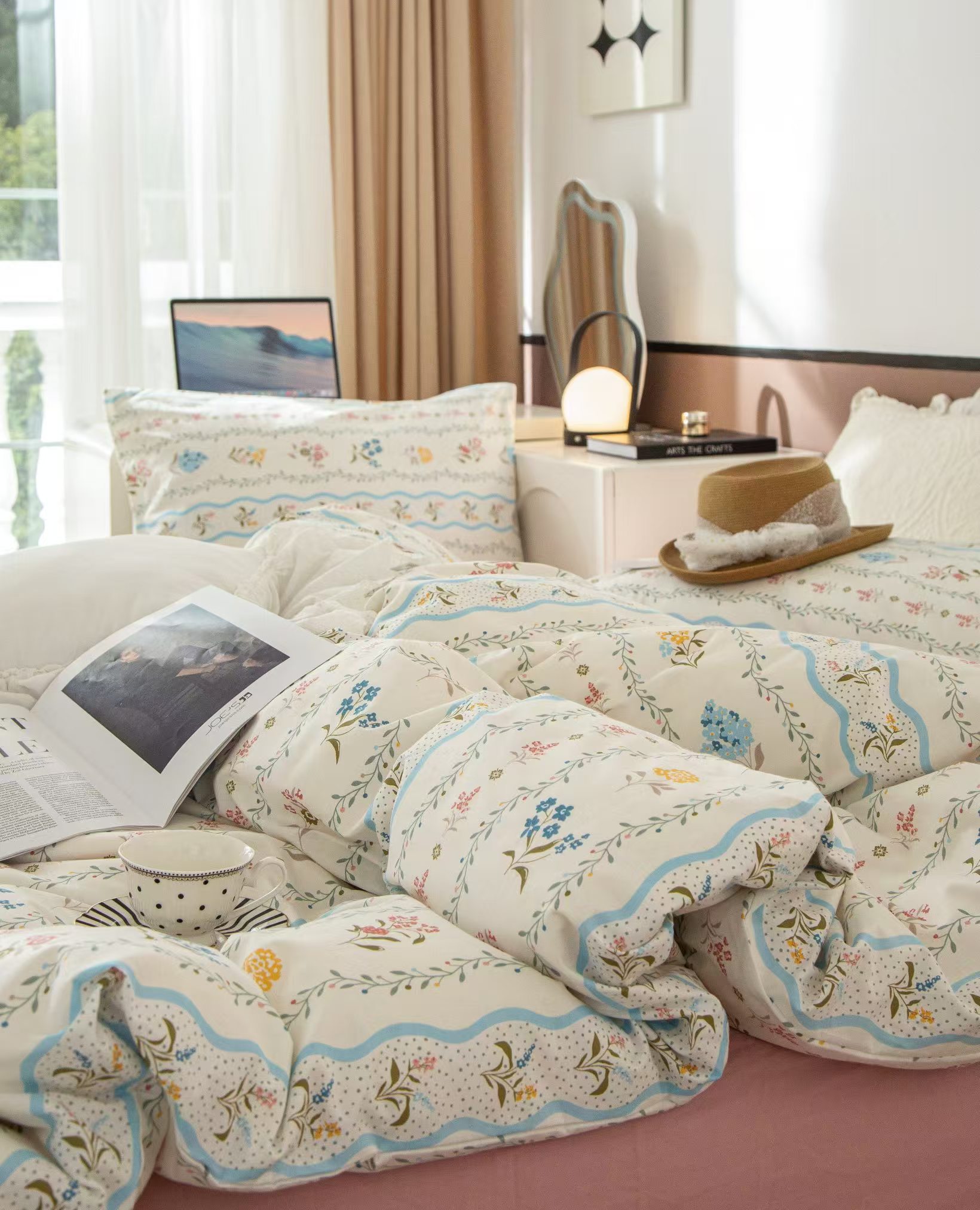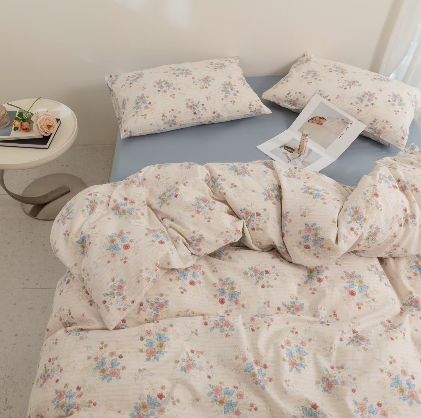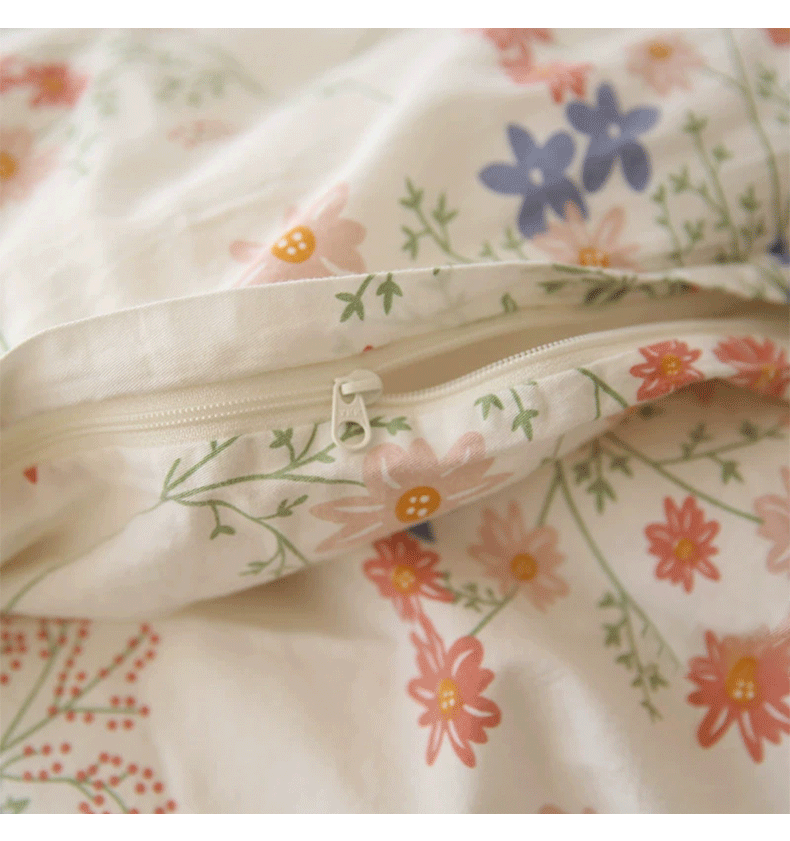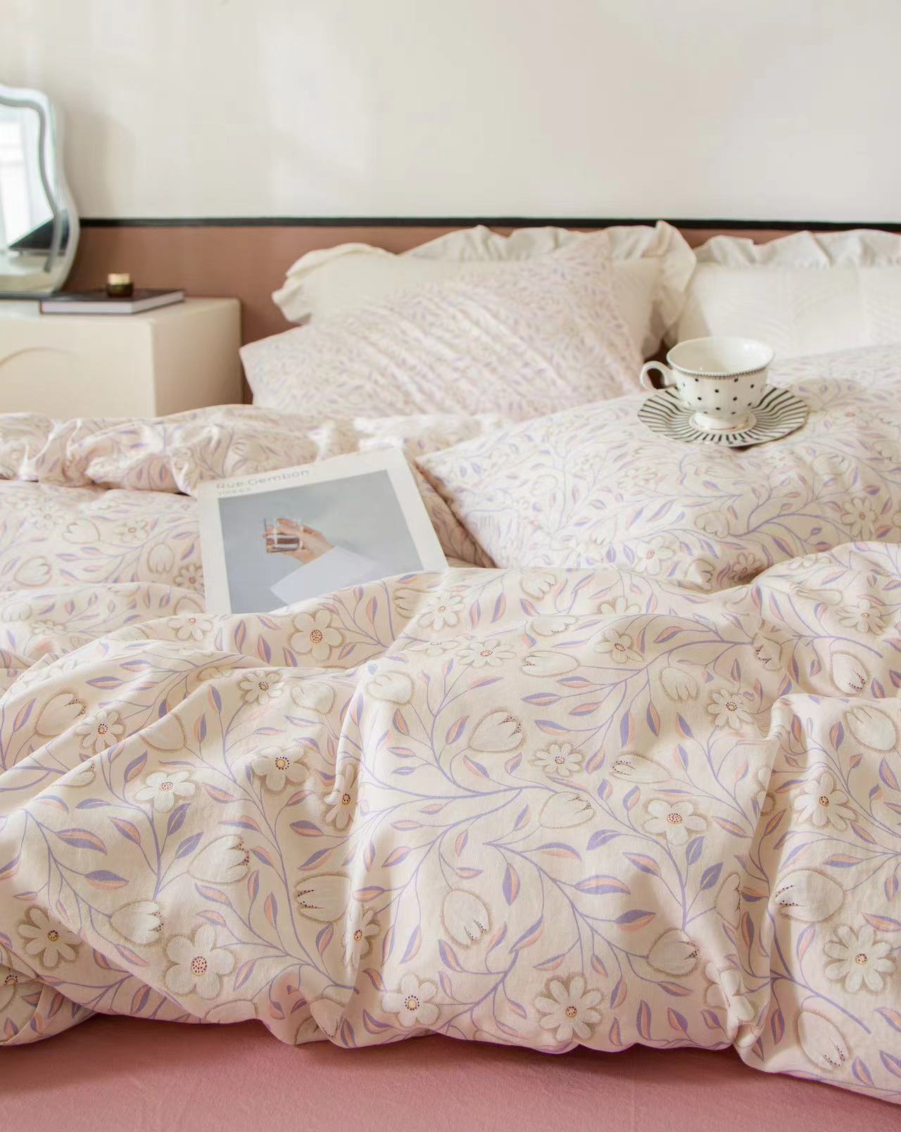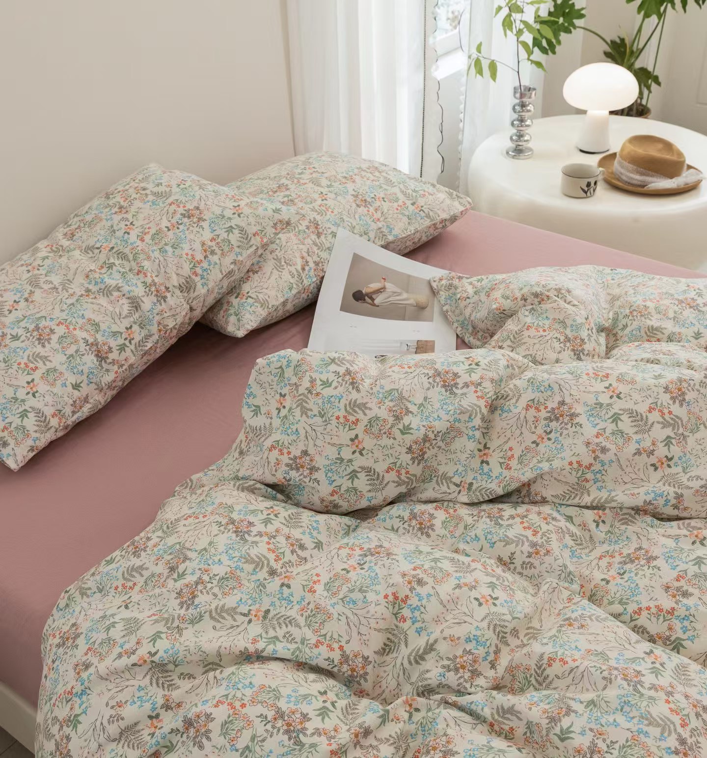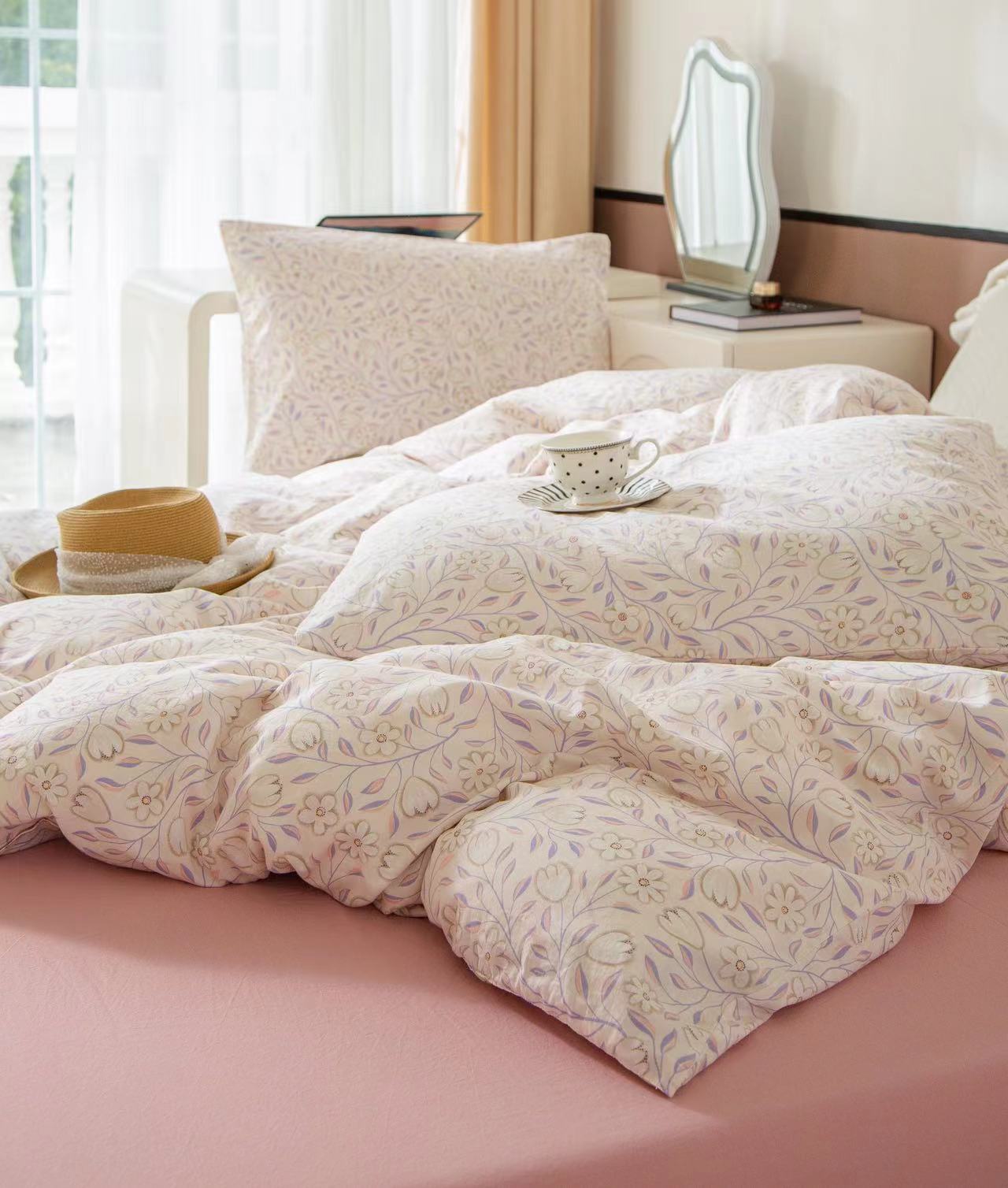 【 超柔水洗棉四件套】亲肤柔软 百分百纯棉 小清新田园印花 抽绳独立包装布袋