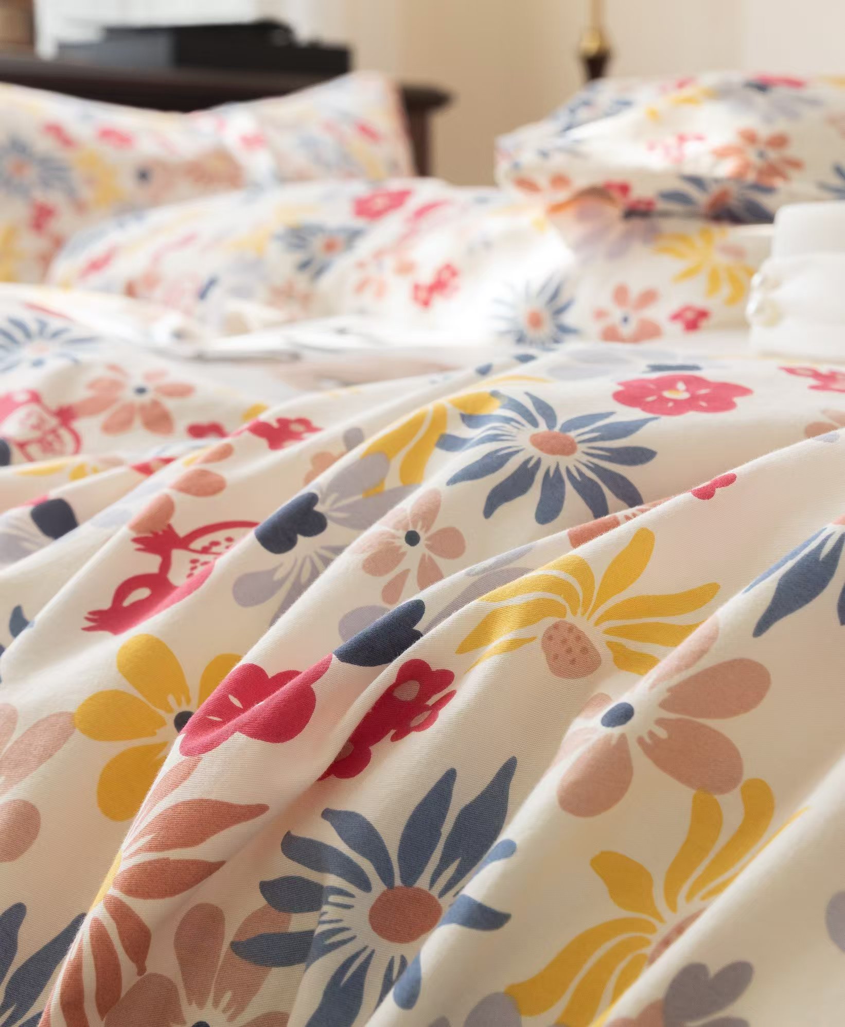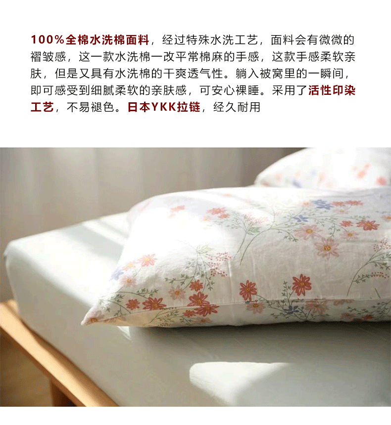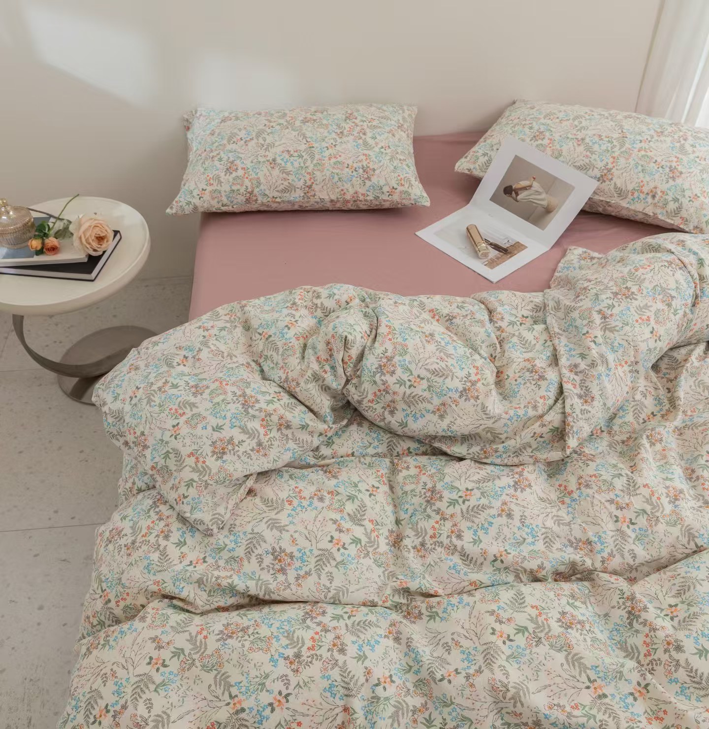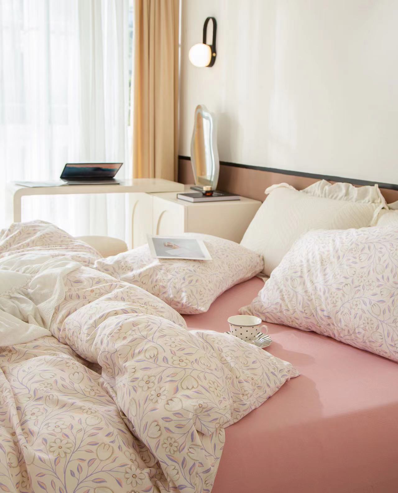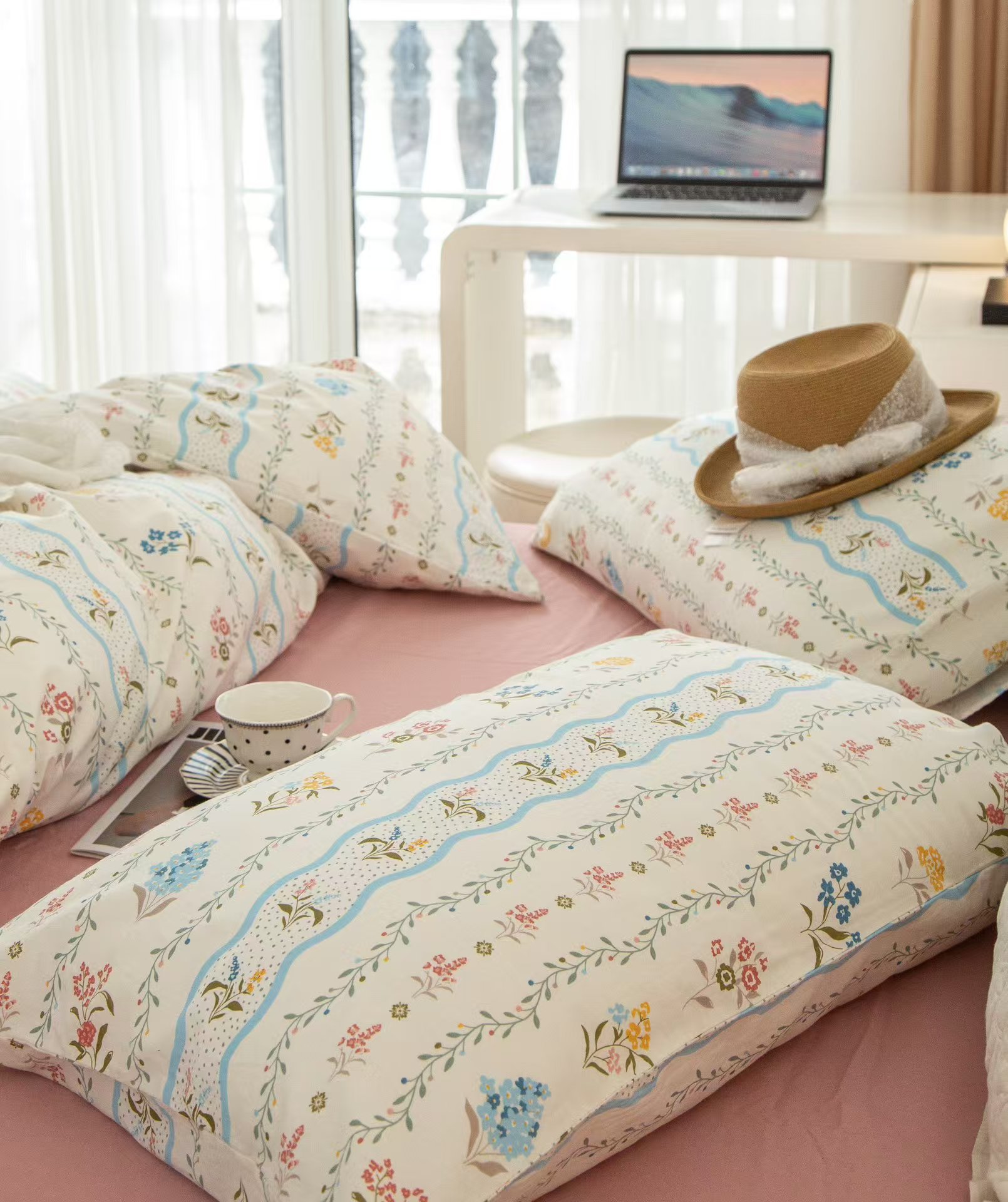 【 超柔水洗棉四件套】亲肤柔软 百分百纯棉 小清新田园印花 抽绳独立包装布袋
