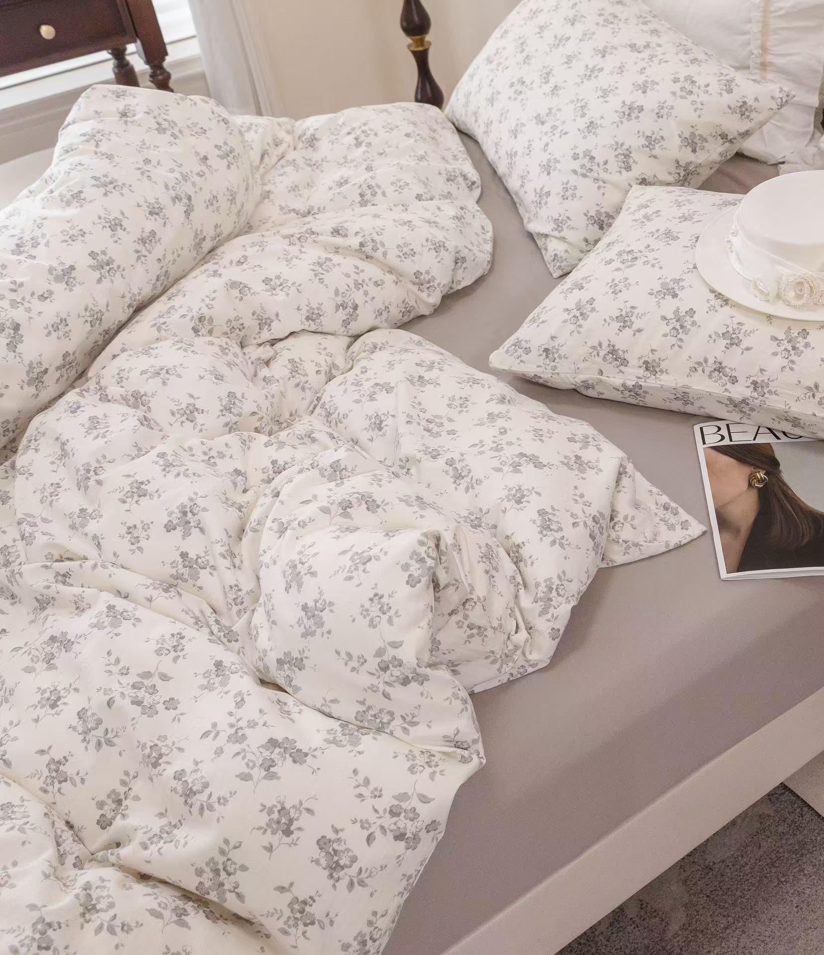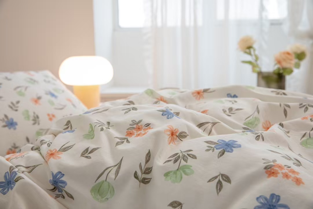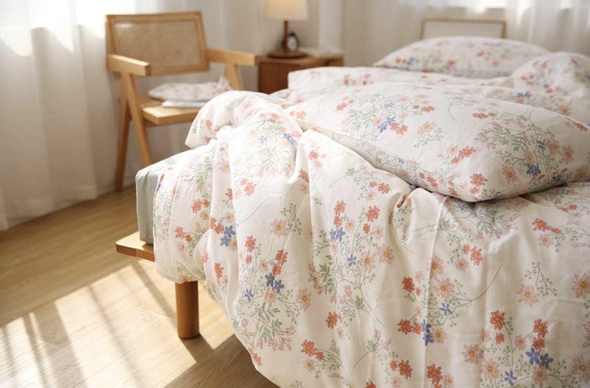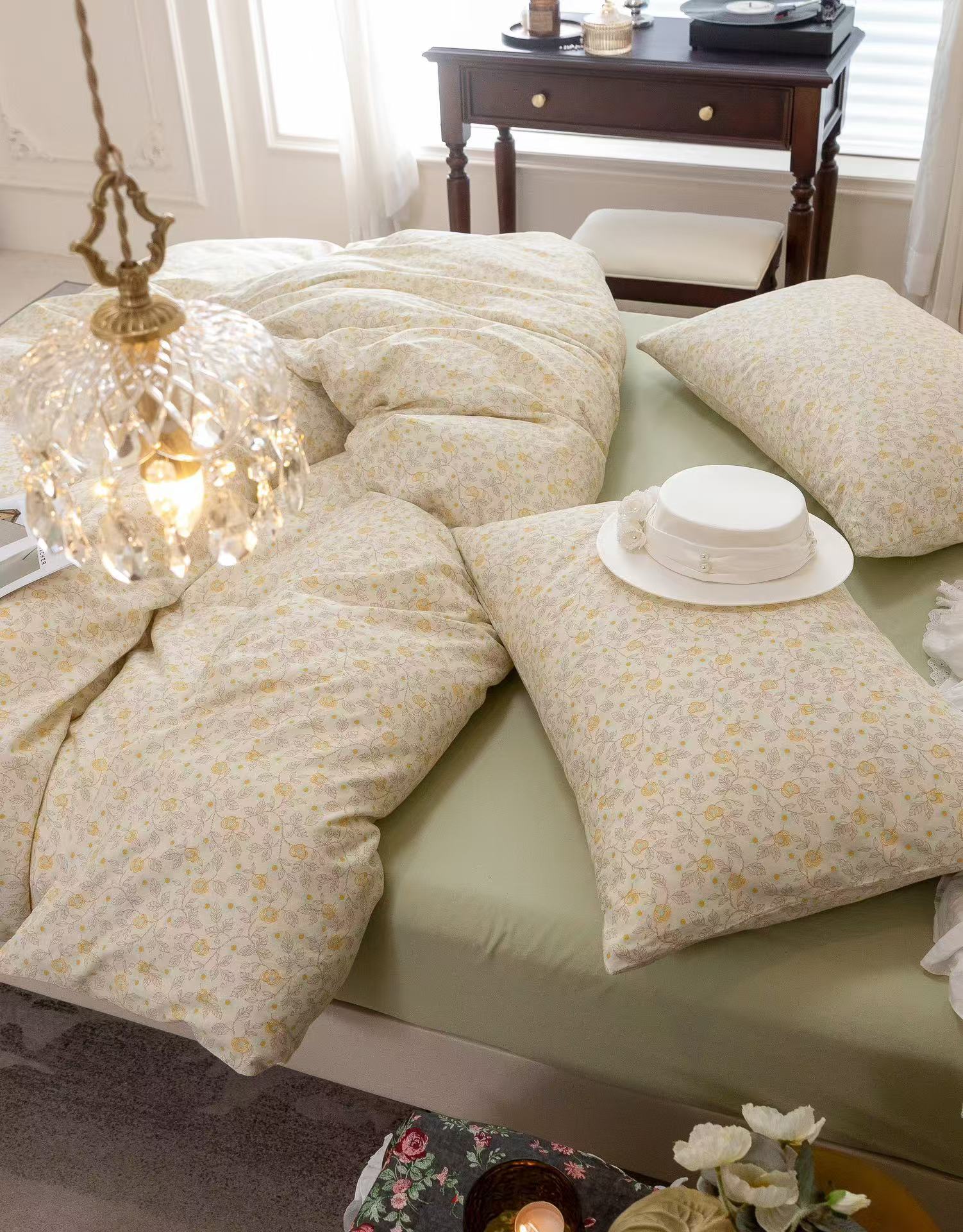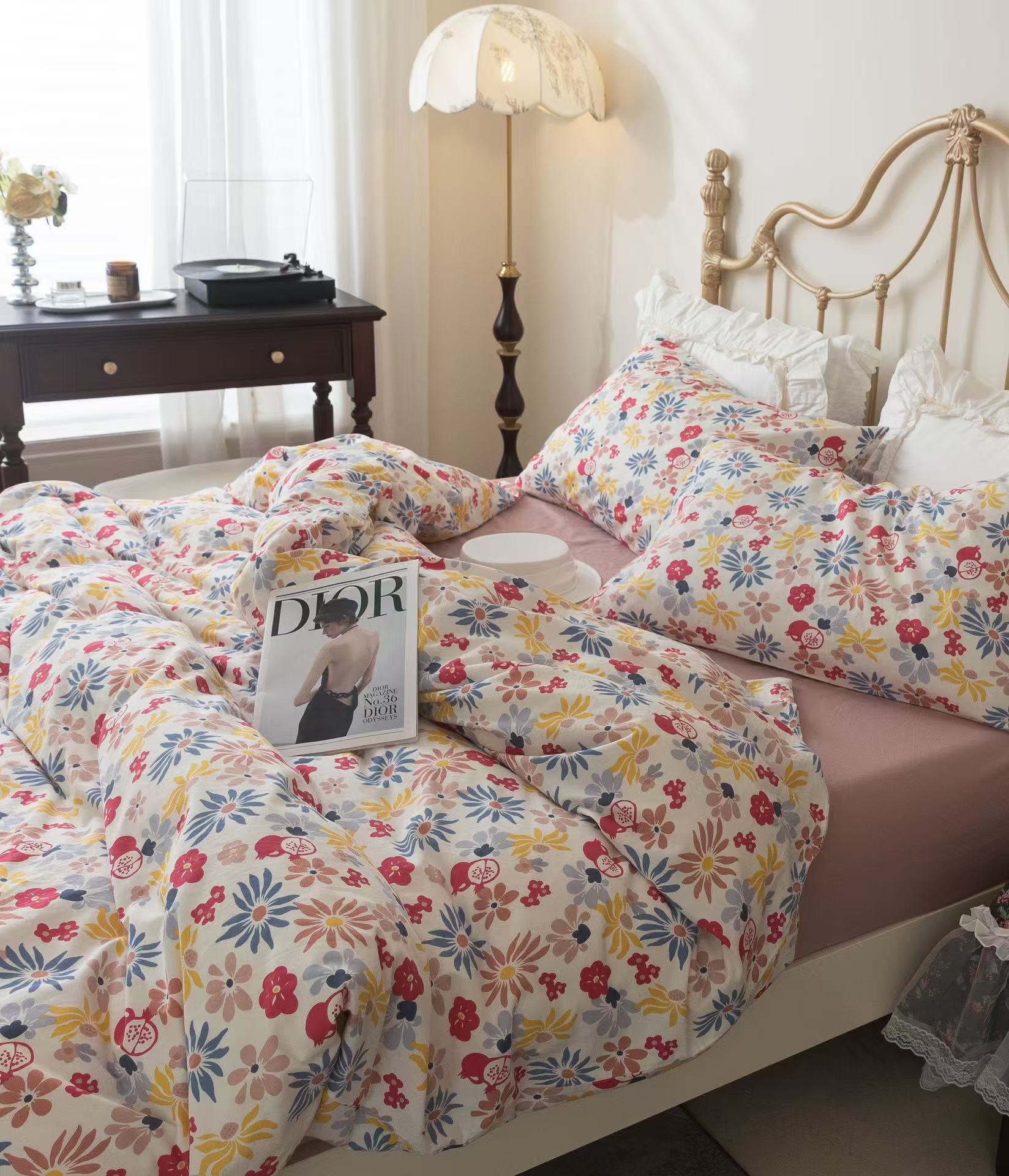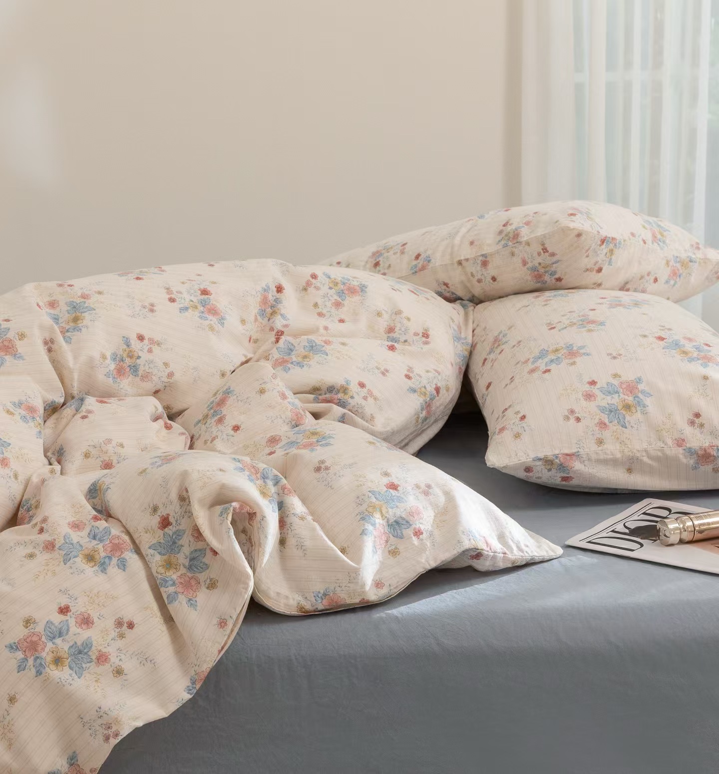 【 超柔水洗棉四件套】亲肤柔软 百分百纯棉 小清新田园印花 抽绳独立包装布袋