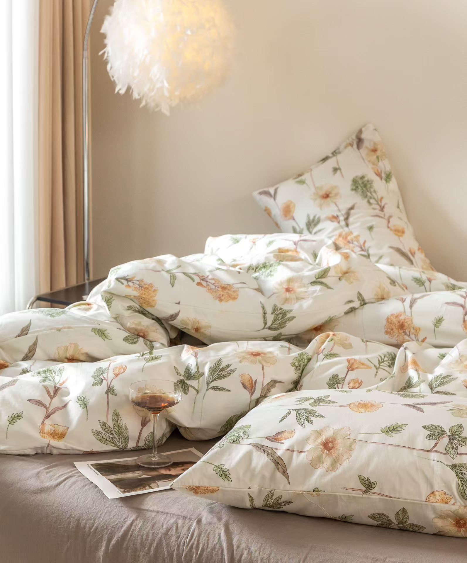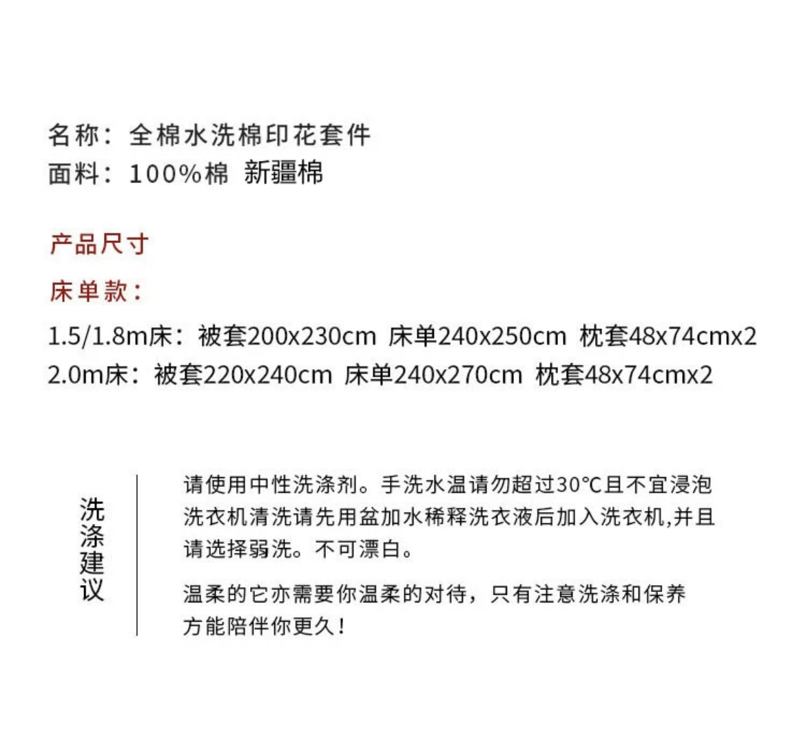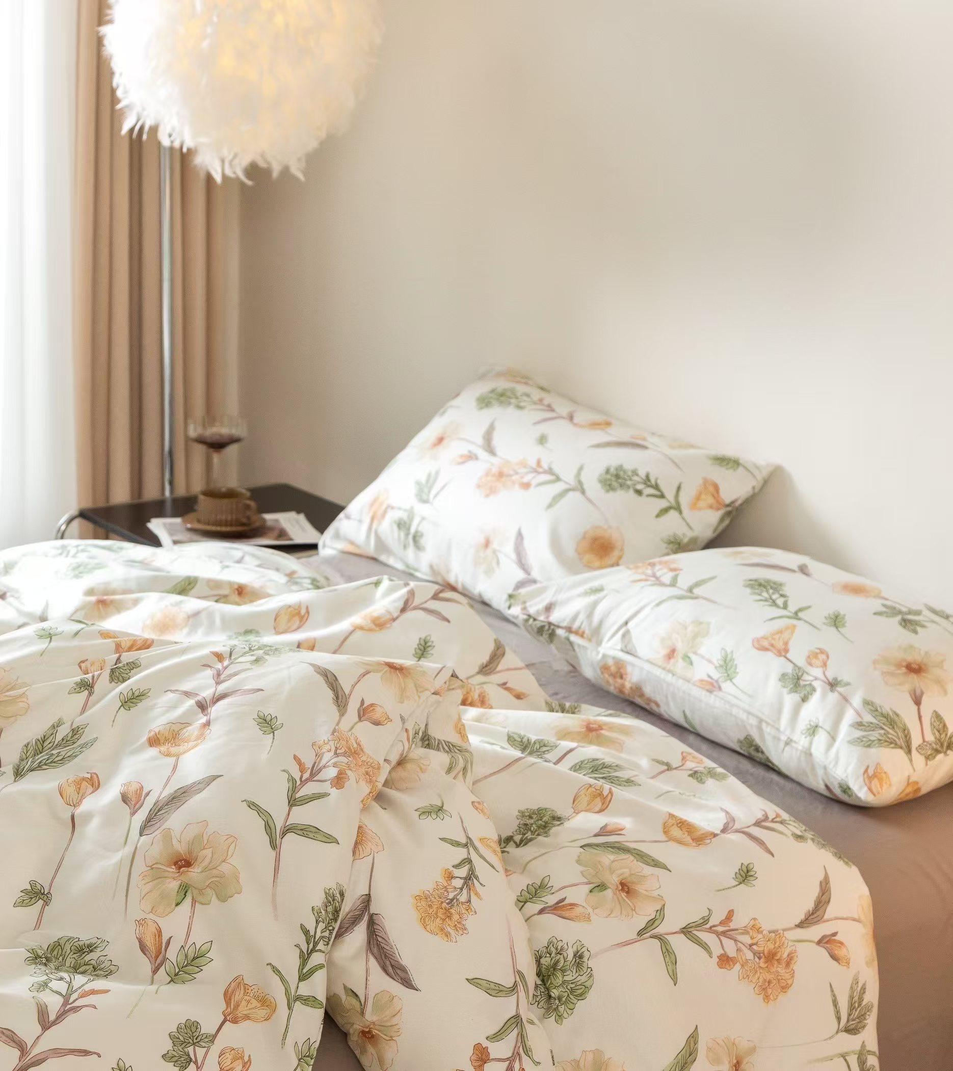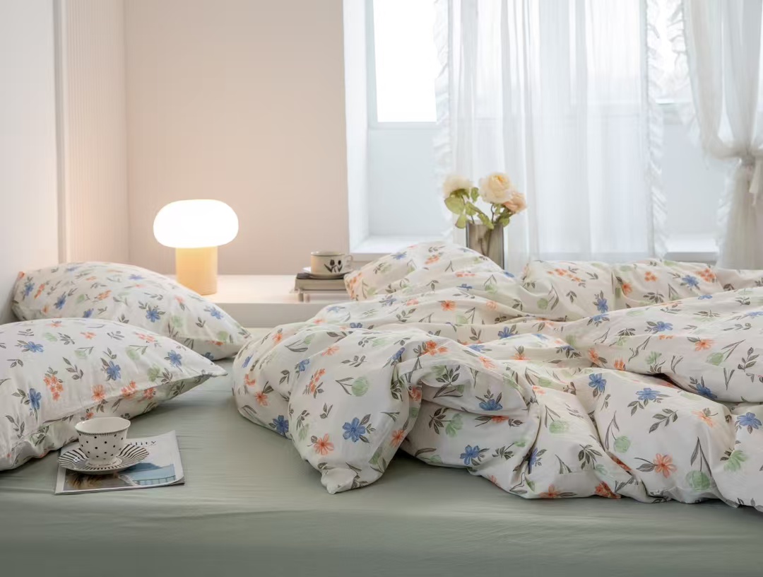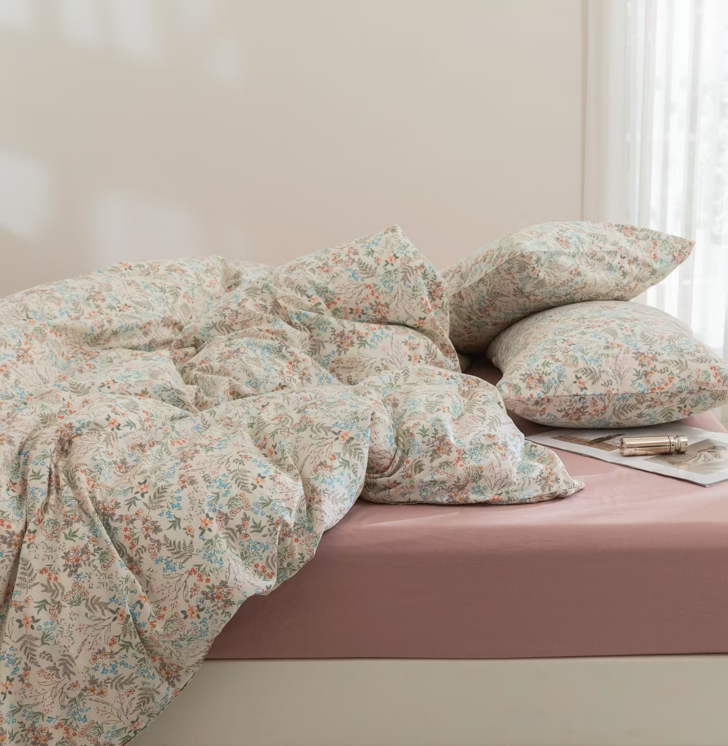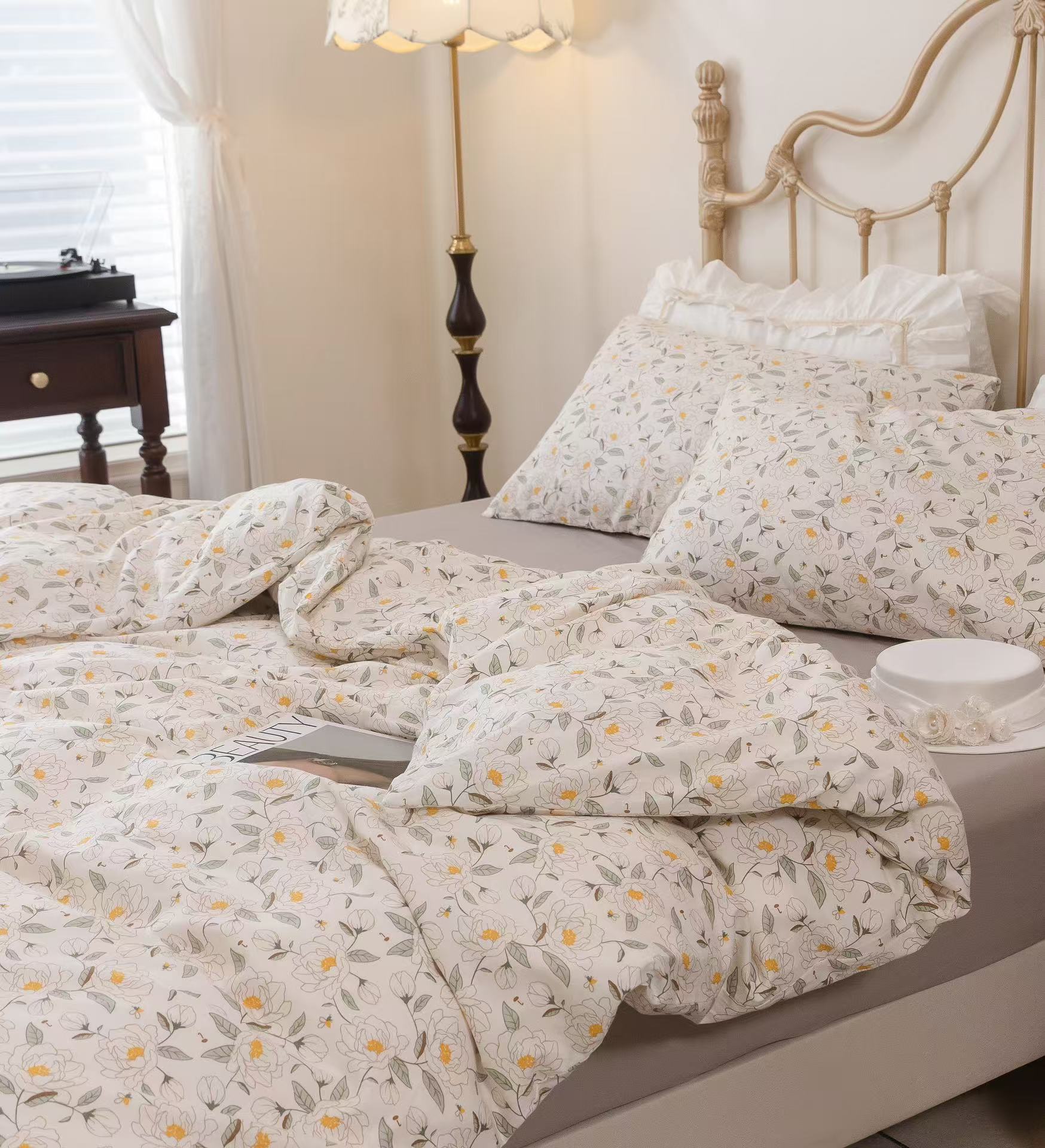 【 超柔水洗棉四件套】亲肤柔软 百分百纯棉 小清新田园印花 抽绳独立包装布袋