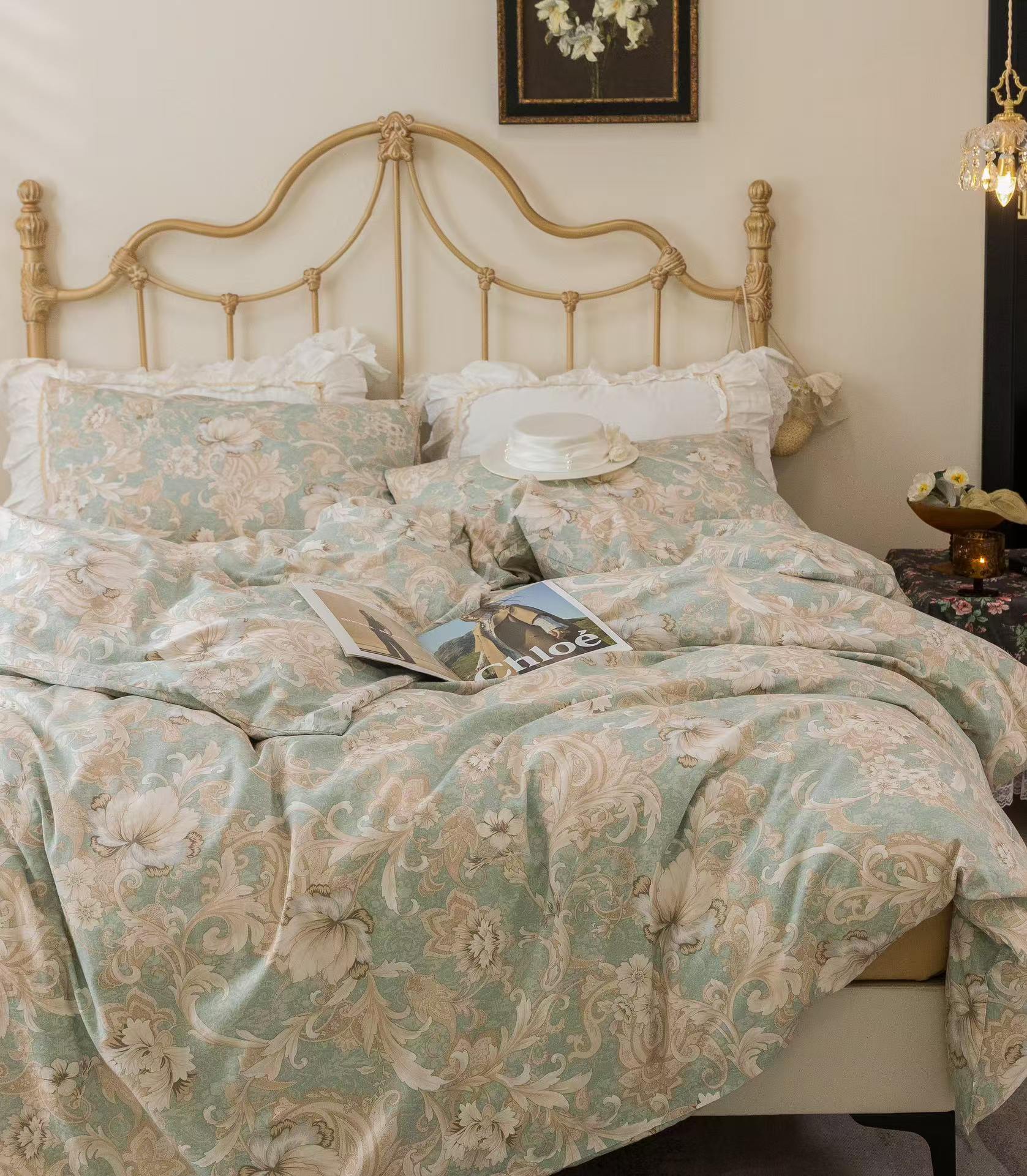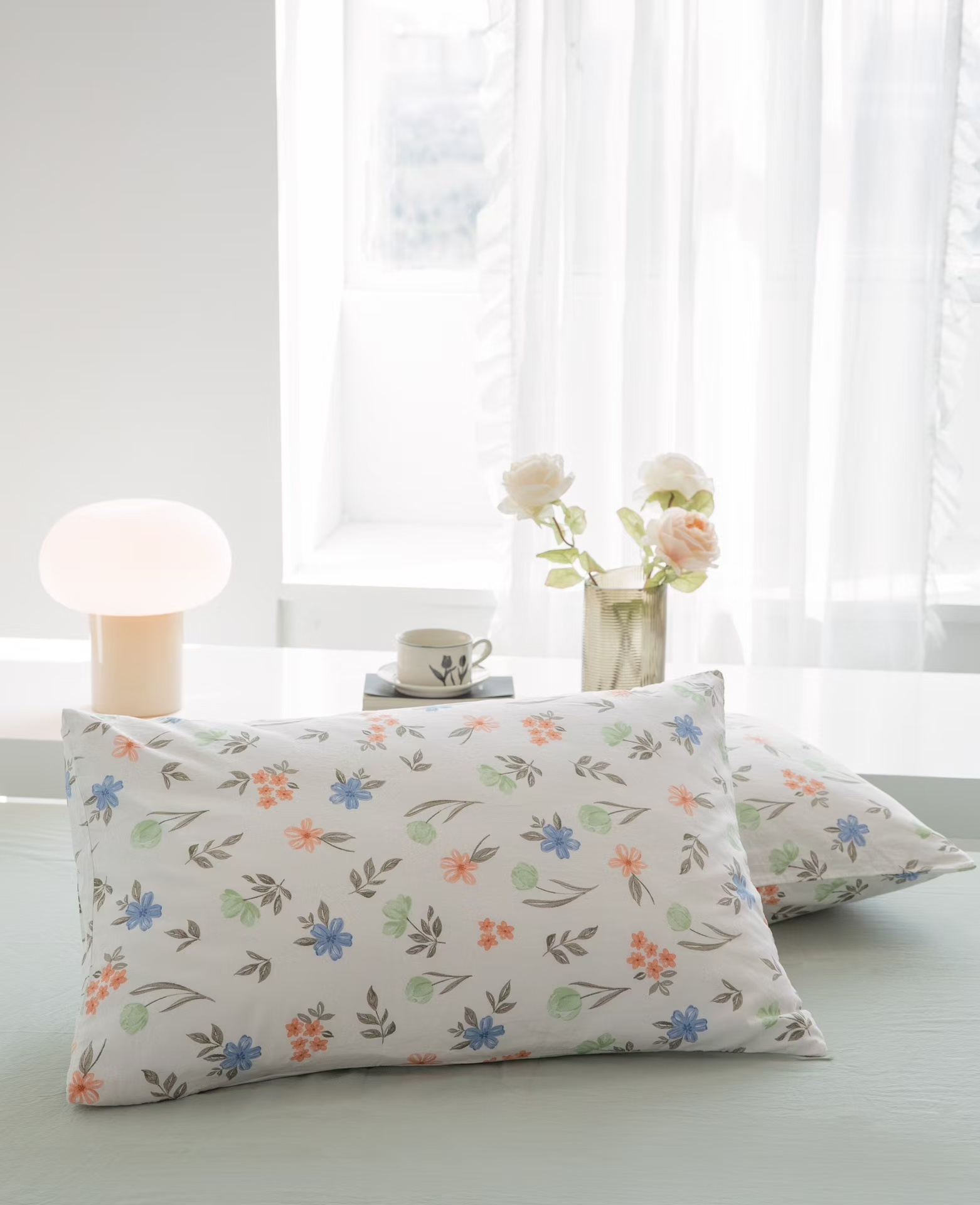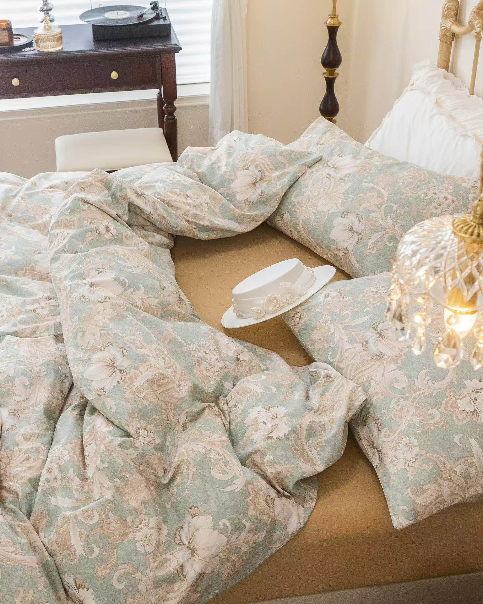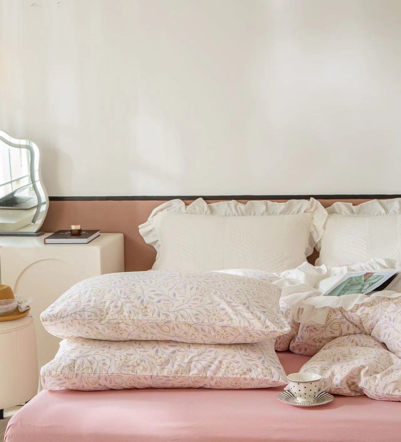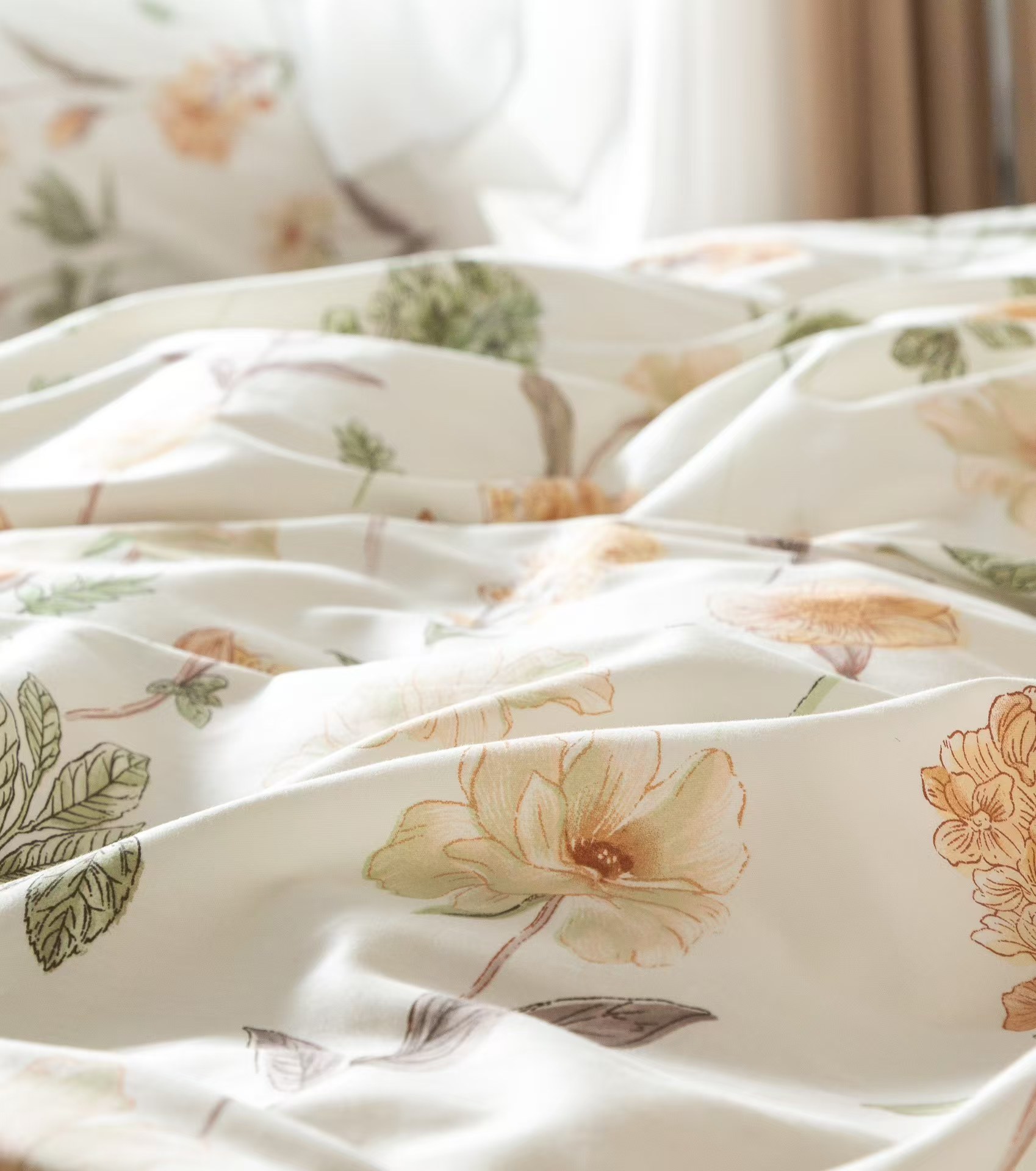 【 超柔水洗棉四件套】亲肤柔软 百分百纯棉 小清新田园印花 抽绳独立包装布袋