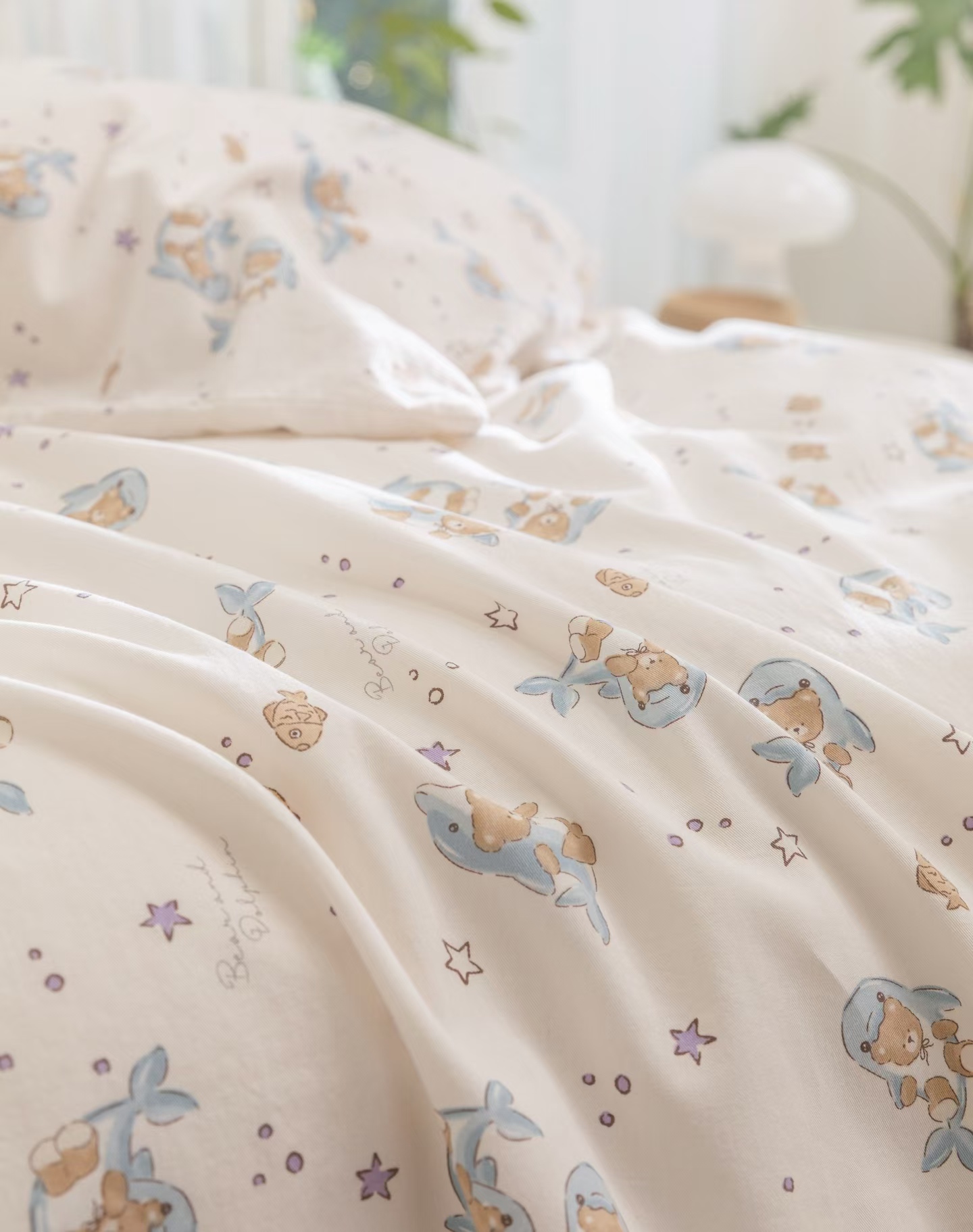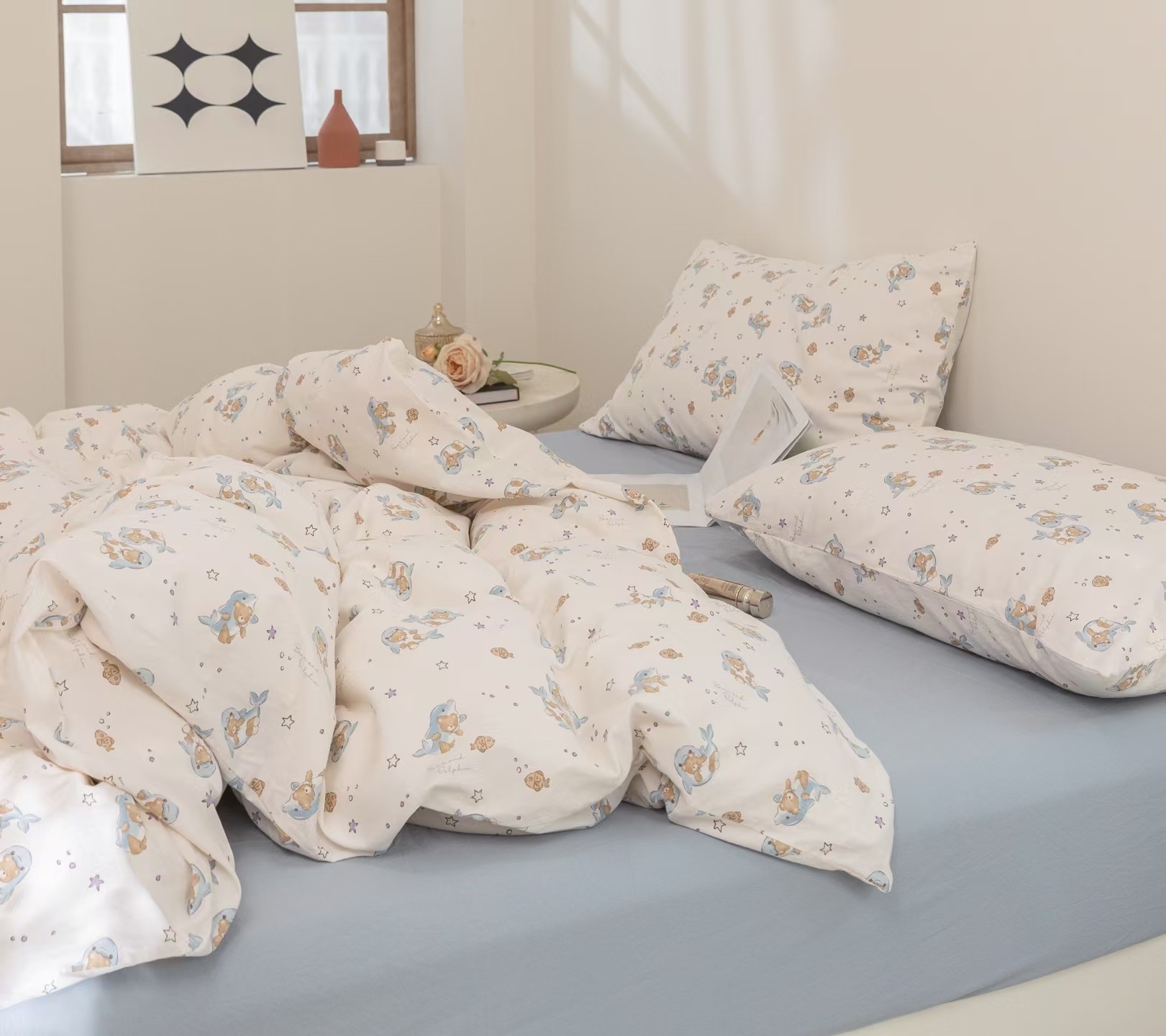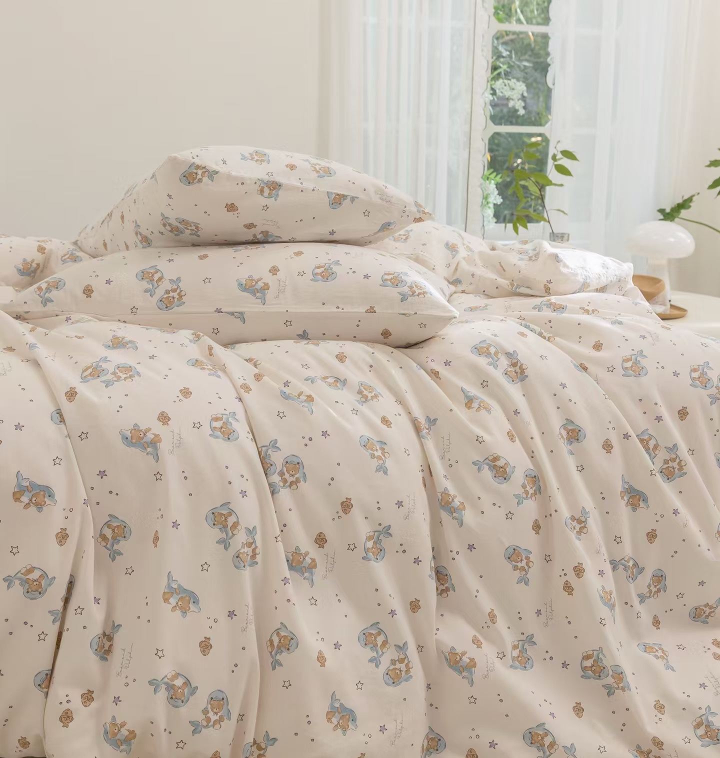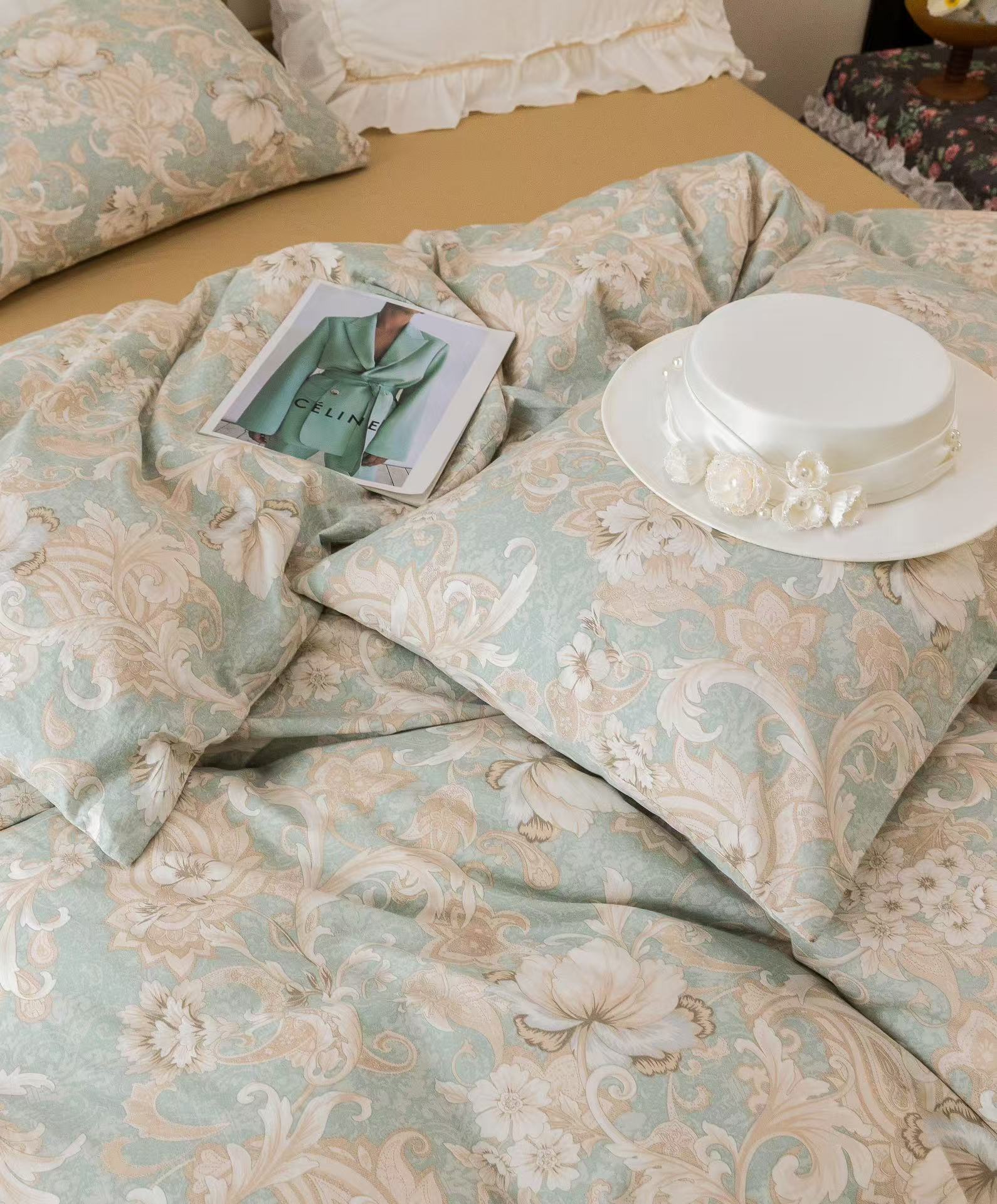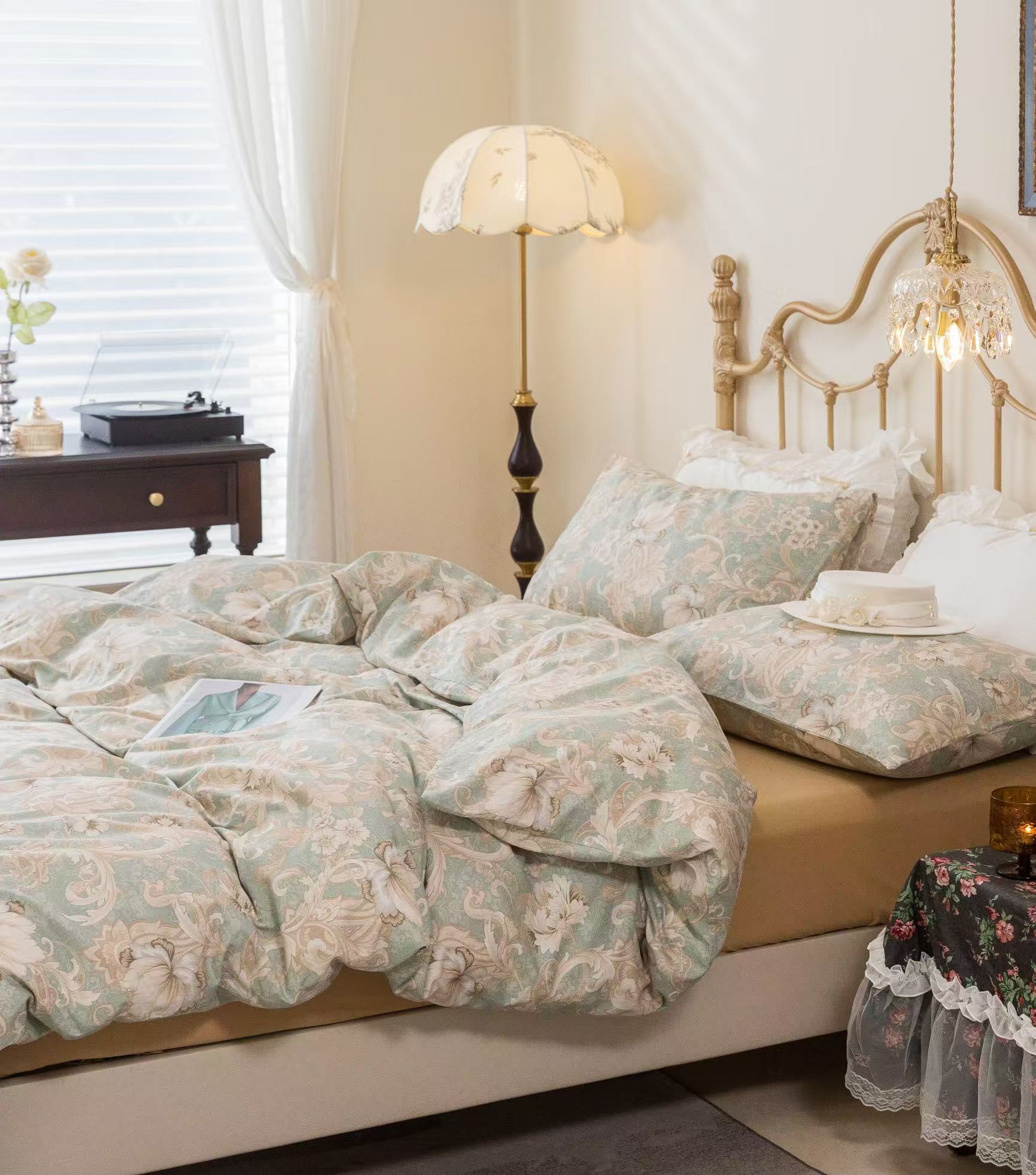 【 超柔水洗棉四件套】亲肤柔软 百分百纯棉 小清新田园印花 抽绳独立包装布袋