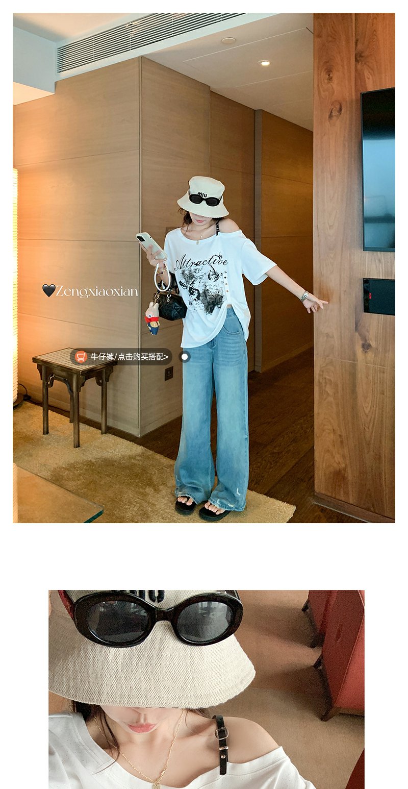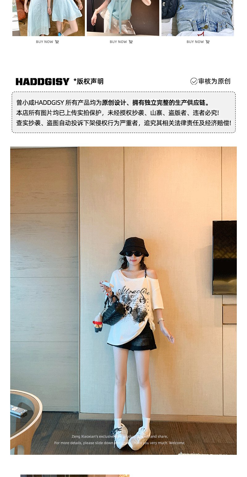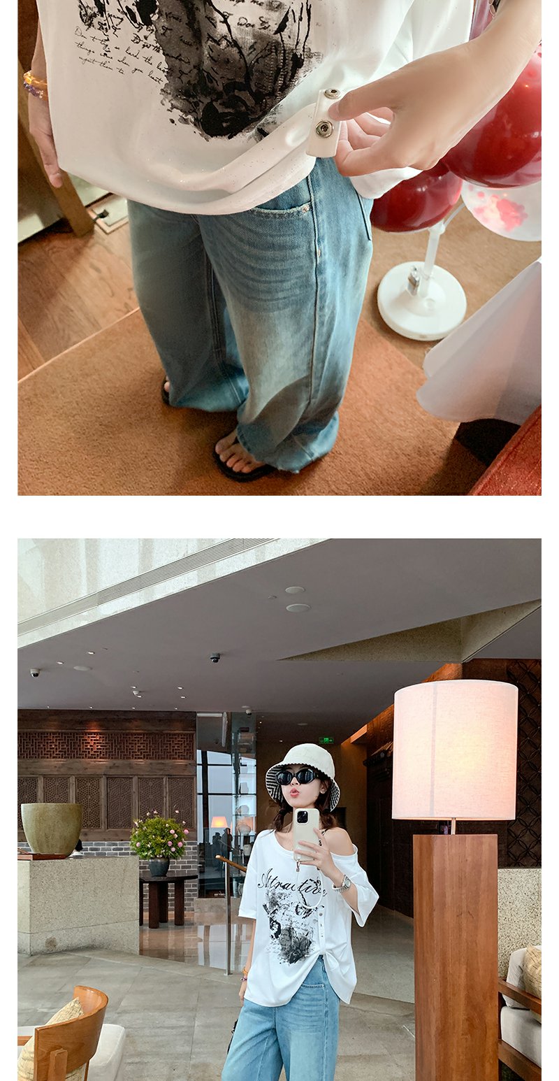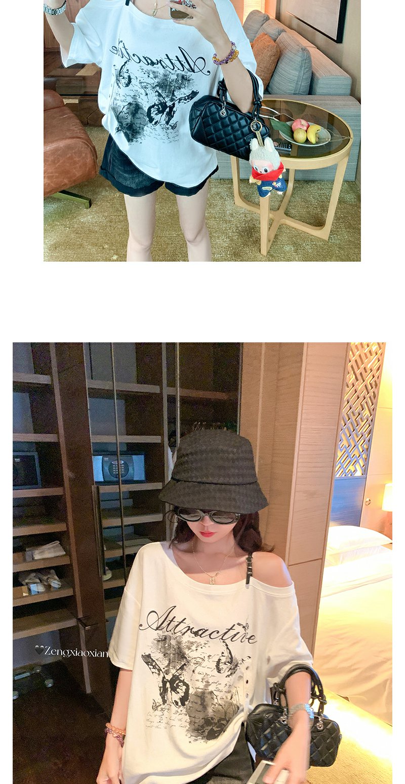<曾小咸推荐>水墨画蝴蝶设计印花斜领短袖T恤