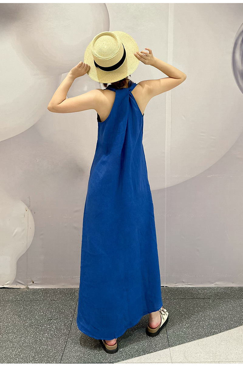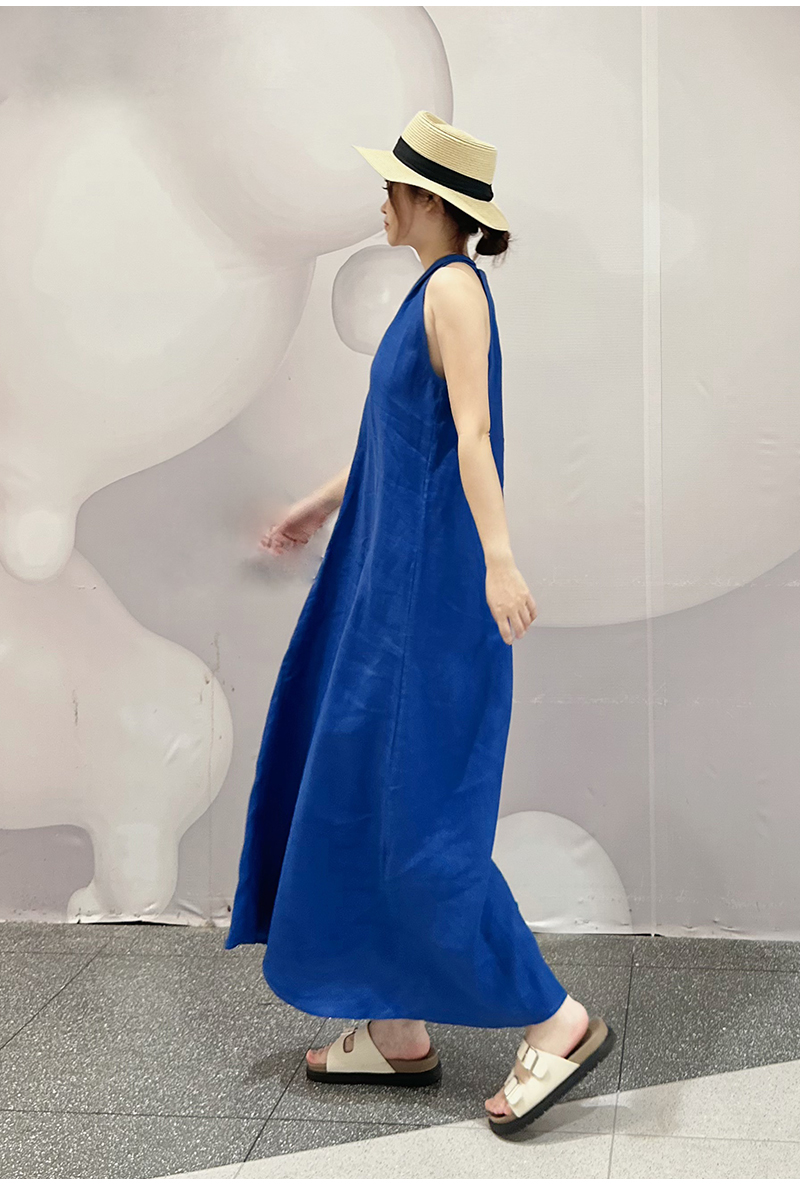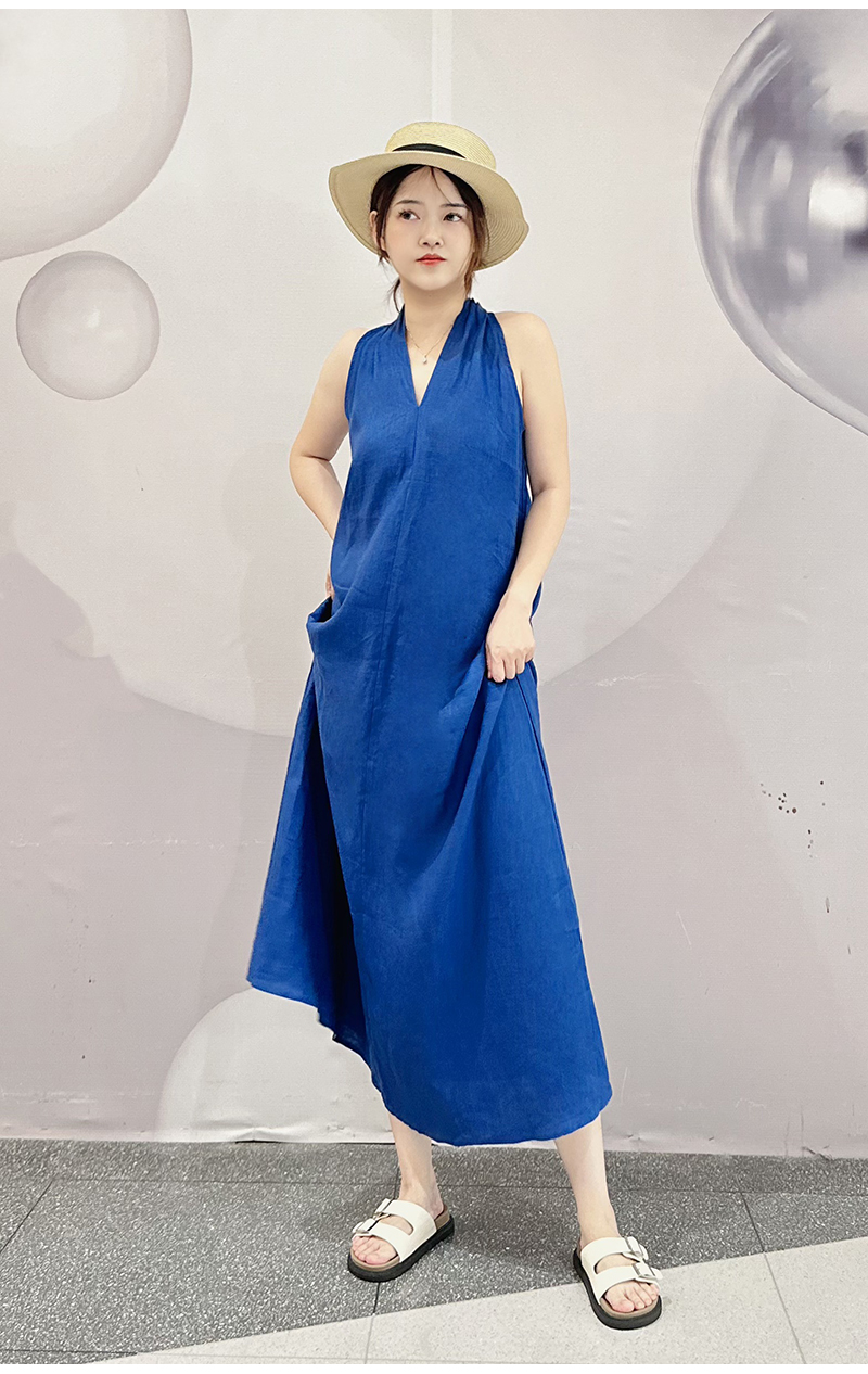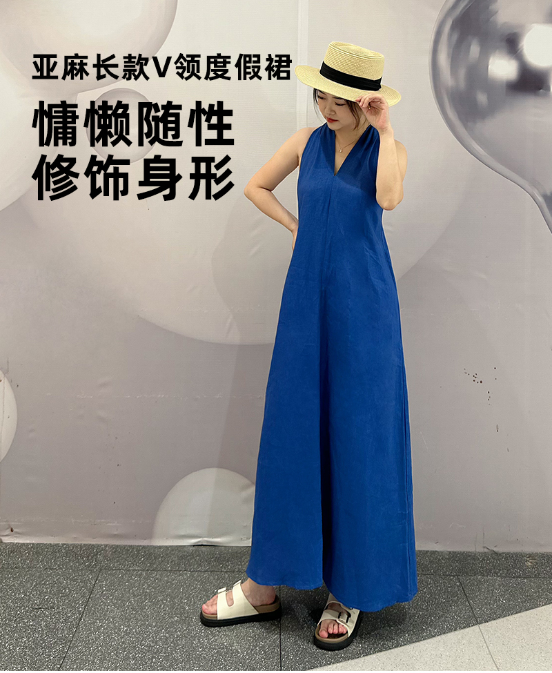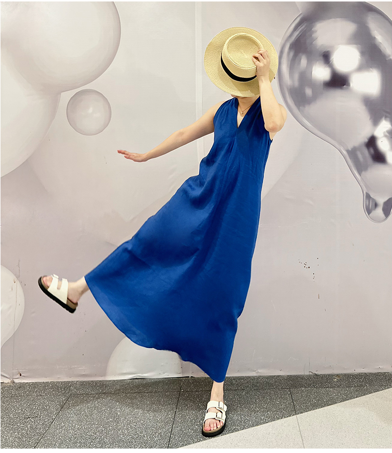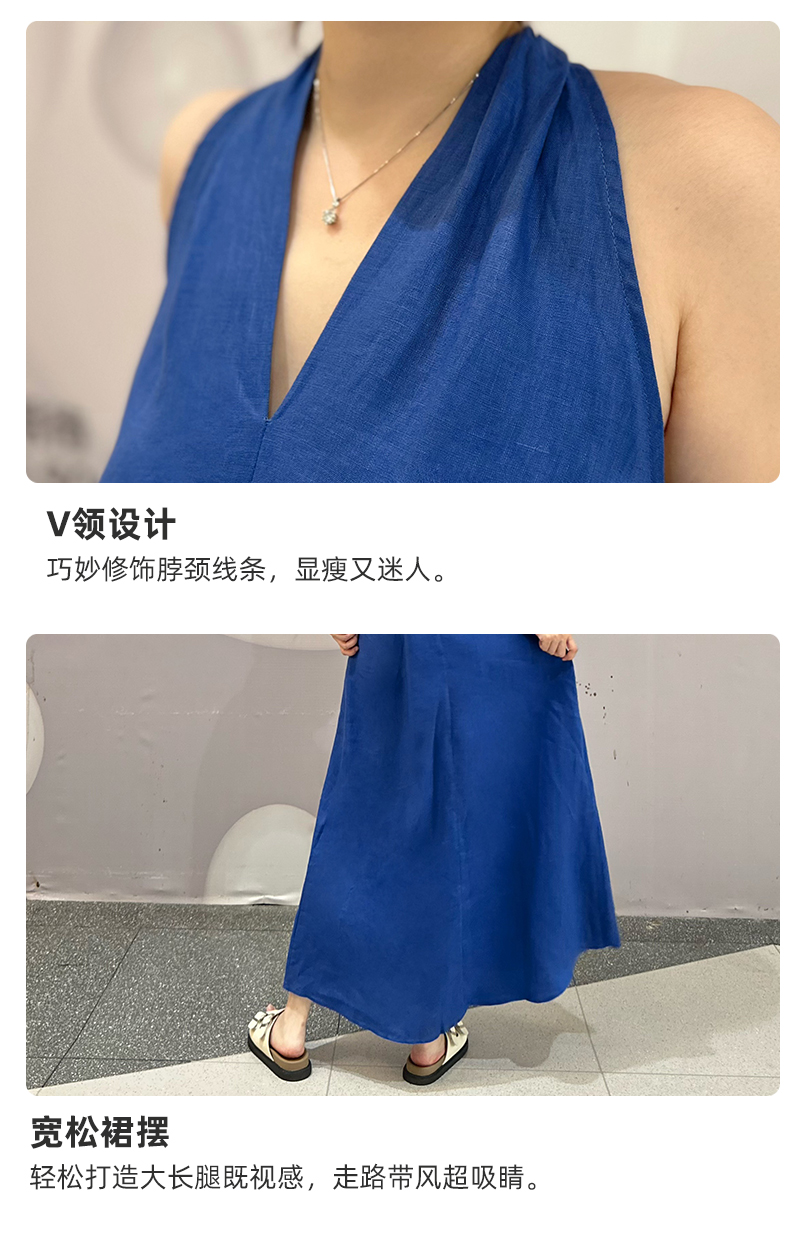 壁虎瑜伽【2507QZ385】亚麻长款V领度假裙【5天发货】