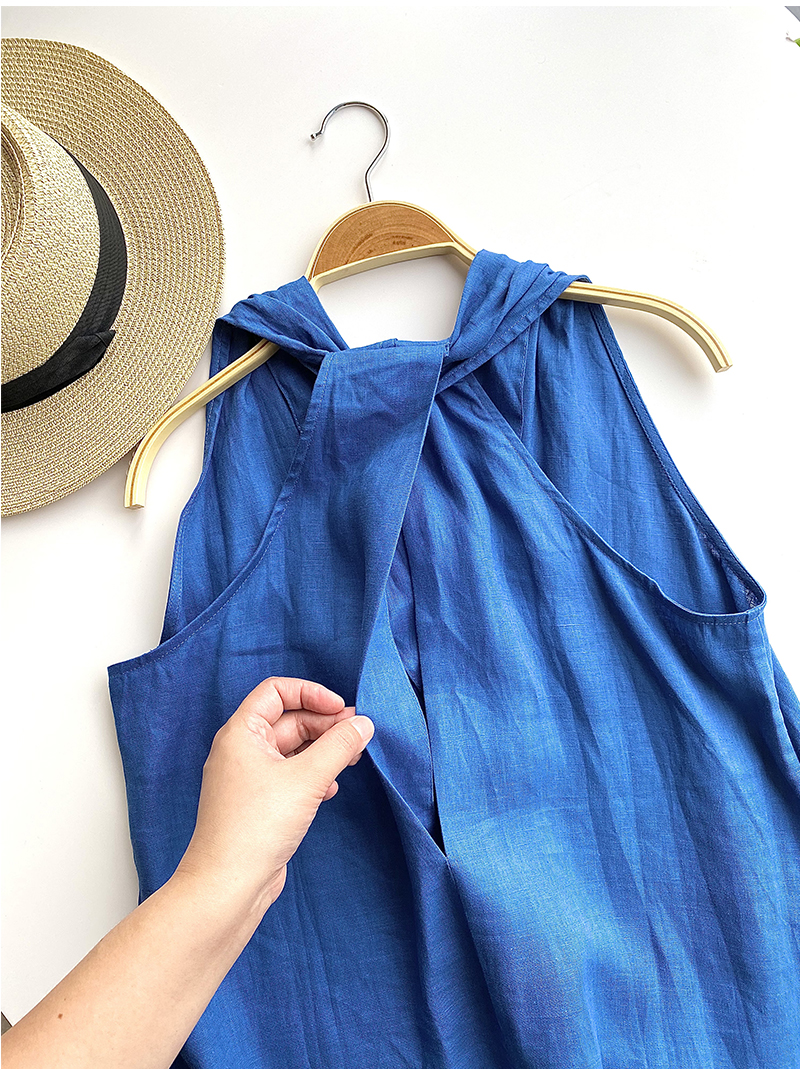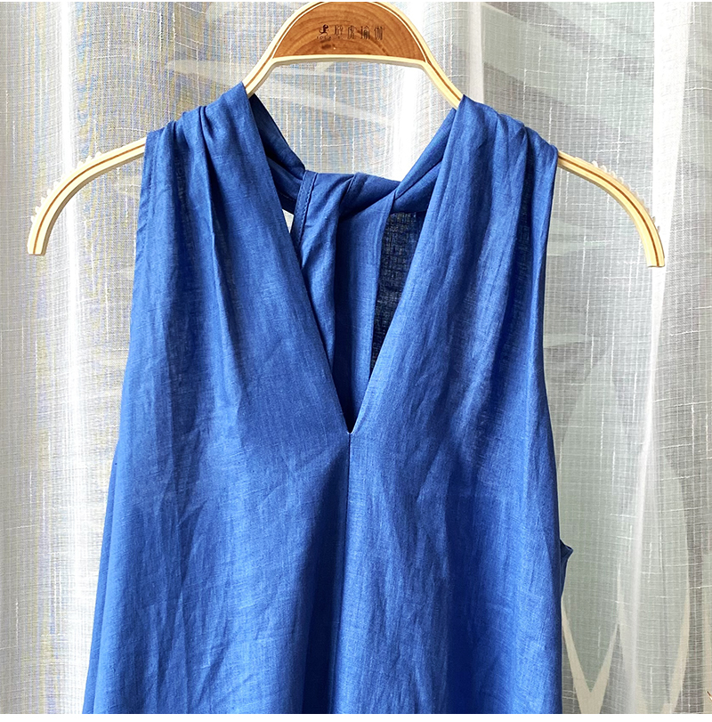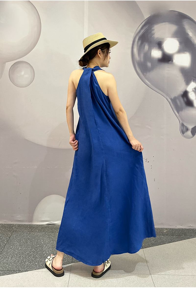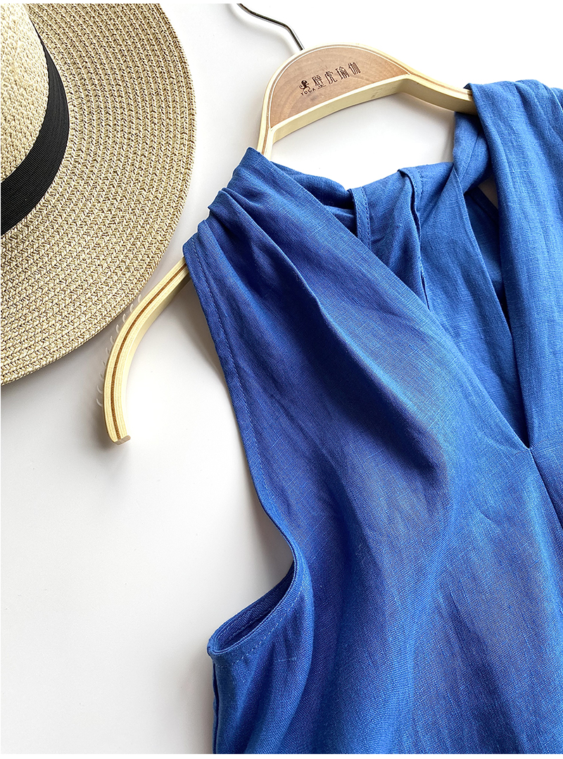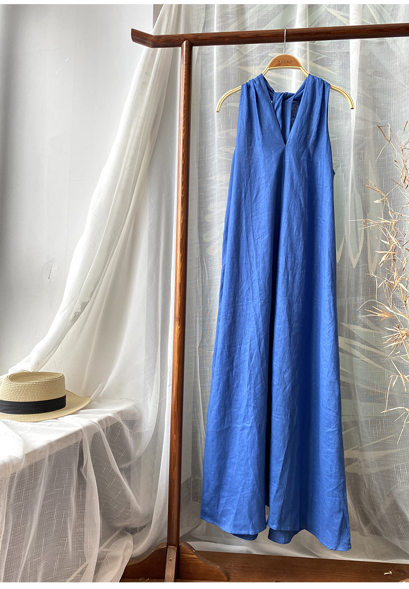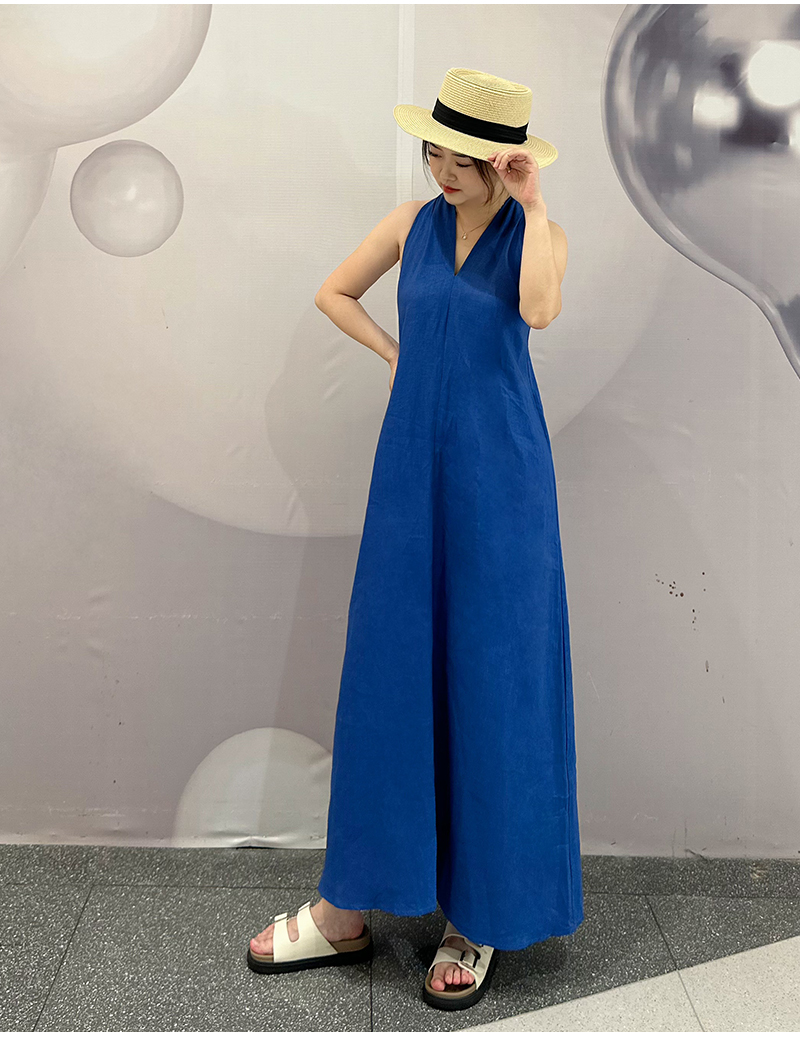 壁虎瑜伽【2507QZ385】亚麻长款V领度假裙【5天发货】
