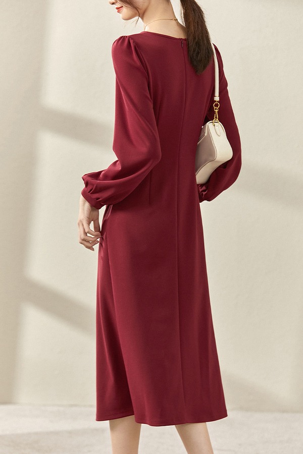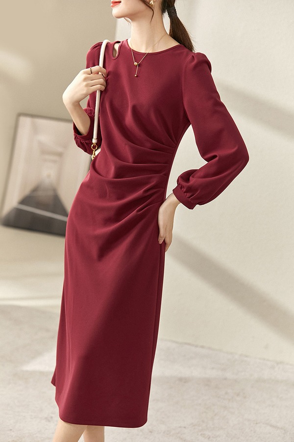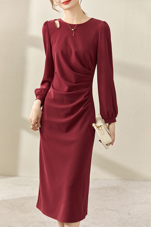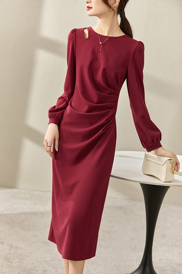 SENTUBILA尚都比拉 肩部镂空优雅褶皱连衣裙 19009
