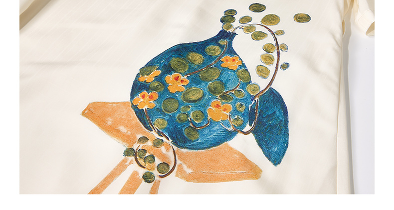 两三事月移花影夏季新款复古印花绑带长袖衬衫女宽松衬衣