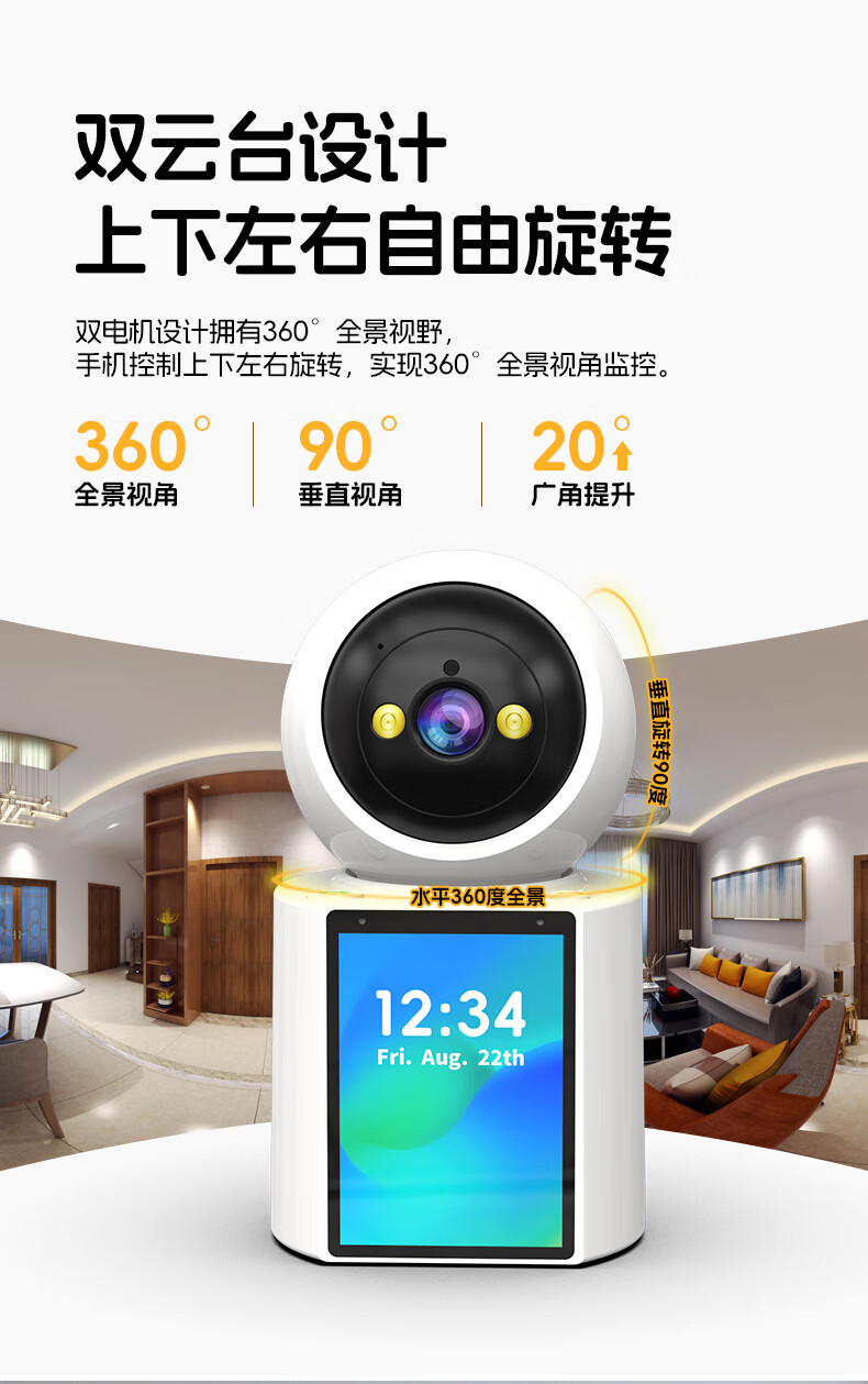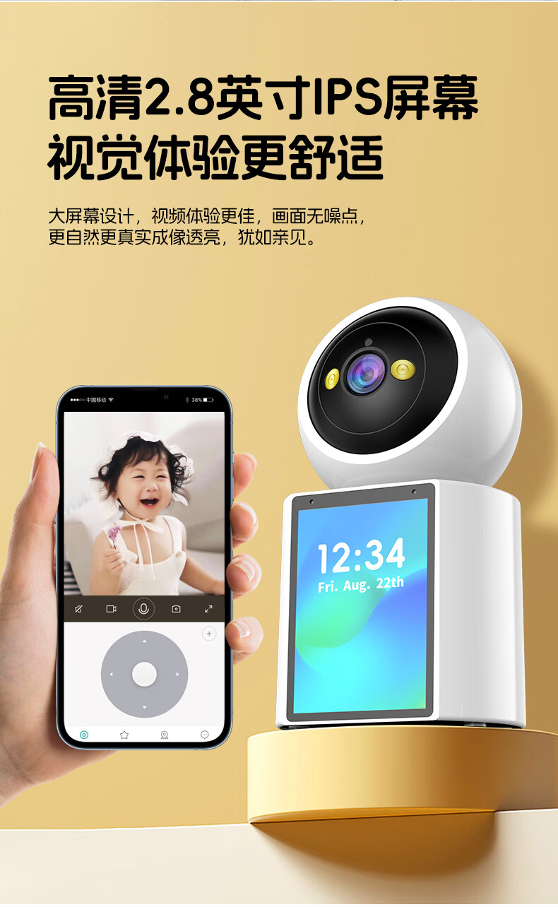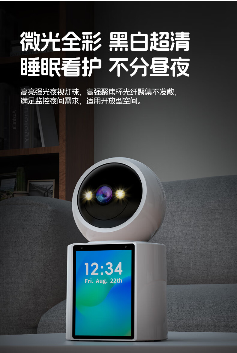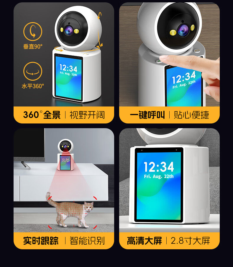 GWALK极沃客无线摄像头家用室内双向可视频通话远程监控器带夜视全景语音2K高清像素带显示屏幕