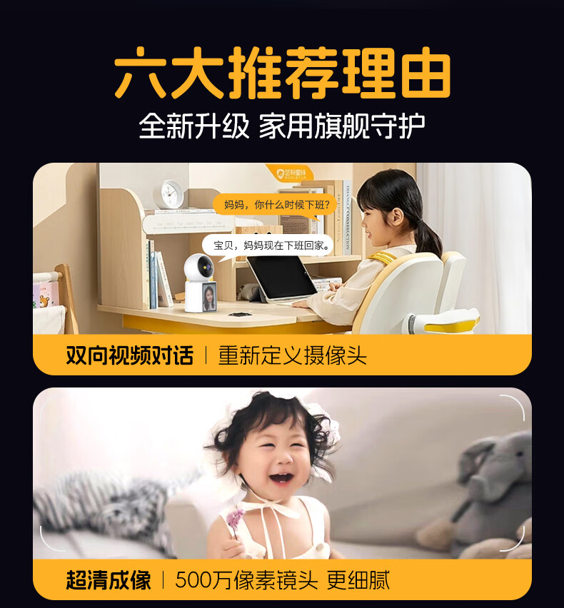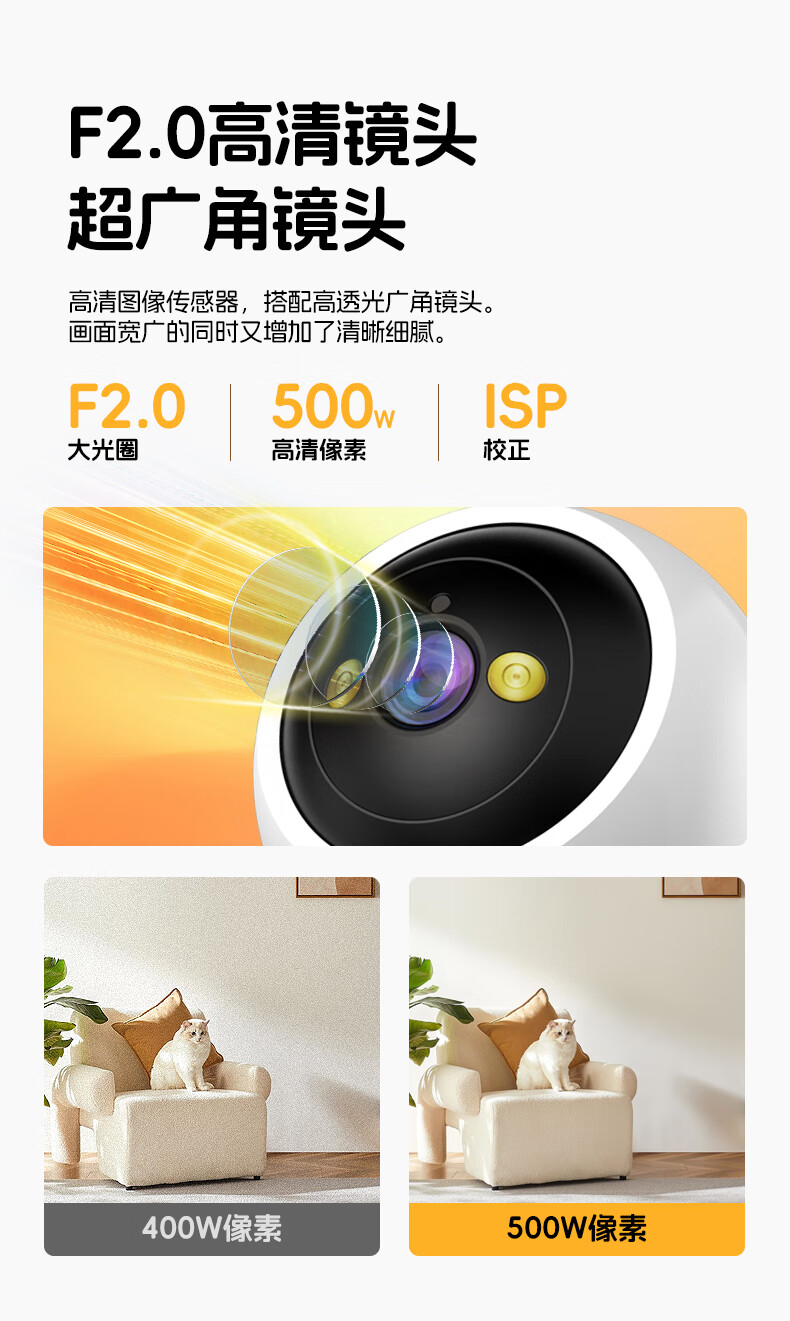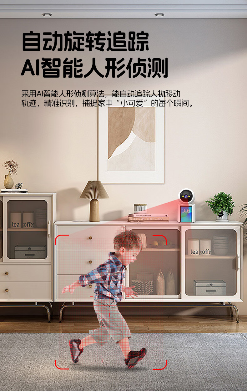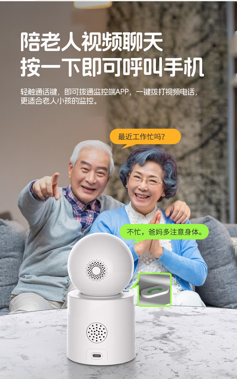 GWALK极沃客无线摄像头家用室内双向可视频通话远程监控器带夜视全景语音2K高清像素带显示屏幕