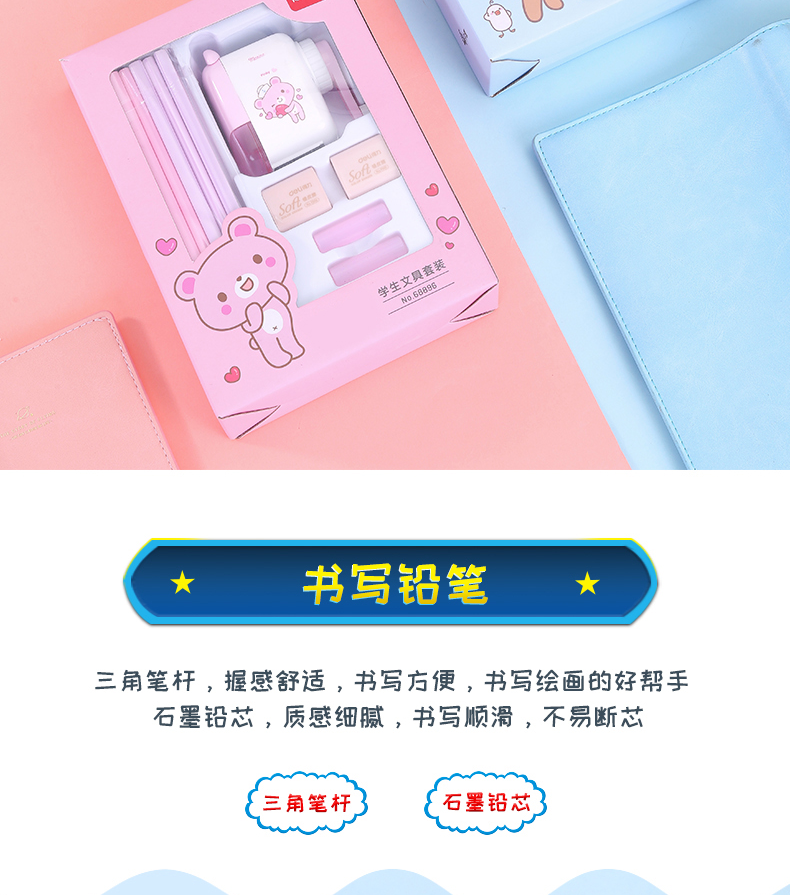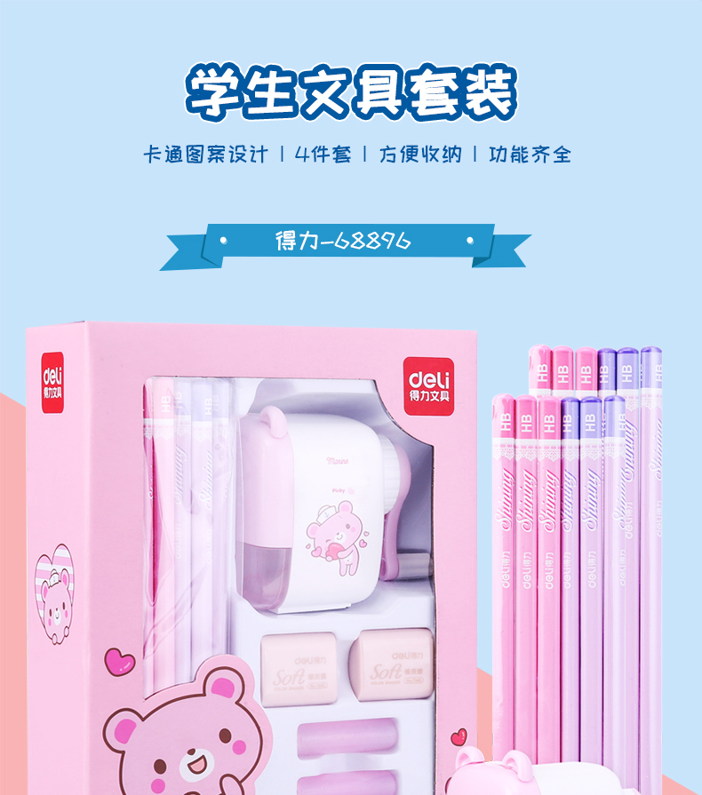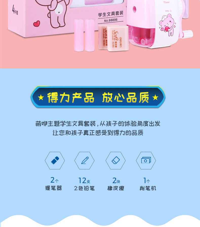 【卡通图案设计,学习大礼包!】得力文具套装礼盒 小学生开学季文具礼包 文具学习用品卡通可爱文具-QQ