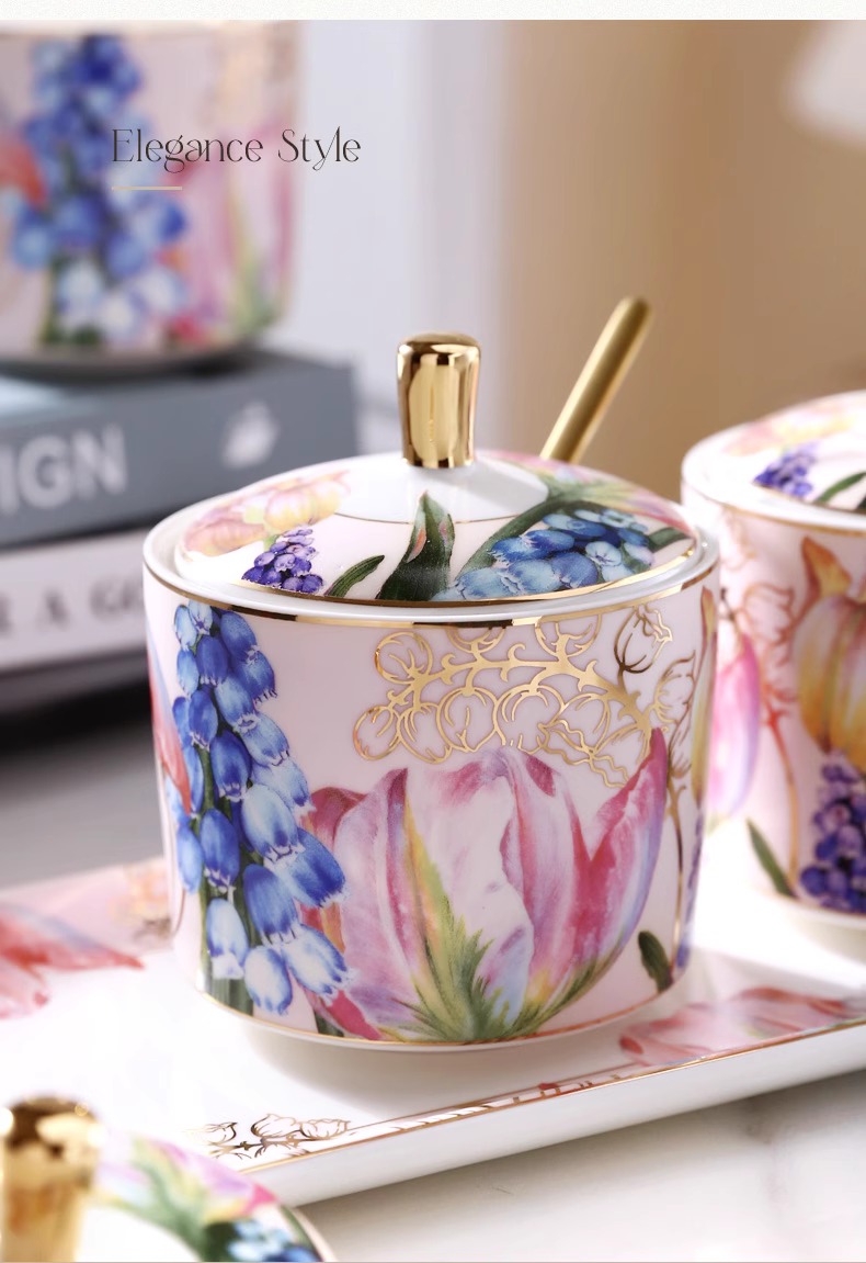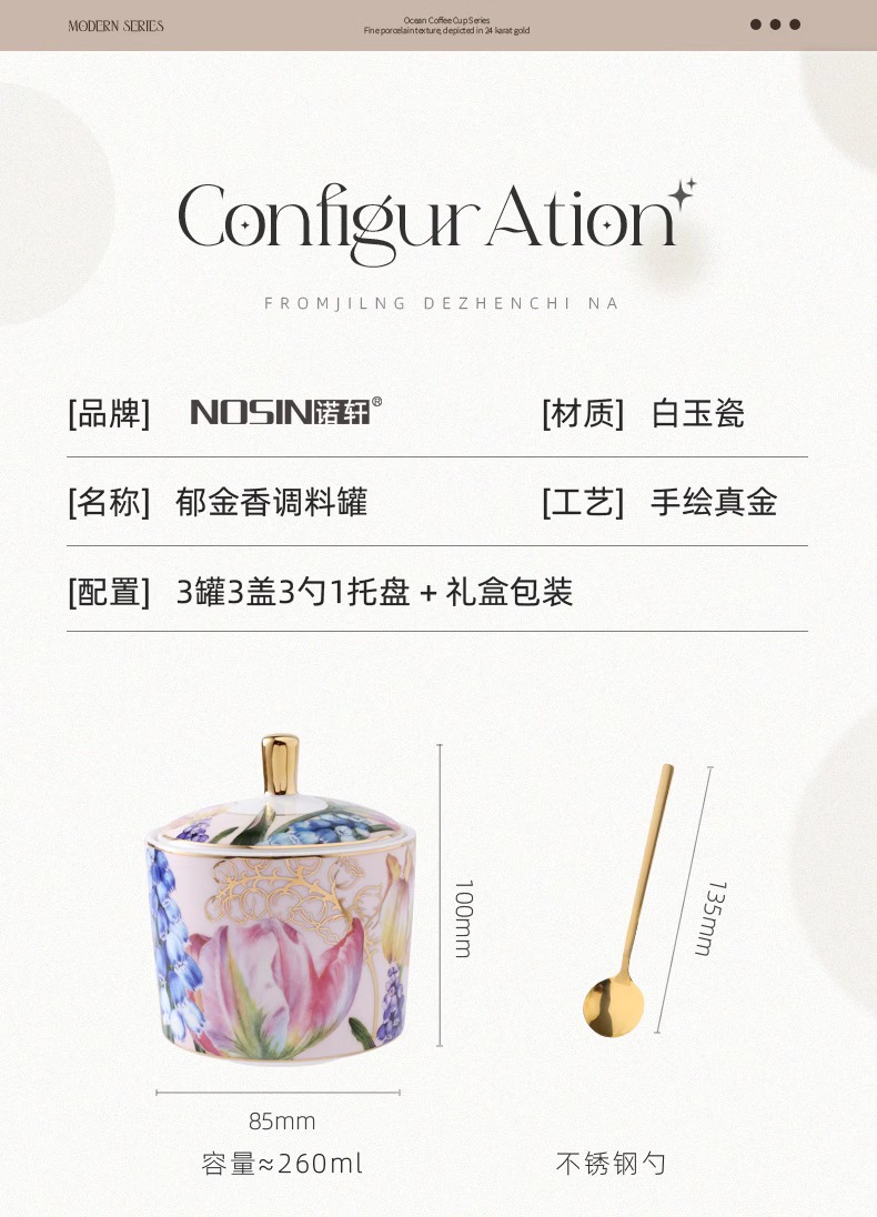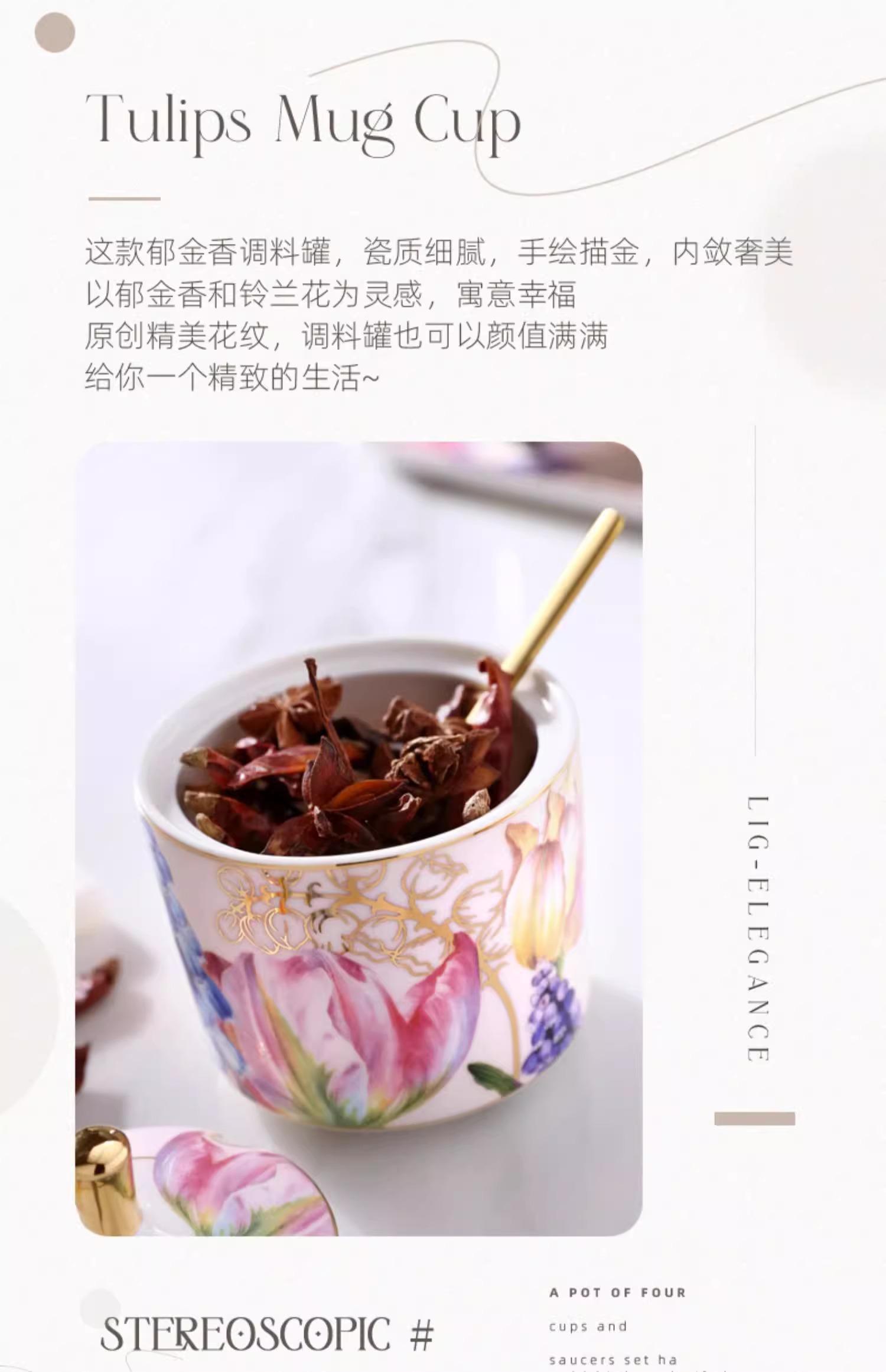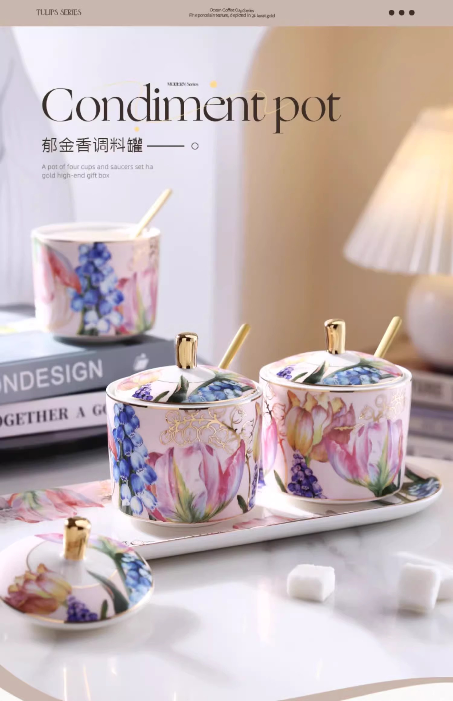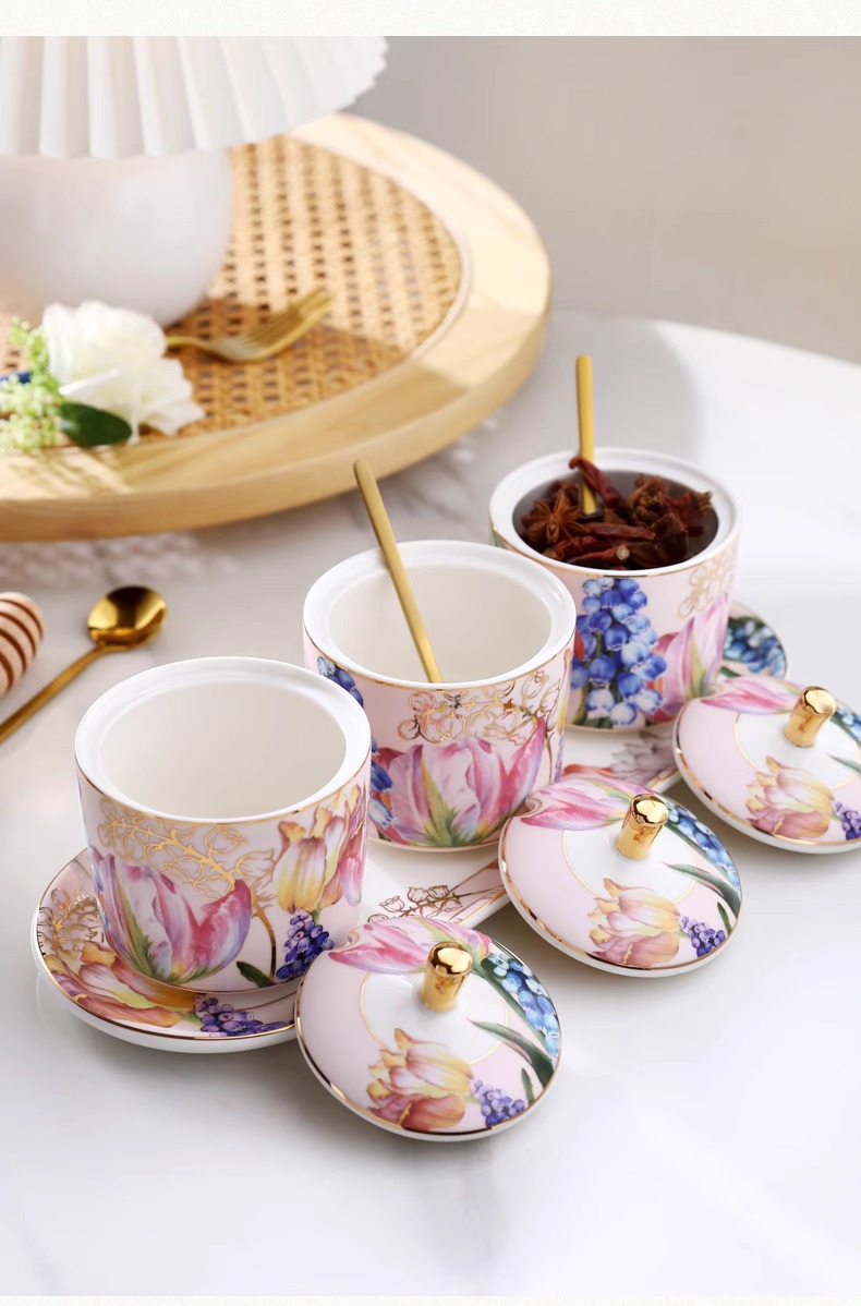 诺轩郁金香轻奢陶瓷调料罐四件套